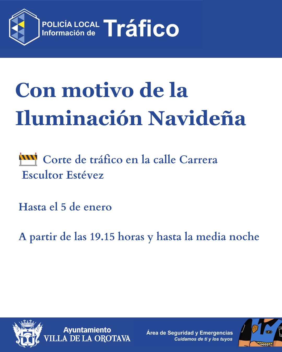 Corte de tráfico en la calle Carrera Escultor Estévez hasta el 5 de enero, de 19:15 h a 00:00 h.