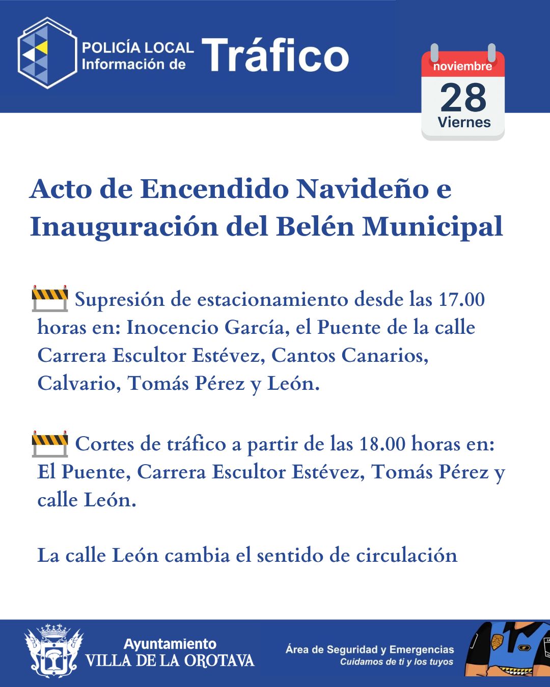 • Cortes de tráfico desde las 18:00 h en: El Puente, Carrera Escultor Estévez, Tomás Pérez y calle León.