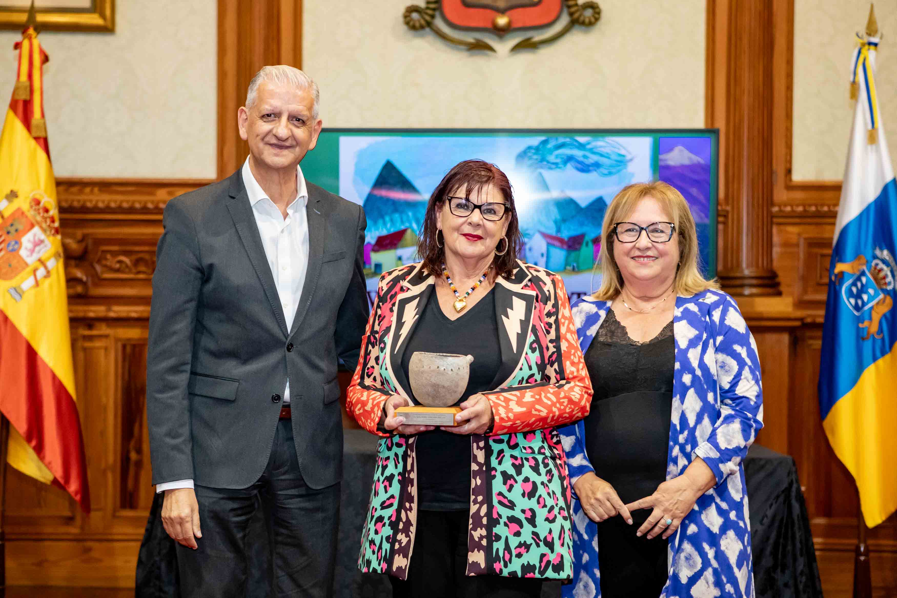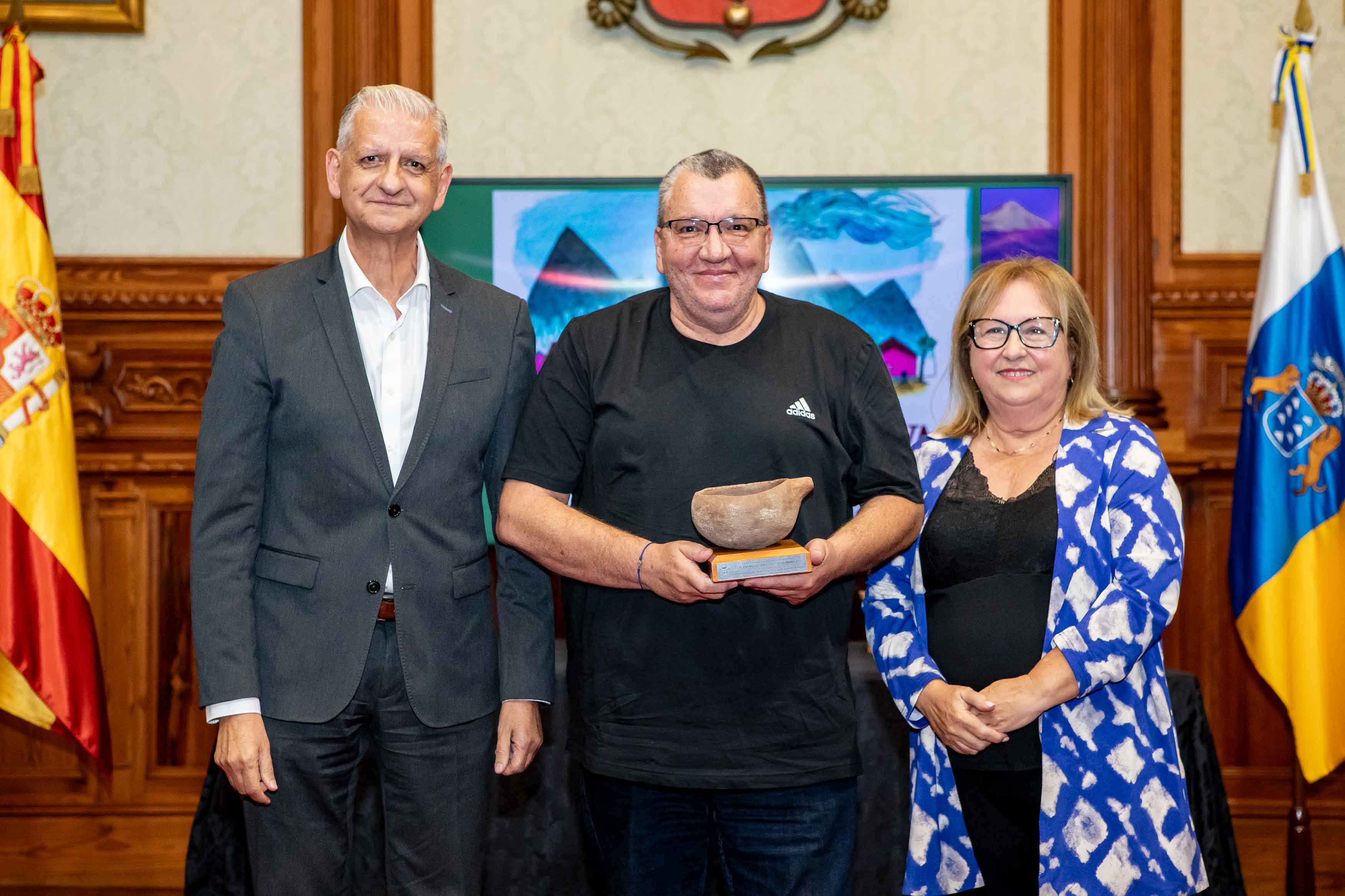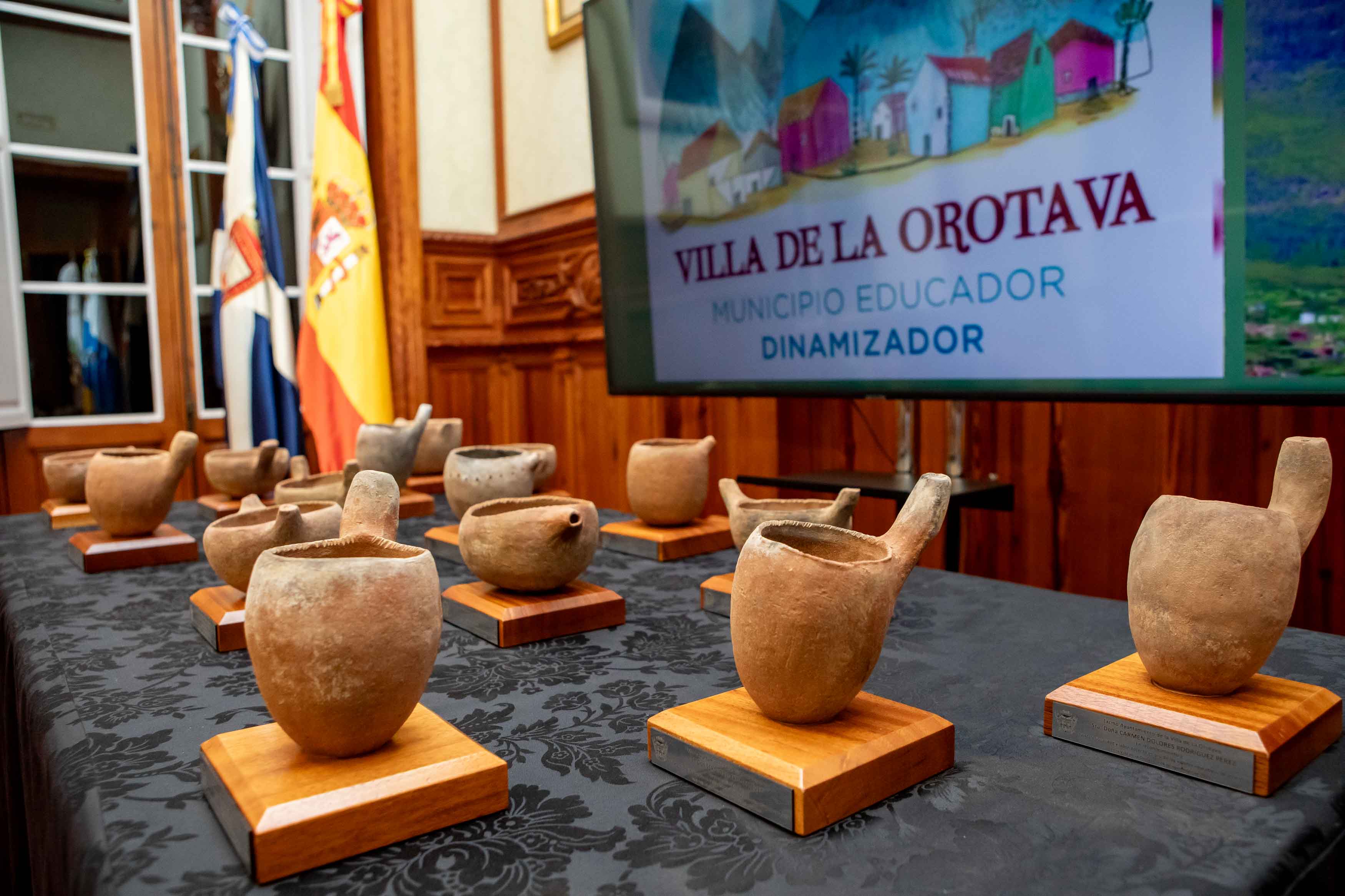 Cada docente, como obsequio del agradecimiento, recibió un gánigo, detalle artesanal de un elemento natural como la arcilla. Este material se moldea y se le da forma con un laborioso proceso artesanal, adquiere una estructura rígida hasta convertirse en un utensilio fundamental como fue para la vida de los antiguos pobladores de Canarias. Y ello quiere reflejar la labor que han realizado los docentes con muchas generaciones de alumnos y alumnas.