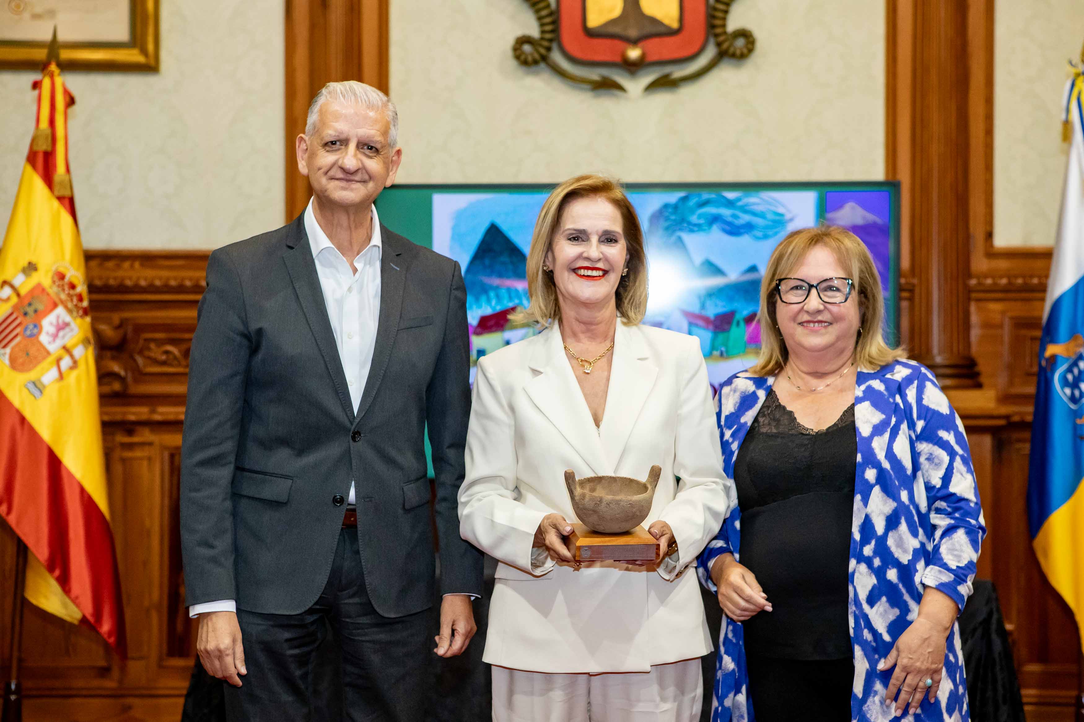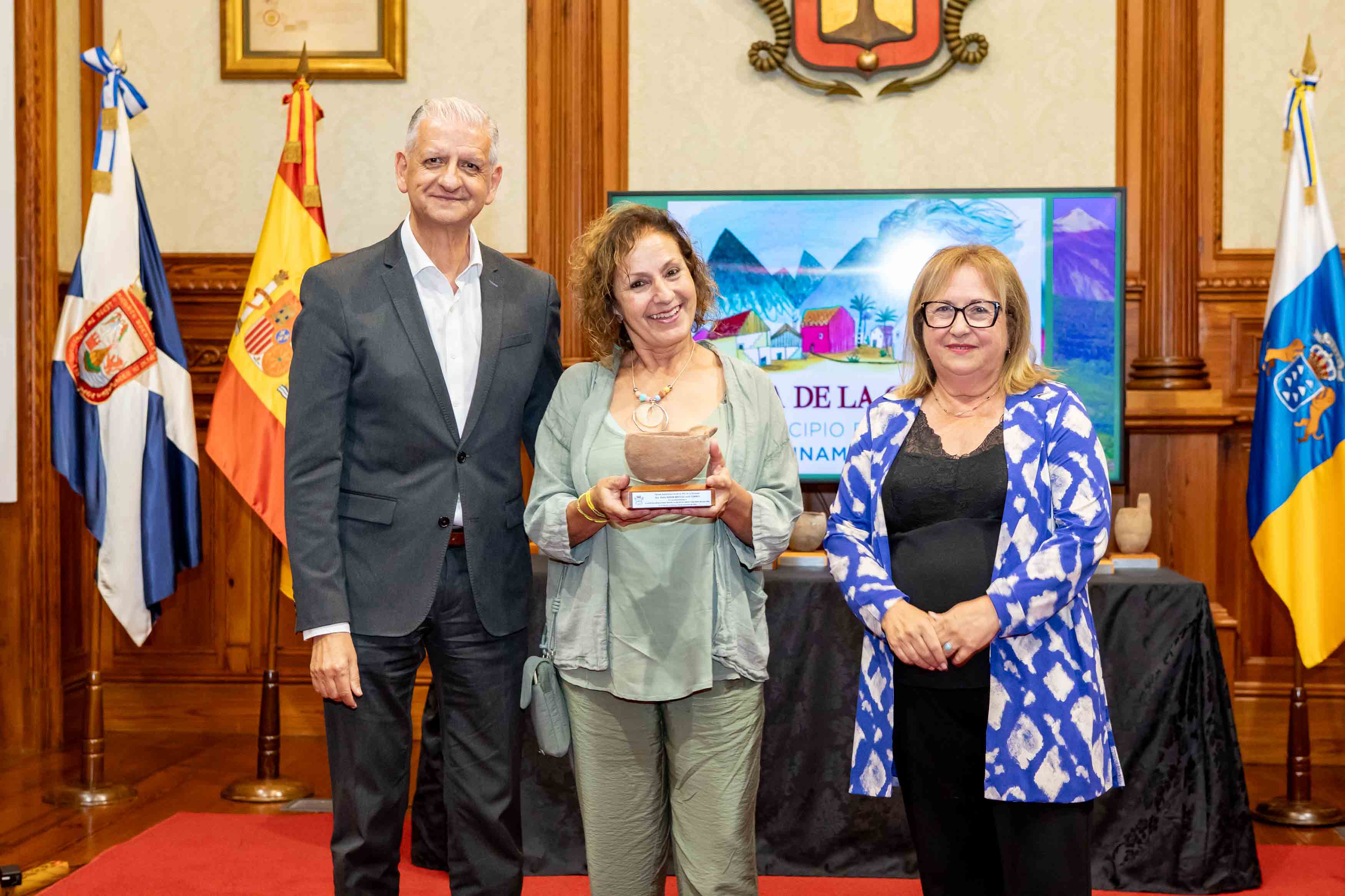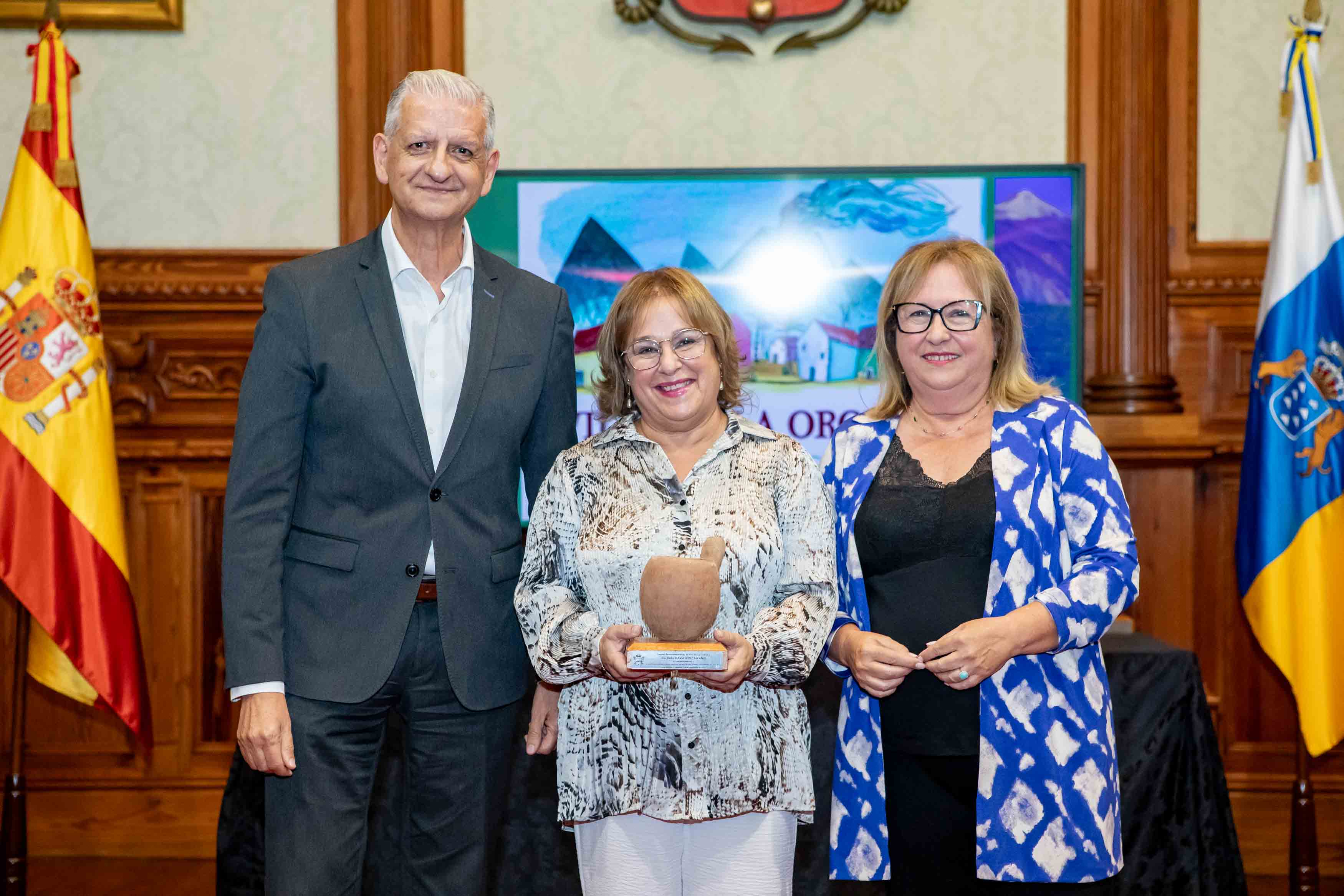 Cada docente, como obsequio del agradecimiento, recibió un gánigo, detalle artesanal de un elemento natural como la arcilla. Este material se moldea y se le da forma con un laborioso proceso artesanal, adquiere una estructura rígida hasta convertirse en un utensilio fundamental como fue para la vida de los antiguos pobladores de Canarias. Y ello quiere reflejar la labor que han realizado los docentes con muchas generaciones de alumnos y alumnas.