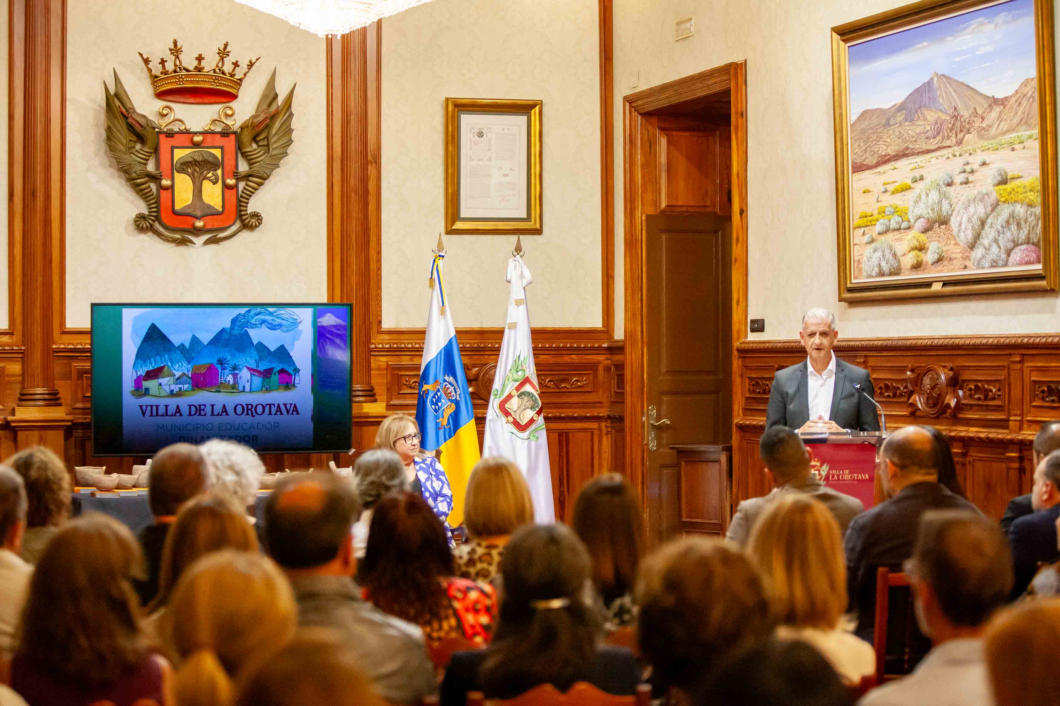 El Salón Noble del Ayuntamiento de La Orotava acogió en la tarde noche de este jueves [28 de noviembre] el acto de homenaje a los quince maestros que se jubilan a lo largo de este 2024 y que han impartido clases en centros educativos del municipio. El evento, con motivo del Día del Enseñante, lo organiza la institución local desde hace doce años, con el fin de agradecer toda la labor educativa que han desempeñado durante tantos años de su vida, por su dedicación plena a la enseñanza y por contribuir a la formación de tantas personas, siendo pilar básico y guías para muchos. En estos años se ha homenajeado a más de un centenar de docentes.