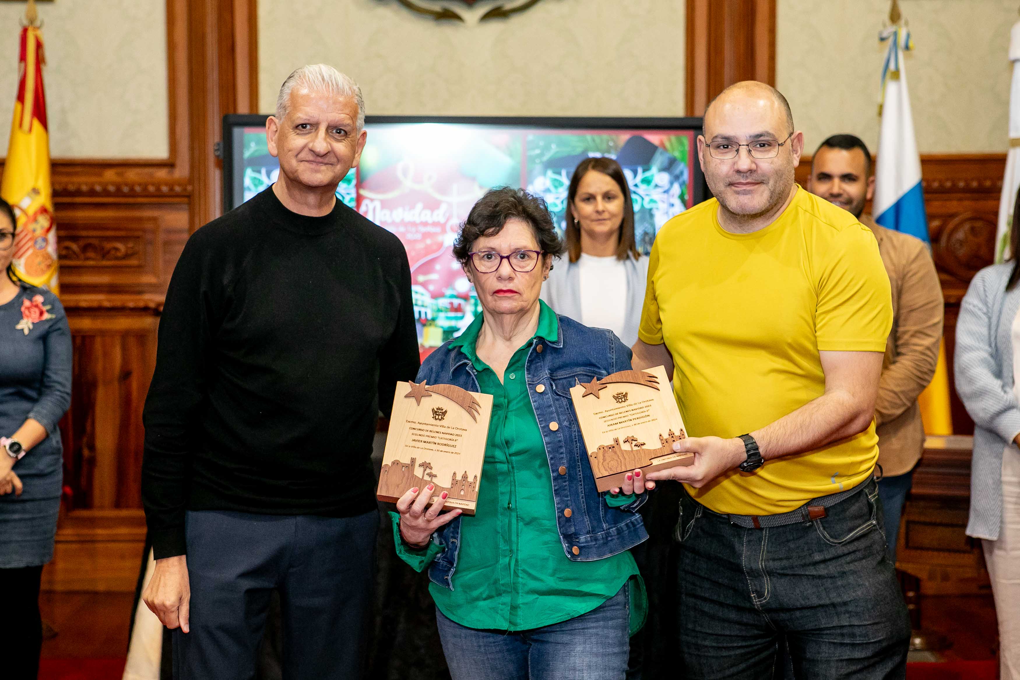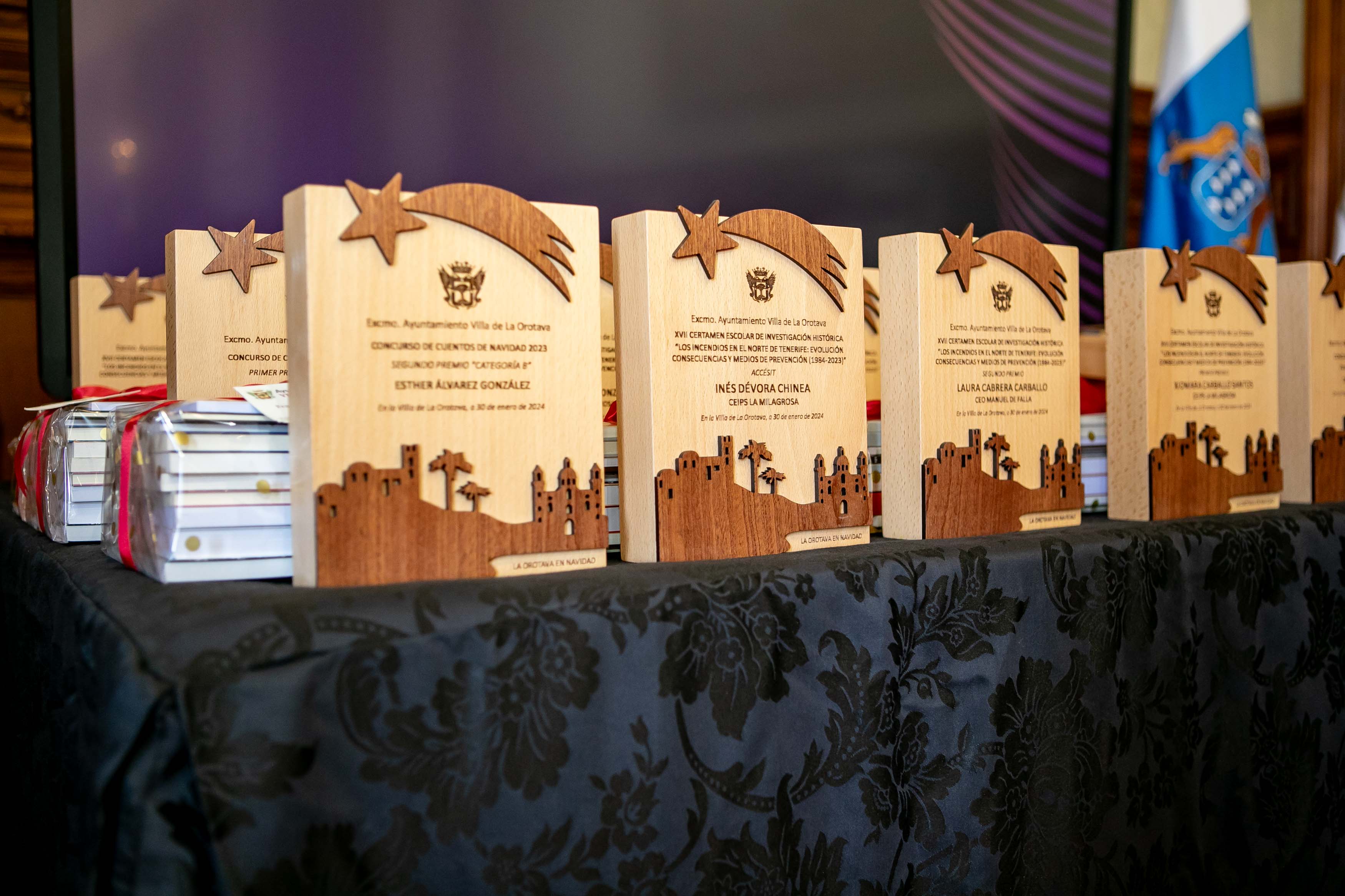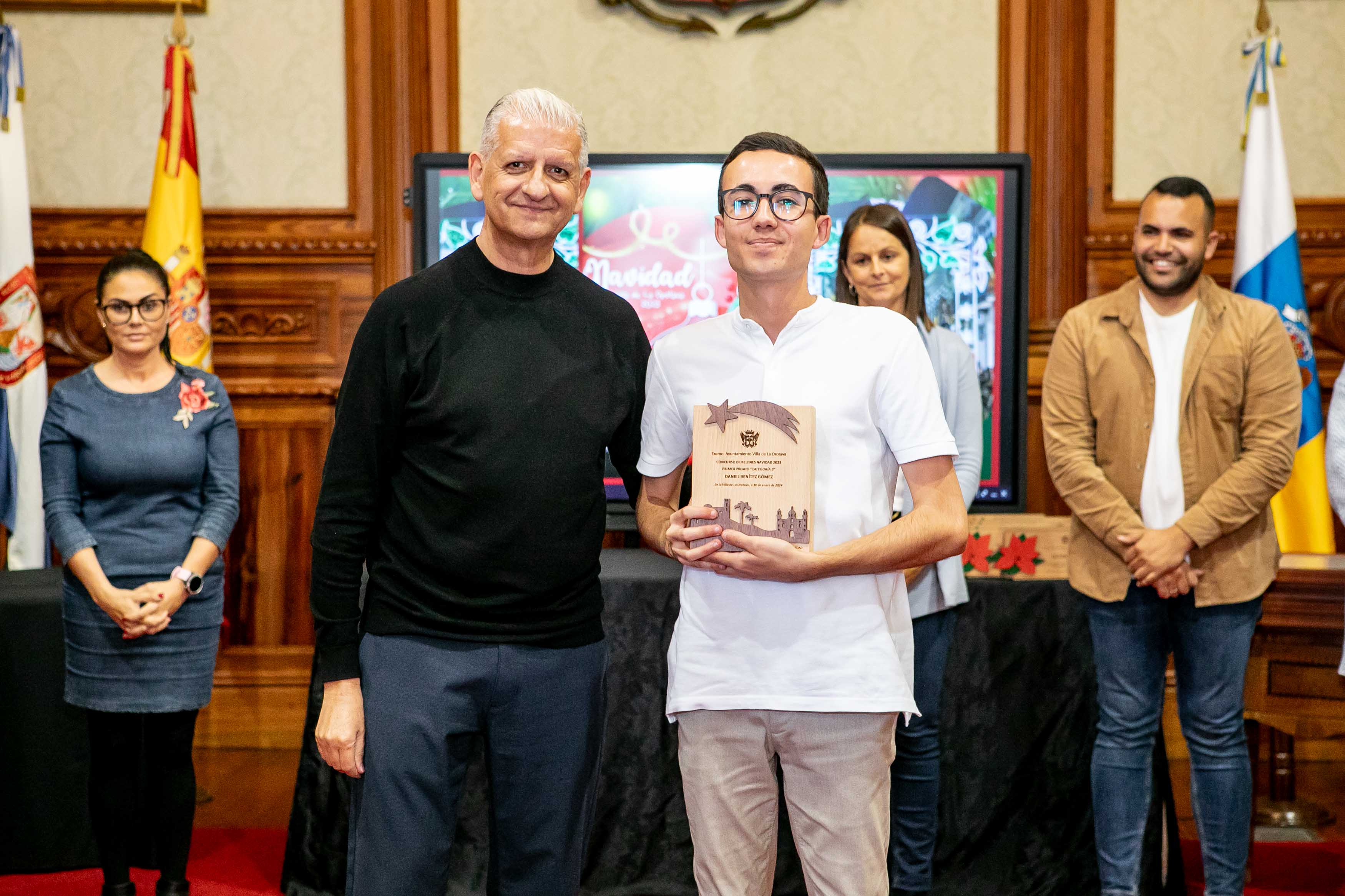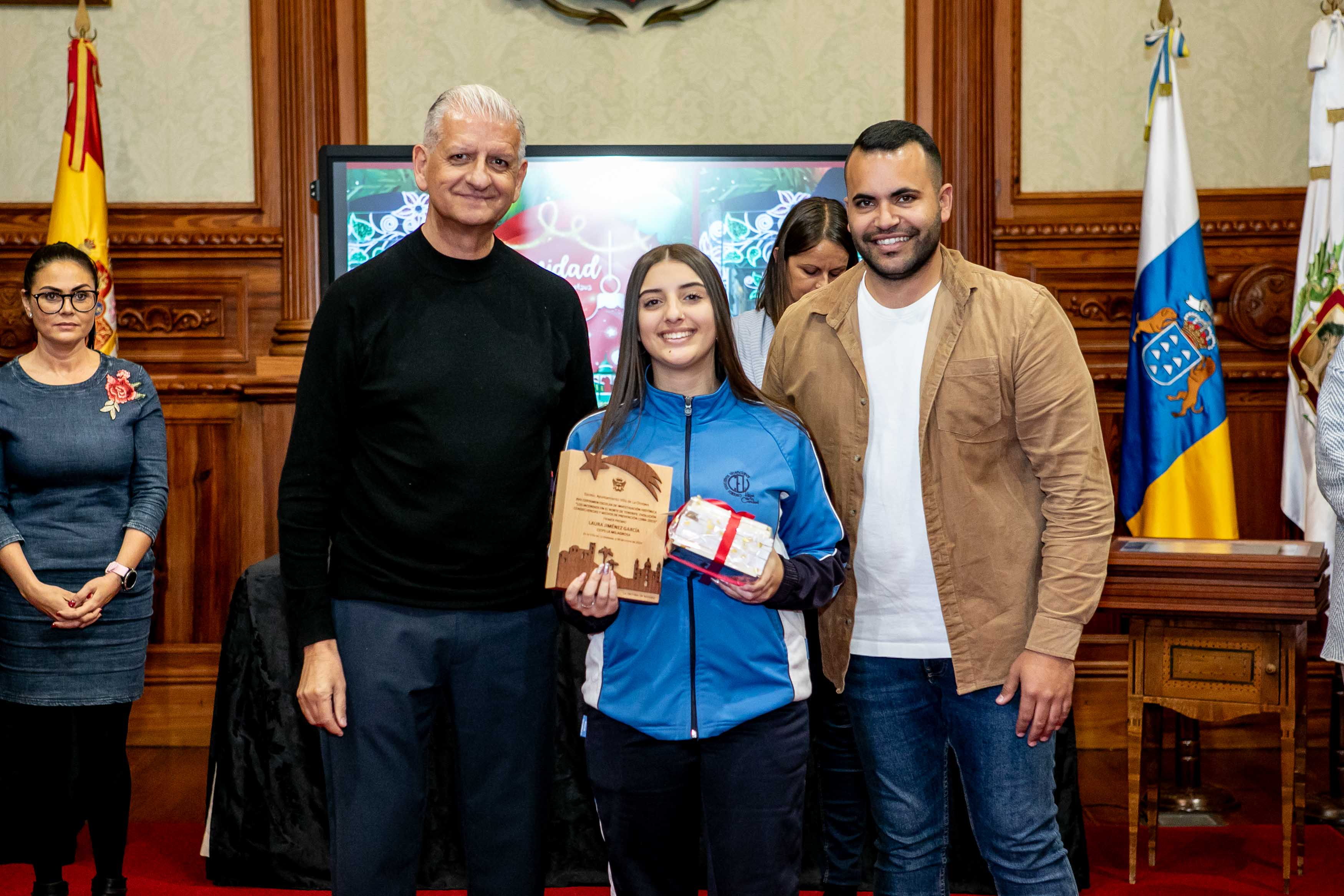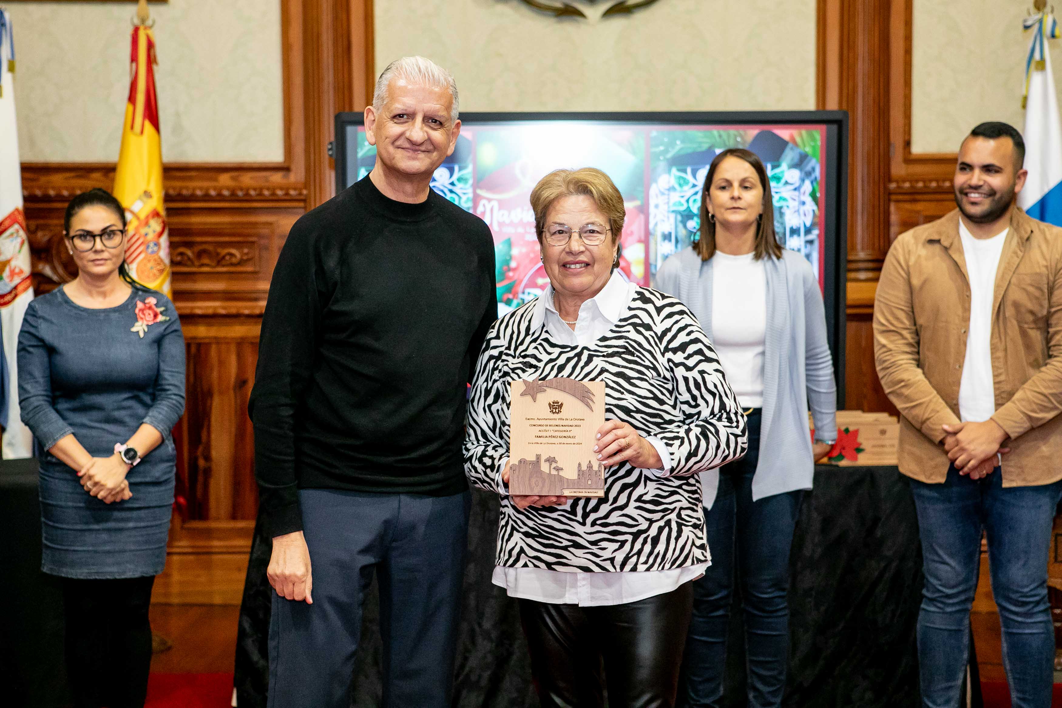El Salón de Plenos acogió este martes [30 de enero] el acto de entrega de los premios de los concursos de Navidad, convocados cada año por las áreas de Cultura y Comercio del Ayuntamiento de La Orotava. Los certámenes del tarjetas, belenes y cuentos de navidad se convocan hace más de dos décadas; mientras que desde hace diecisiete se convoca el certamen de investigación. Y en los últimos años se ha sumado el concurso de remozar los escaparates y fachadas en las fechas navideñas.