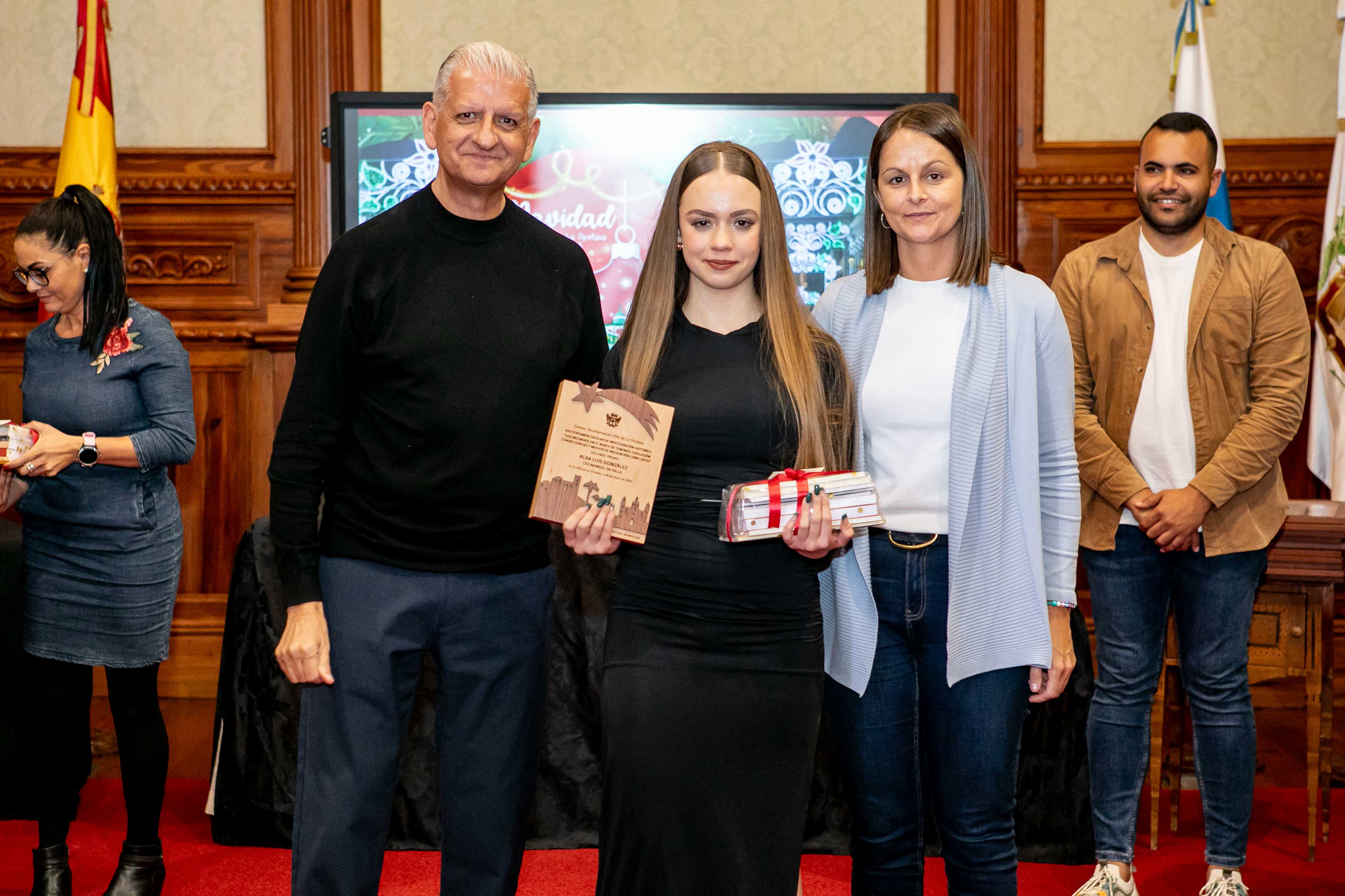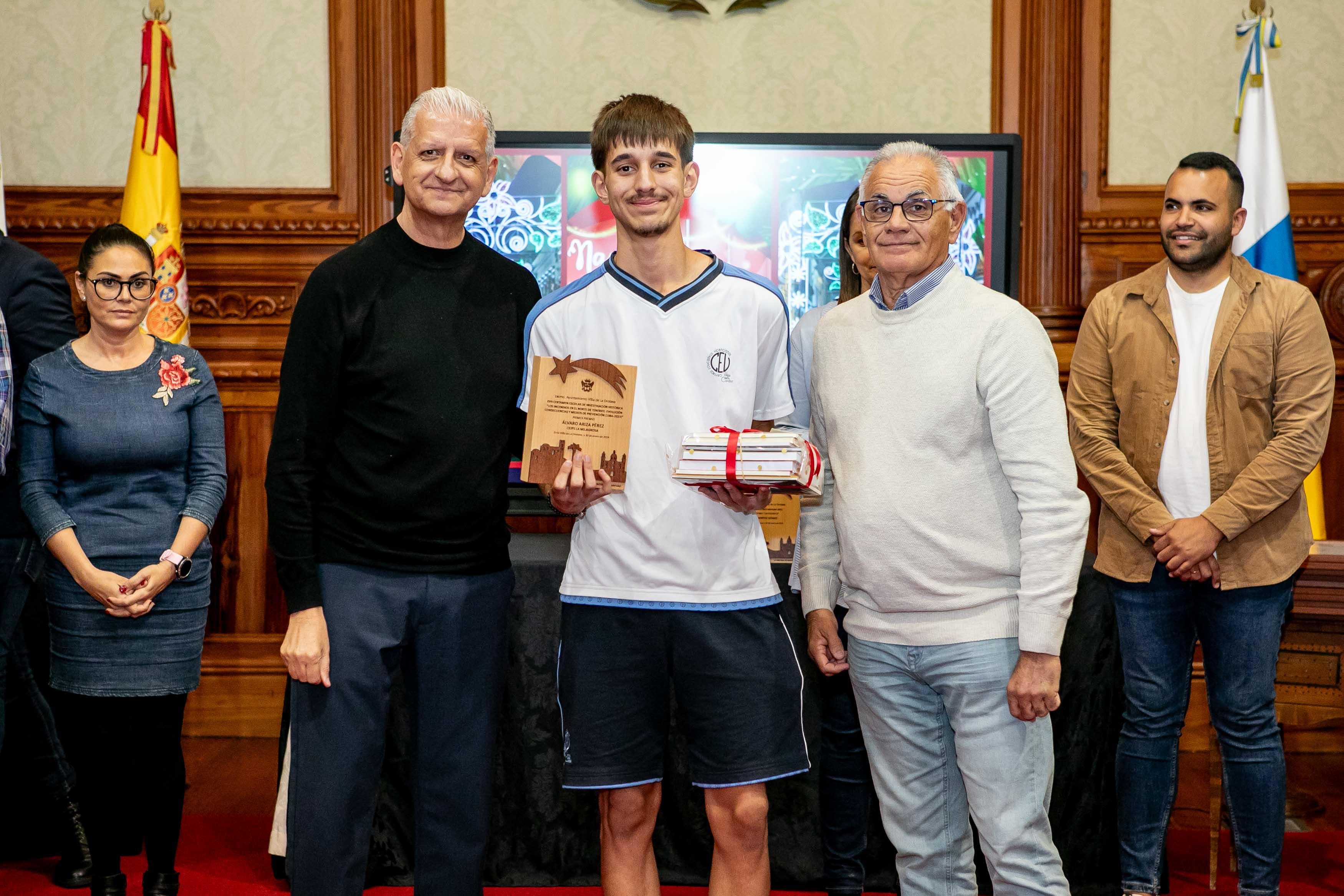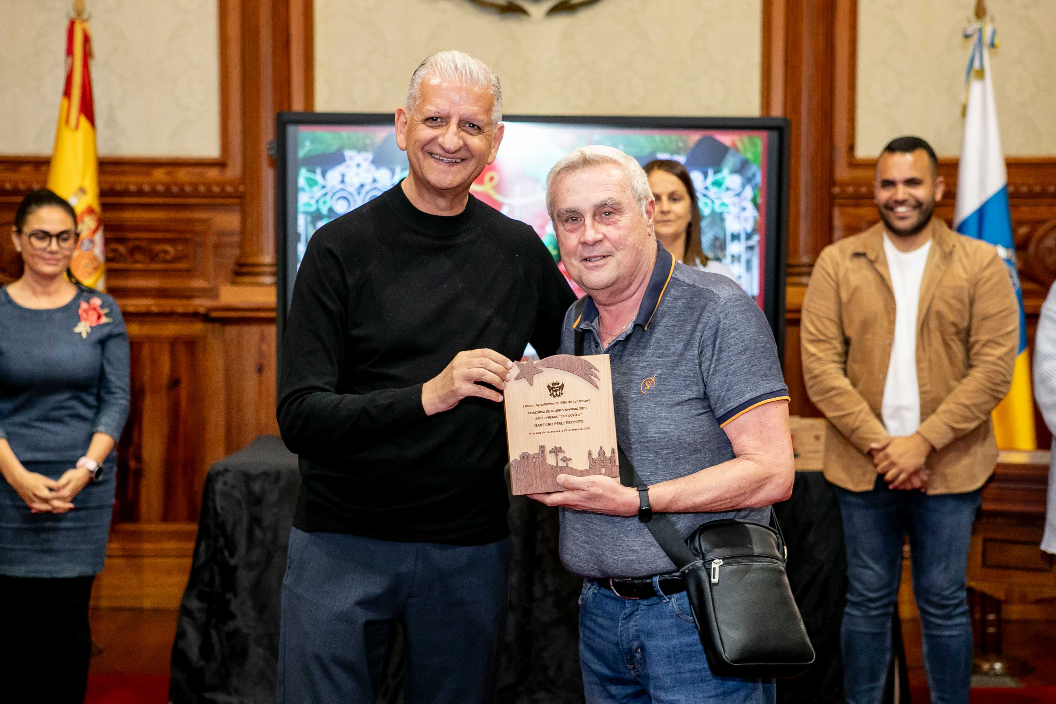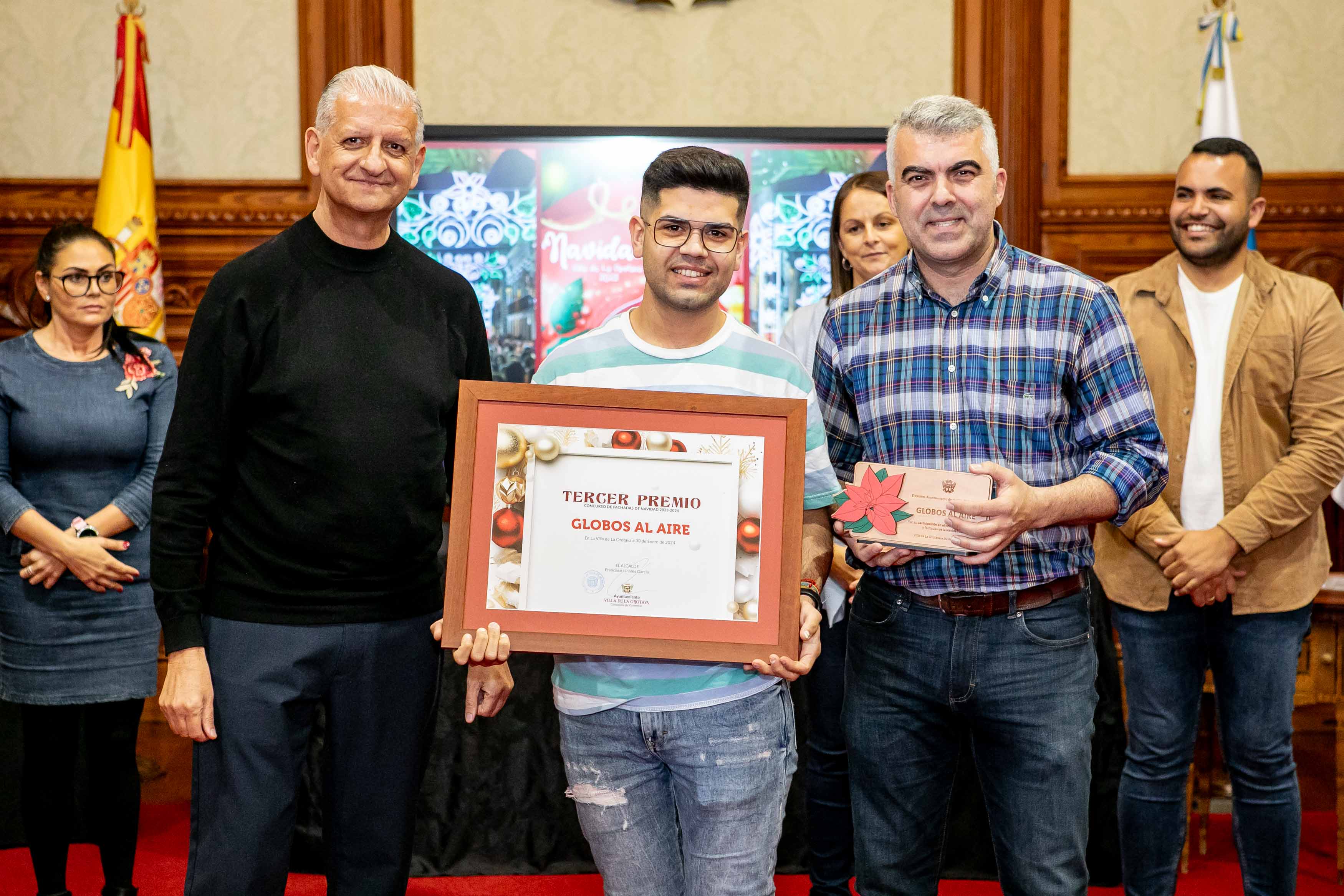 El Salón de Plenos acogió este martes [30 de enero] el acto de entrega de los premios de los concursos de Navidad, convocados cada año por las áreas de Cultura y Comercio del Ayuntamiento de La Orotava. Los certámenes del tarjetas, belenes y cuentos de navidad se convocan hace más de dos décadas; mientras que desde hace diecisiete se convoca el certamen de investigación. Y en los últimos años se ha sumado el concurso de remozar los escaparates y fachadas en las fechas navideñas.