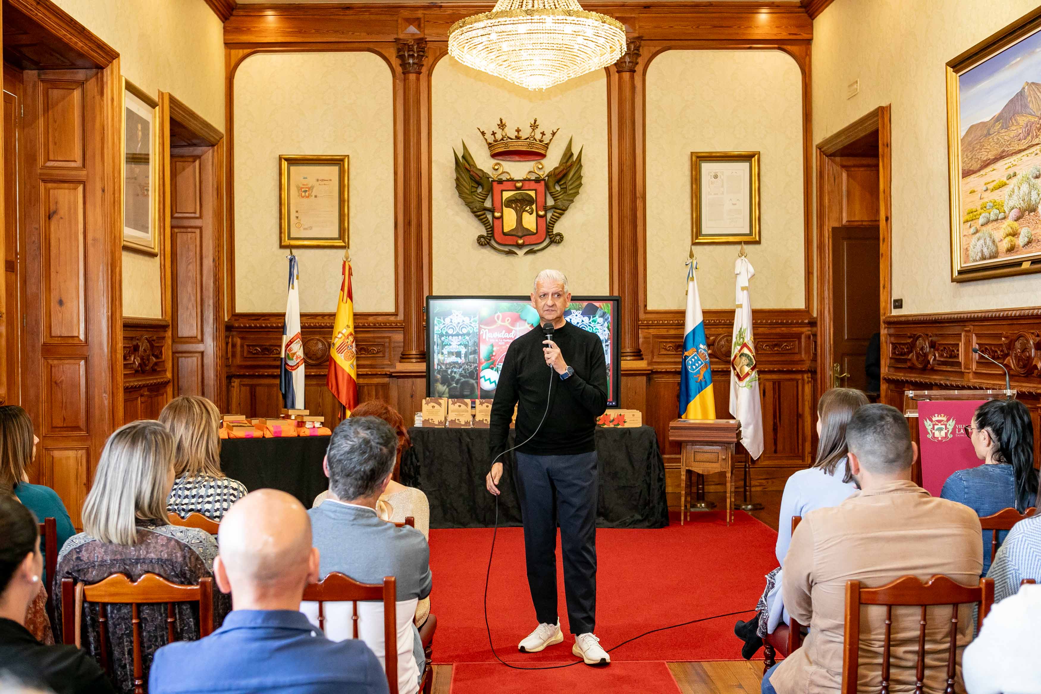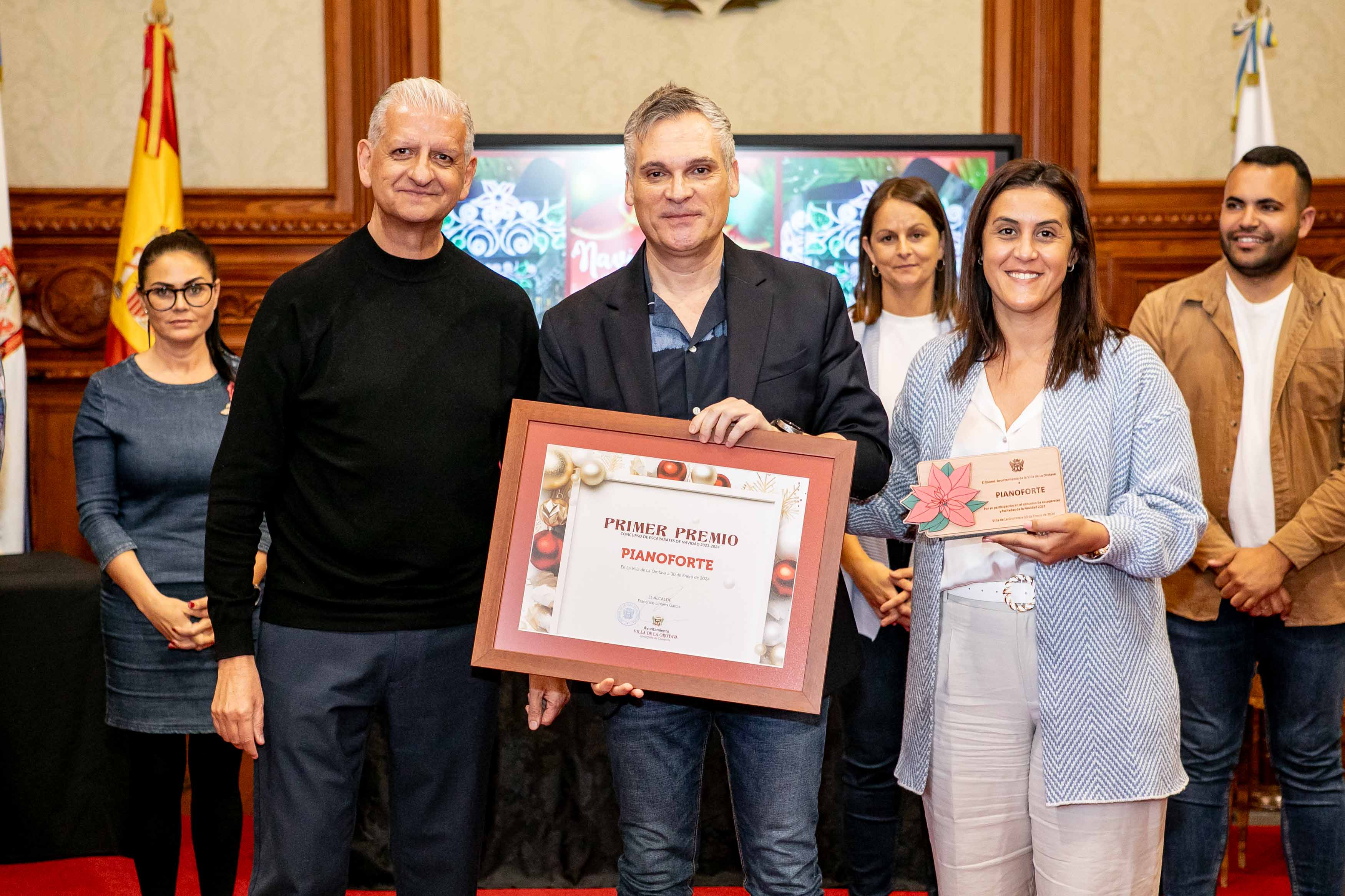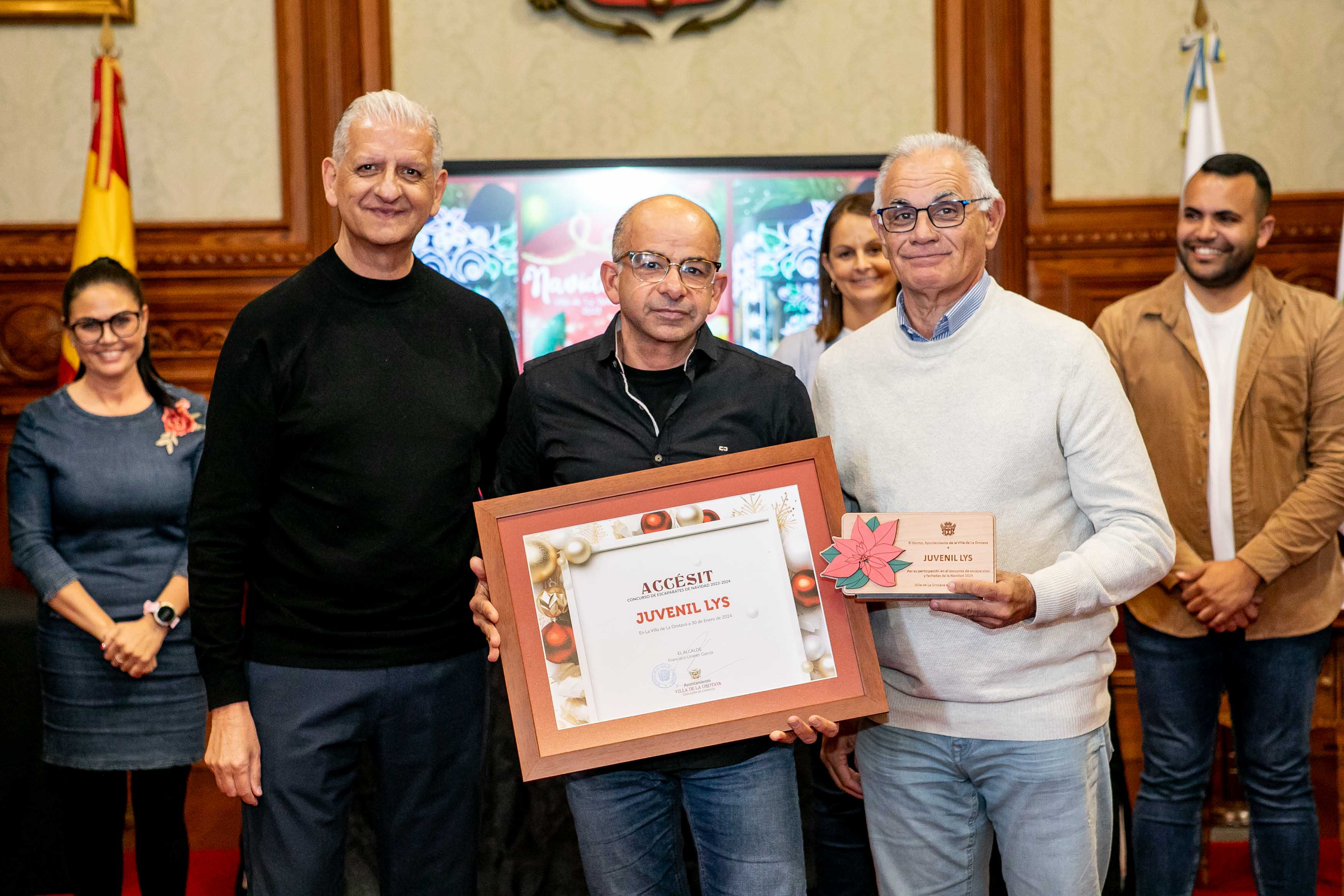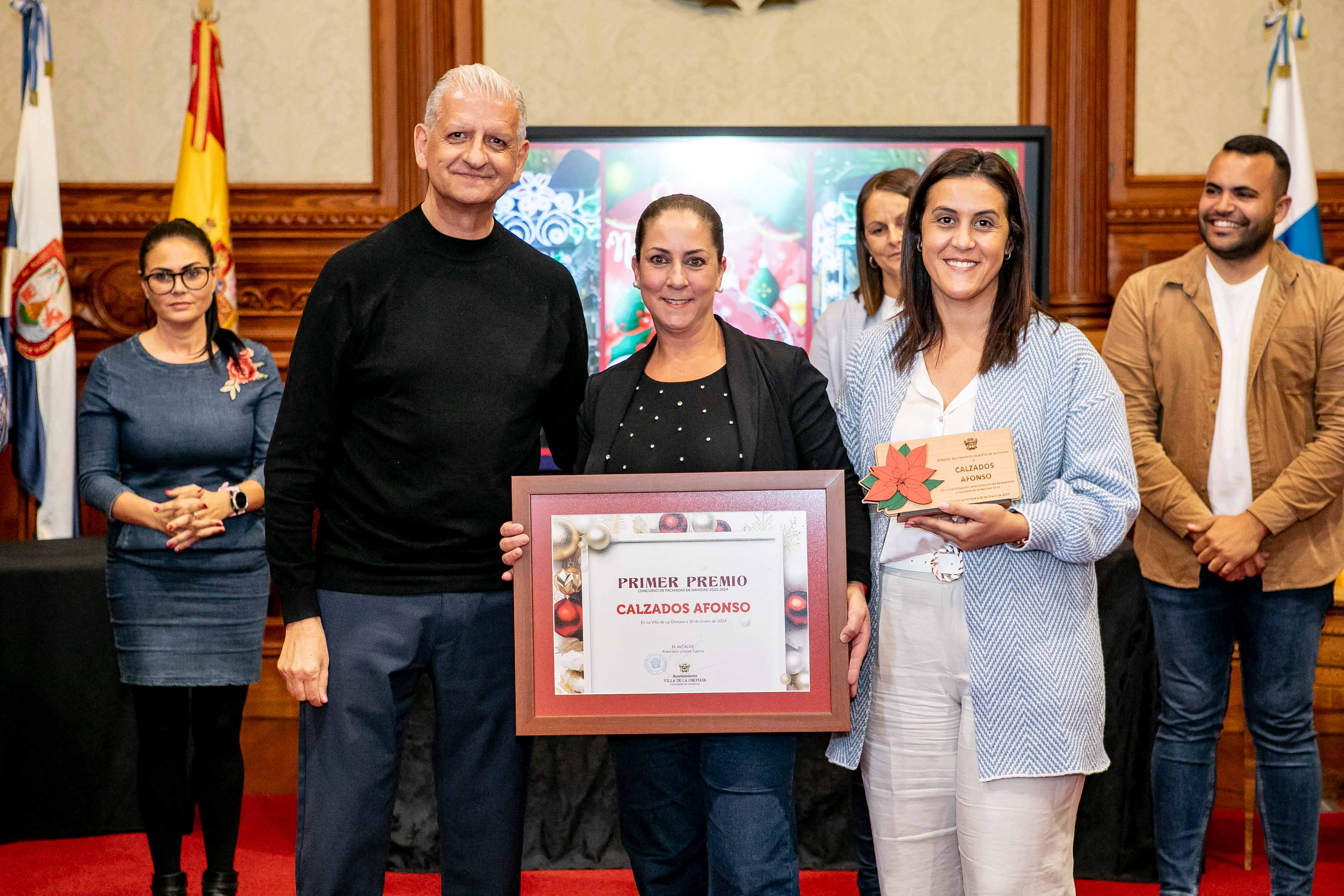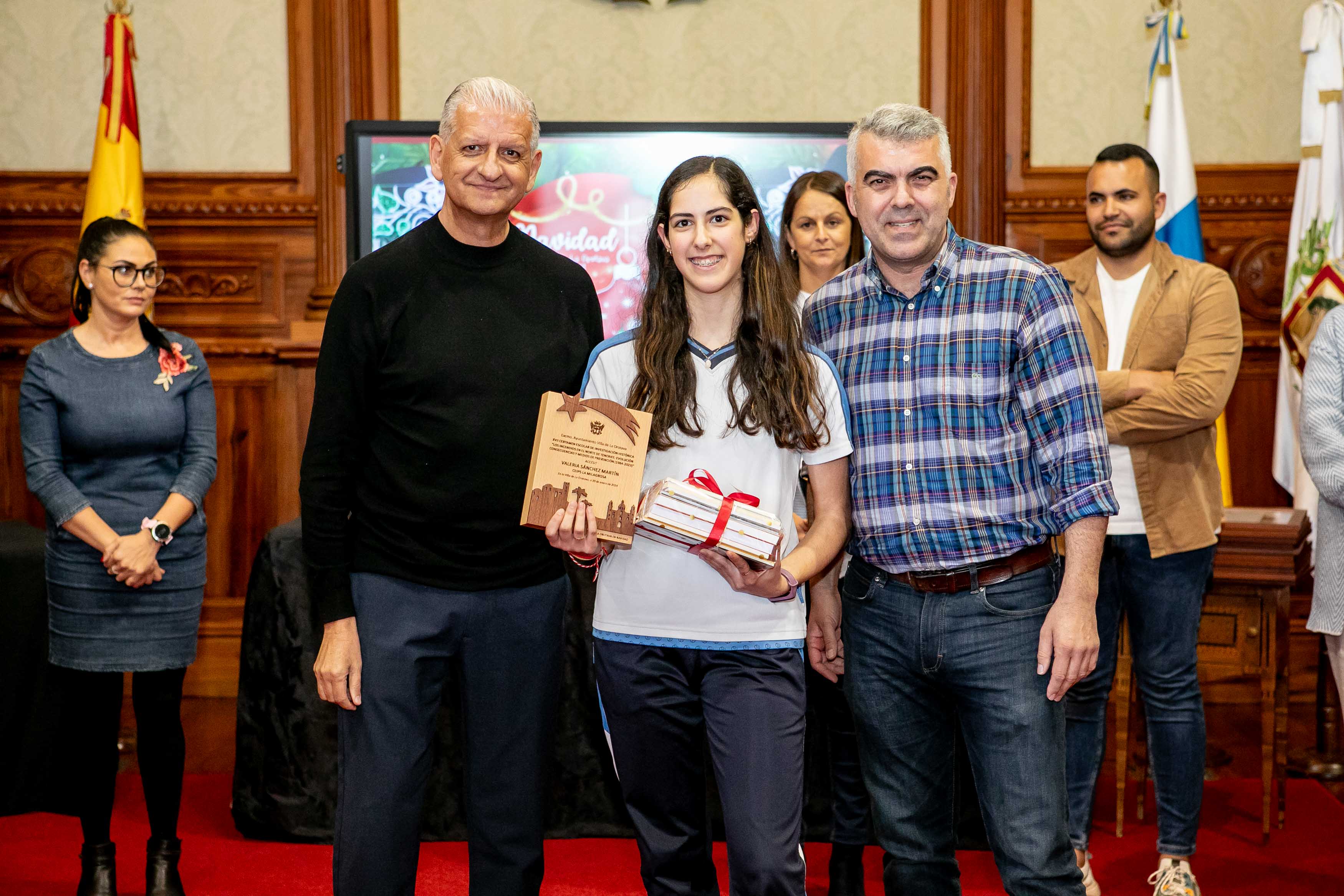 El Salón de Plenos acogió este martes [30 de enero] el acto de entrega de los premios de los concursos de Navidad, convocados cada año por las áreas de Cultura y Comercio del Ayuntamiento de La Orotava. Los certámenes del tarjetas, belenes y cuentos de navidad se convocan hace más de dos décadas; mientras que desde hace diecisiete se convoca el certamen de investigación. Y en los últimos años se ha sumado el concurso de remozar los escaparates y fachadas en las fechas navideñas.
