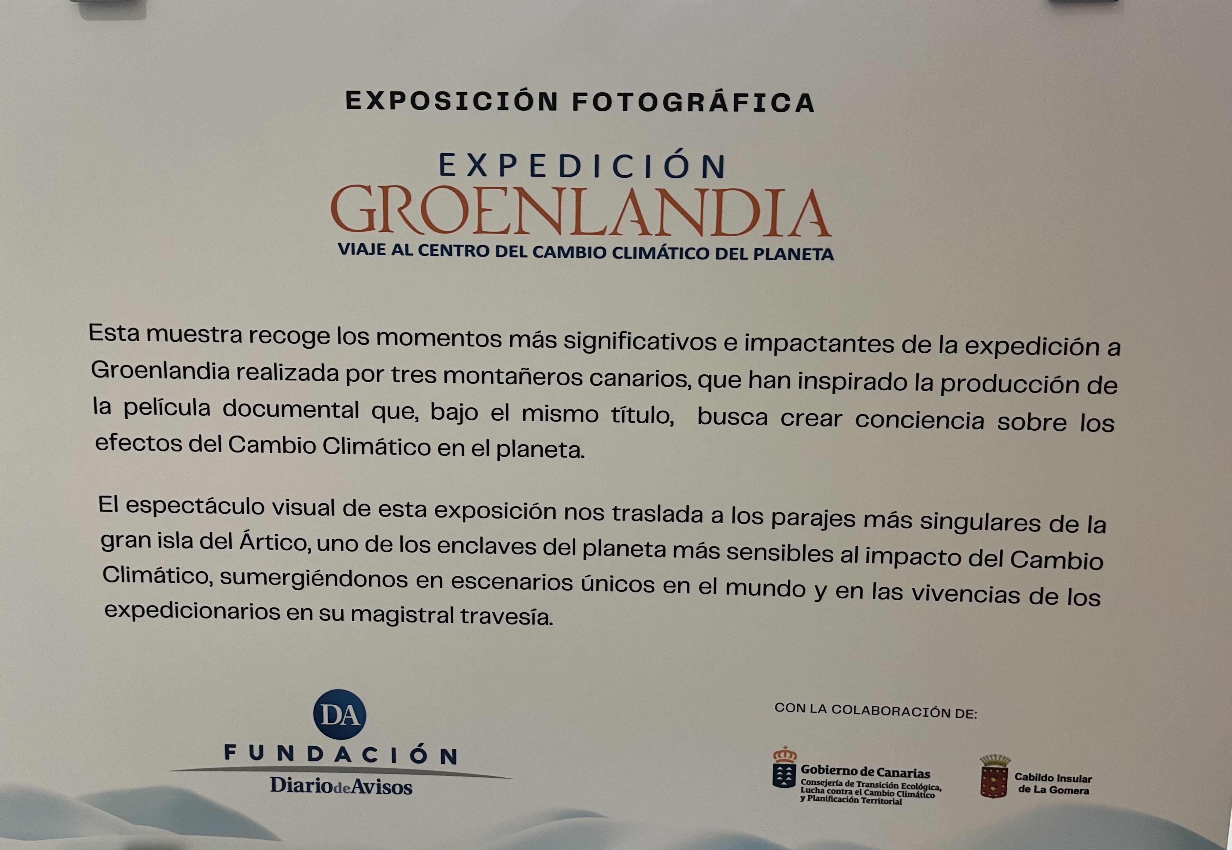 La exposición fotográfica ‘Expedición Groenlandia. Viaje al centro del cambio climático del planeta’, promovida por la Fundación Diario de Avisos, se muestra desde este 10 de mayo y hasta el próximo 25 en el Centro de Visitantes Telesforo Bravo.