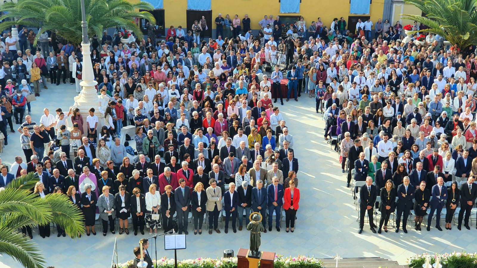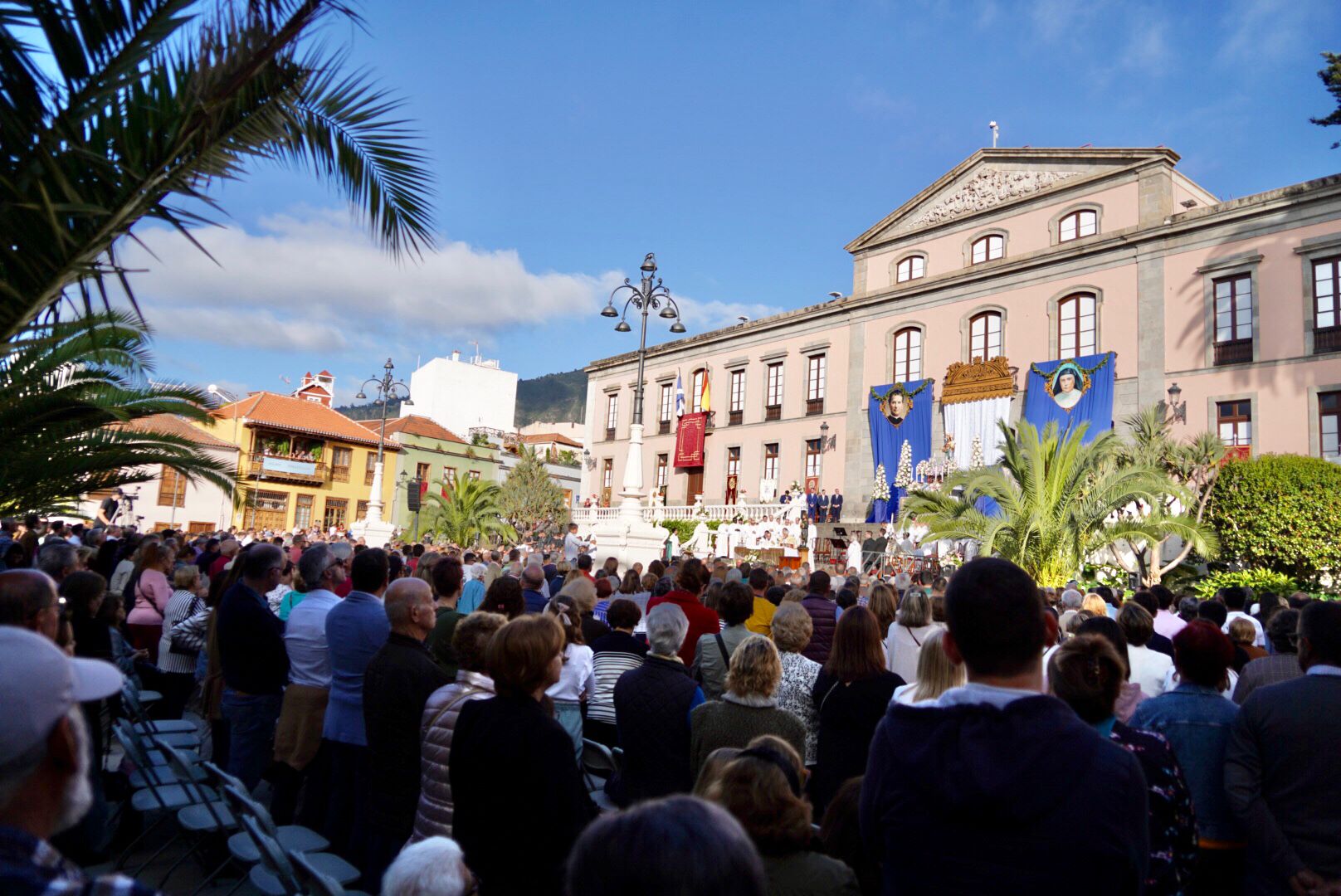 El acto religioso, que contó con unas 2.700 personas procedentes de todos los puntos de la isla, se desarrolló durante casi dos horas en la Plaza del Ayuntamiento y, posteriormente tuvo lugar una procesión hasta el colegio salesianos San Isidro donde la recibieron con un Ave María.