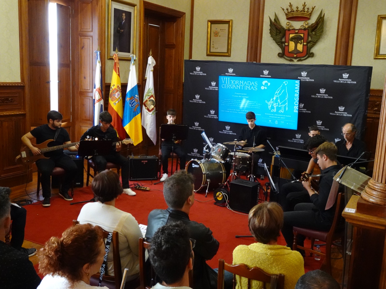 En el consistorio orotavense, los guitarristas Javier Machín y Héctor de la Rosa, el bajo Aaron González, los percusionistas Guillermo del Río y Álvaro Izquierdo, el timplista Juan Martín, el trompetista Manuel Sánchez, la flautista Ana Zárate y la pianista Andrea Fernández interpretaron Liquid Sunshine, My little Suede Shoes, The Shadow of your smile, The Girl From Ipanema y 96 to Stratford. Un concierto que completó un evento donde brotó el amor por la cultura en todas sus expresiones.