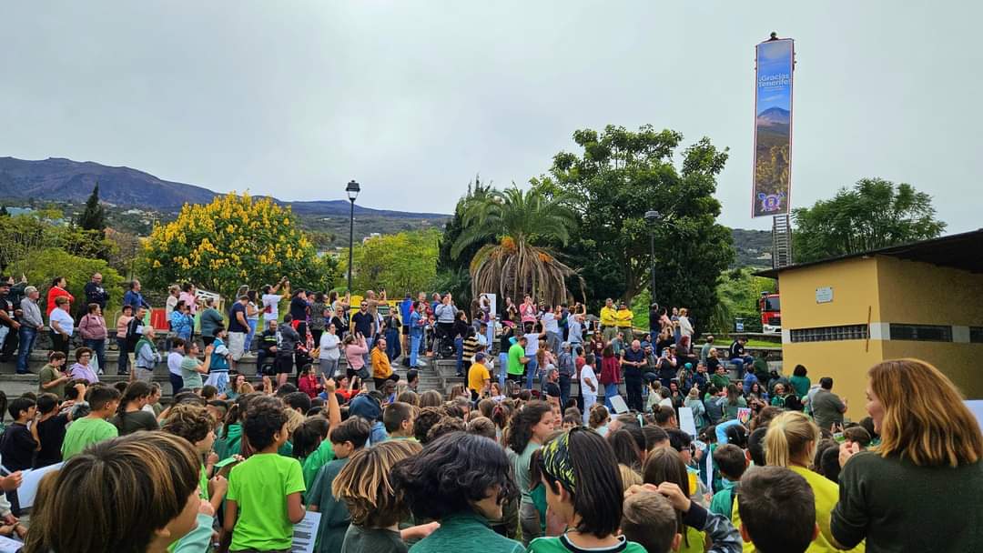 En el acto agradecieron los alumnos del Ramón y Cajal la labor de todos los profesionales y grupos voluntarios en la extinción del pasado incendio de Tenerife, y que afectó a La Orotava.