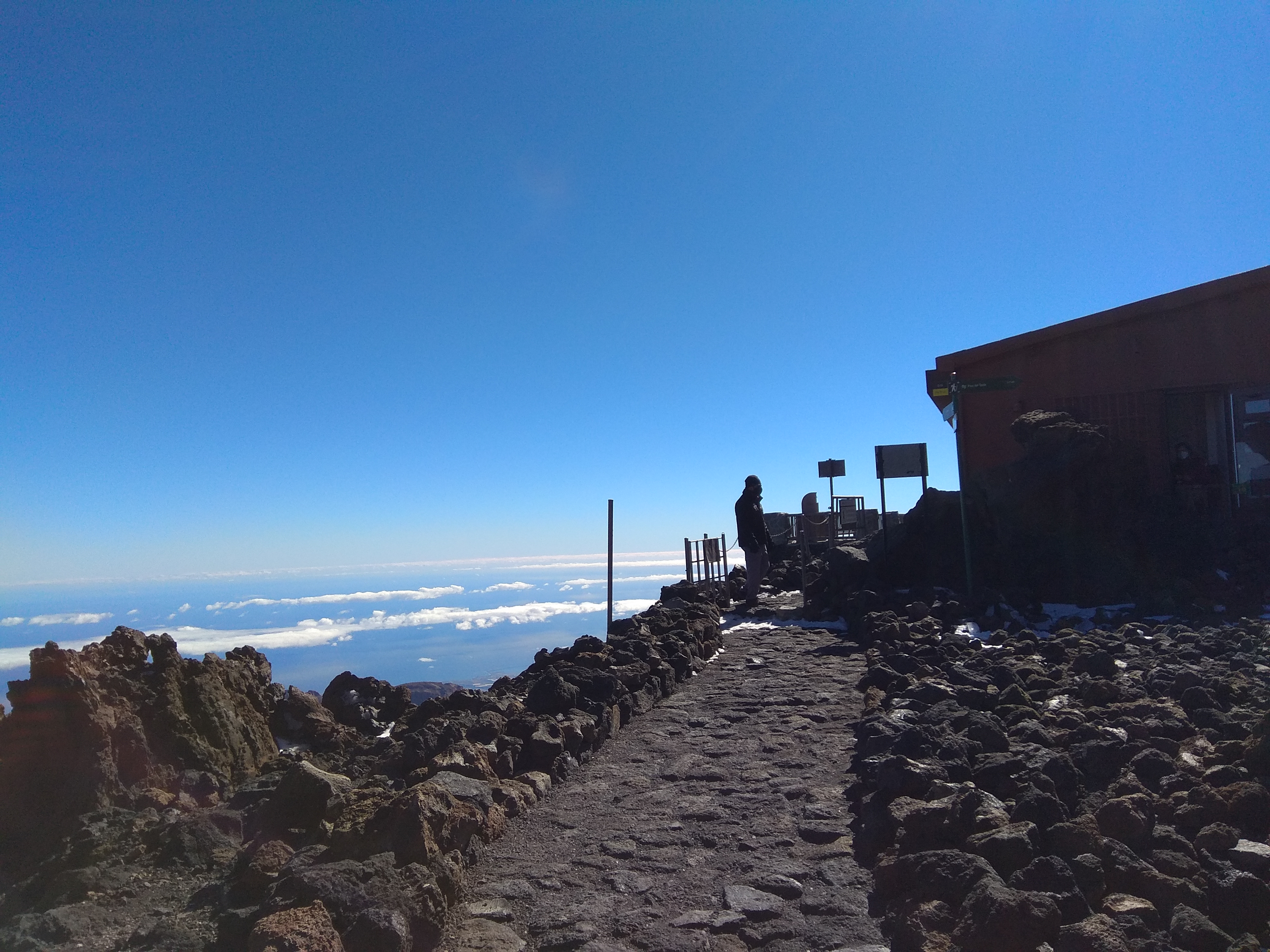 El recorrido del sendero 11 es corto y de suave pendiente y nos llevará hasta el sendero 10, Telesforo Bravo, en cuyo inicio se sitúa el puesto de control de acceso al Pico del Teide, punto en el que nos solicitarán el permiso de acceso al Pico. La última parte de nuestro recorrido tiene una fuerte pendiente y un recorrido de unos 600 m que culminan con la espectacular vista desde el Pico más alto de España.