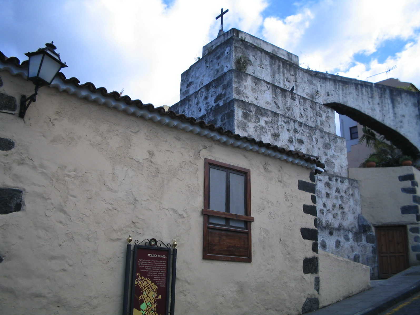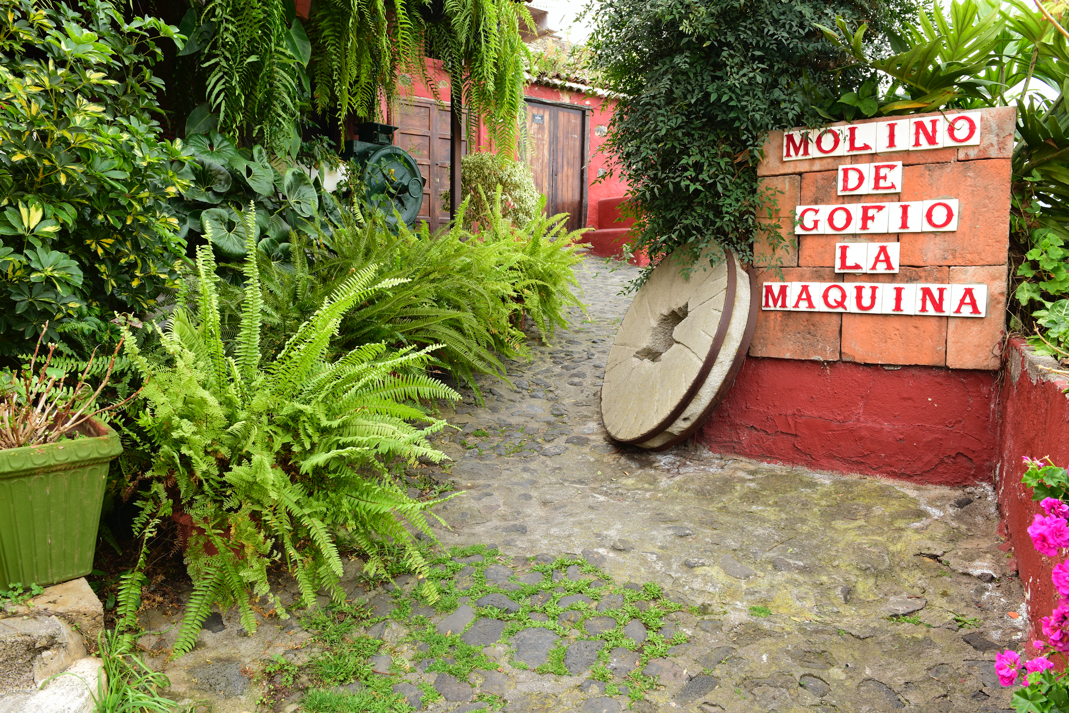 Try to imagine the great flow of water that emerged from the Aguamansa springs to irrigate these fertile lands of the Valley. This volume of water, taking advantage of the great unevenness of the land, favoured the appearance of thirteen mills, comprised of a stonework container for the water that would push a pair of horizontal hydraulic gearwheels engaged to the millstones. The water flowed in wooden canals that were later replaced by mortar ones. These wooden canals, with many elevated sections, lost a great amount of water and this was the reason why an irrigation ditch was placed between the street cobblestones. The convents and the neighbouring houses took water directly from the ditch. The San Francisco Street public washing place is another area related to the water supply for public use in the town centre. Its origin goes back to the sixteenth century when it was created from the irrigation ditch that led the water to the primitive neighbour settlement, and it was in close connection with the flour mills. In this public washing place, two very different structures can be seen, connected to two different historical moments. On the one hand, we can find the primitive one, built around the irrigation ditch, provided with stone slabs for washing clothes. On the other hand, it is possible to appreciate the cement public washing facilities introduced by Tomás Machado and Méndez Fernández de Lugo in 1945. The reason for the appearance of the water mills is the lack of wind that characterises the weather of the valley, which made it impossible to use windmills. At present, of the ten mills which are still preserved, two continue to operate, but with electric energy, producing the quintessential Canarian food called “gofio”, flour obtained by grinding the previously roasted grain of a cereal (corn, wheat, barley or even a mixture of two of them).
