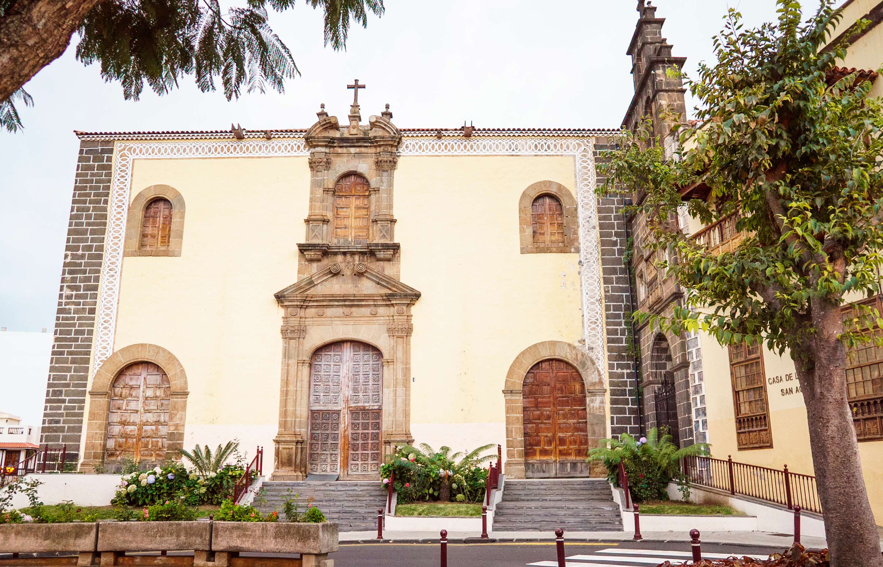 En fechas recientes se ha llevado a cabo una profunda restauración que le ha devuelto parte del su esplendor original. Fíjate en la gran altura de los muros perimetrales de este templo, que sumada a su elevado emplazamiento, hacían esta iglesia visible desde casi toda La Orotava, una pretensión de ostentación religiosa relacionada con la ideología típica de la orden agustina, que en la Orotava gozaba del apoyo de las familias pudientes. De la fachada destaca su portada central de dos cuerpos, realizada en piedra, de corte clasicista. En el interior podemos ver preciosos techados.
