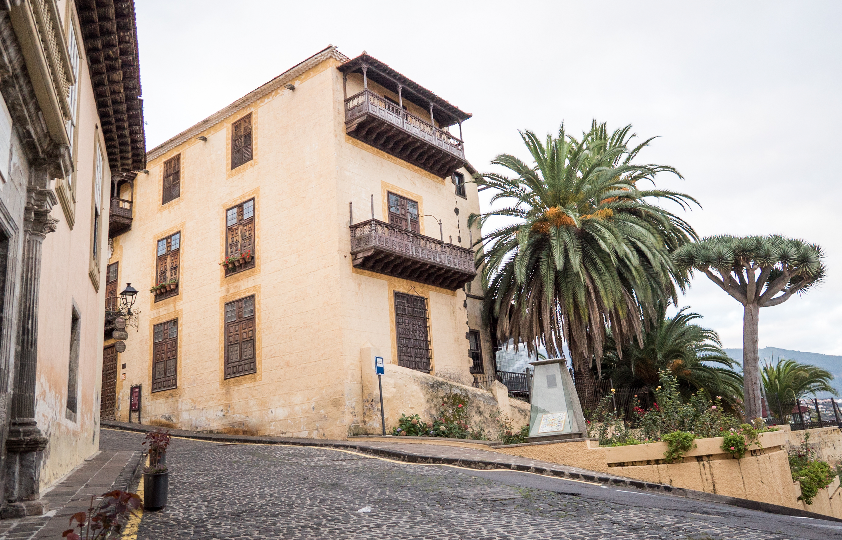 Justo encima de donde nos encontramos, en esta misma acera, vemos la Casa Lercaro. Esta casa señorial de finales del siglo XVII está vinculada originalmente a la familia Ponte, descendientes de un banquero genovés que invirtió en la conquista. Tras el reparto de tierras, sus herederos han ostentado el título nobiliario de marqueses de la Quinta Roja.