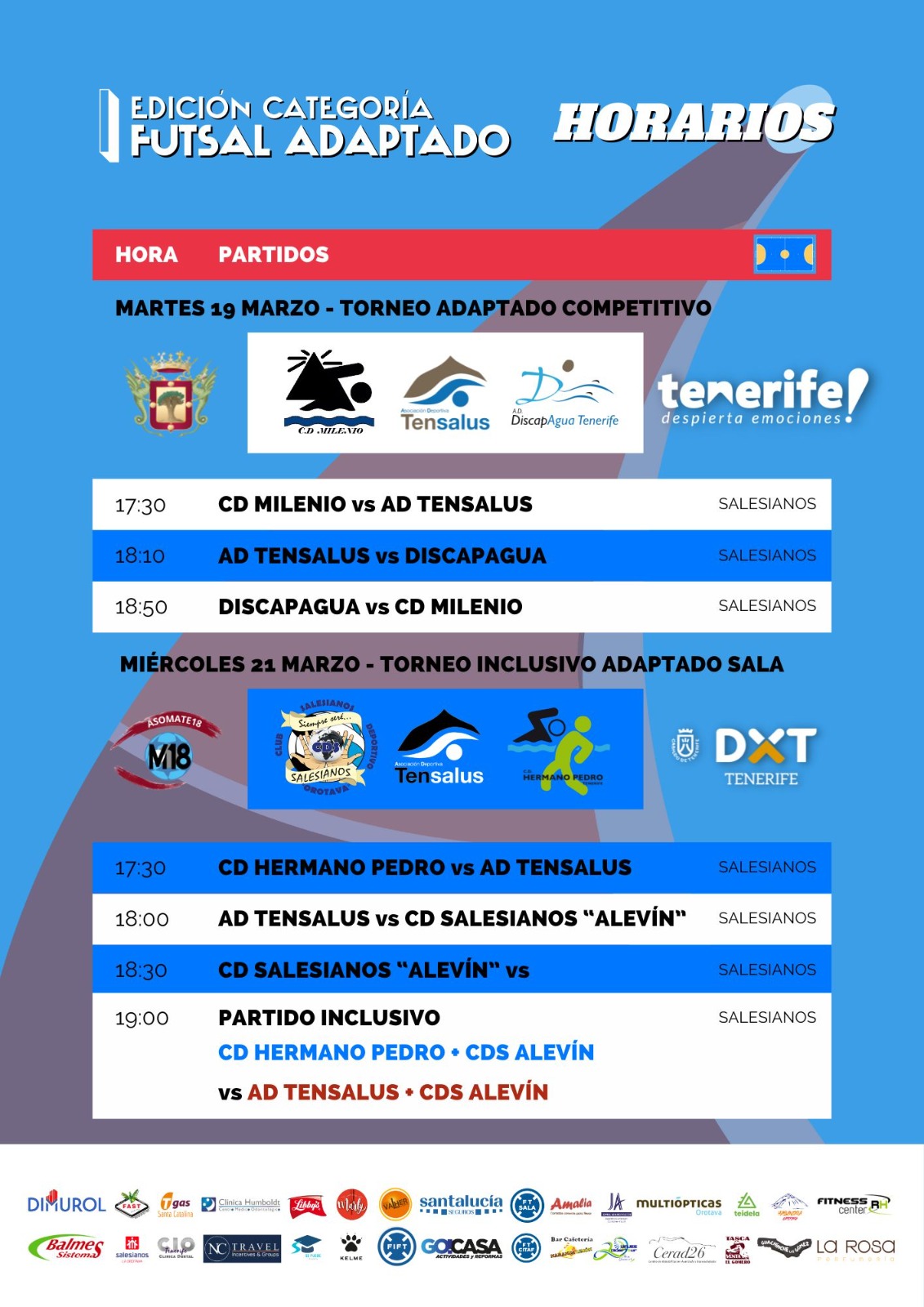 Con la participación de equipos destacados como el Club Deportivo Salesianos "Orotava", C.D. Milenio, C.D. Hermano Pedro Tenerife, Asociación Deportiva Tensalus y A.D. DiscapAgua Tenerife.