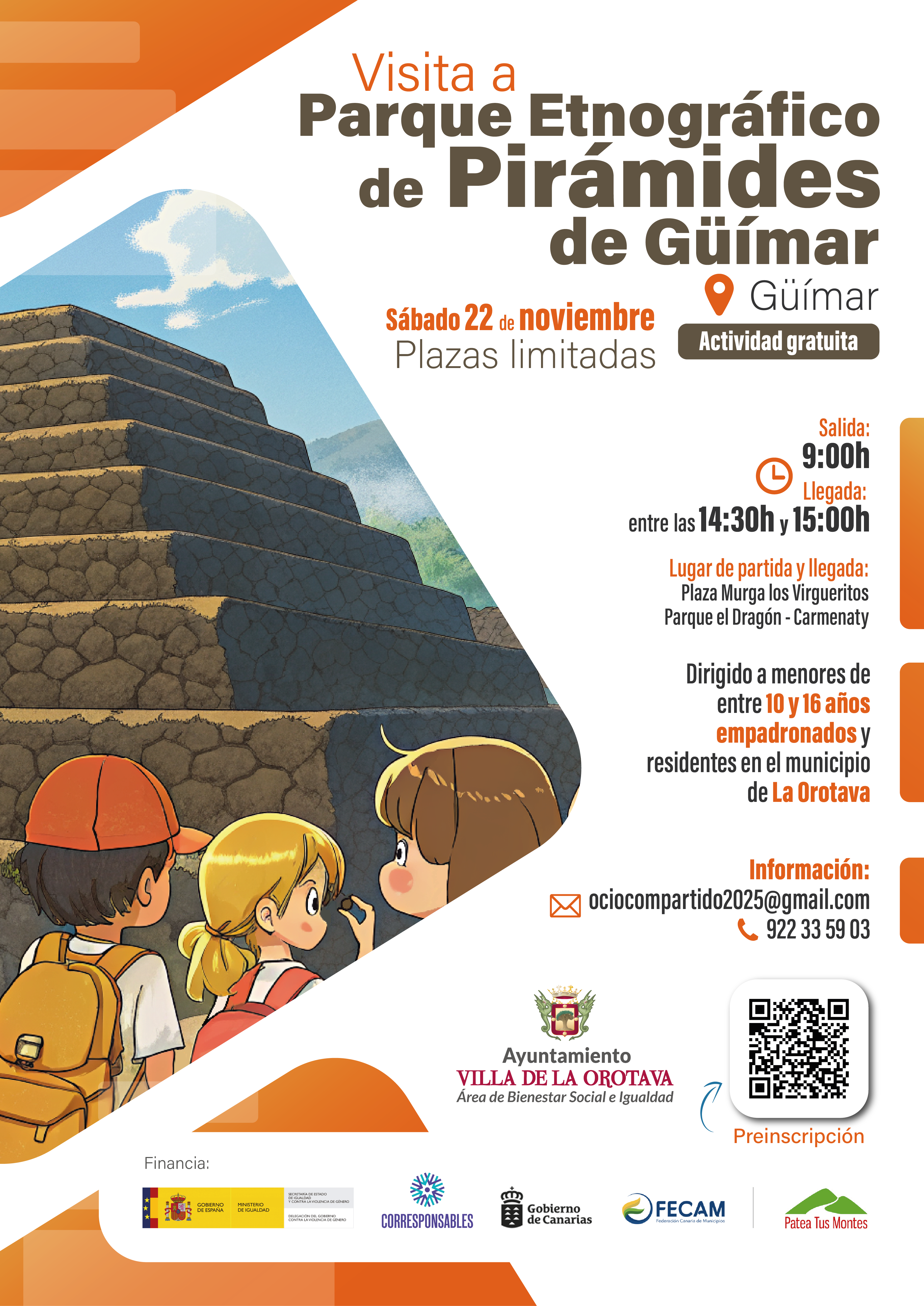 Durante la actividad, los participantes podrán conocer de cerca las pirámides escalonadas de Güímar, descubrir las teorías sobre su origen y explorar el parque botánico y etnográfico que las rodea. Una experiencia educativa que fomenta la curiosidad, el aprendizaje histórico y el respeto por el patrimonio canario.