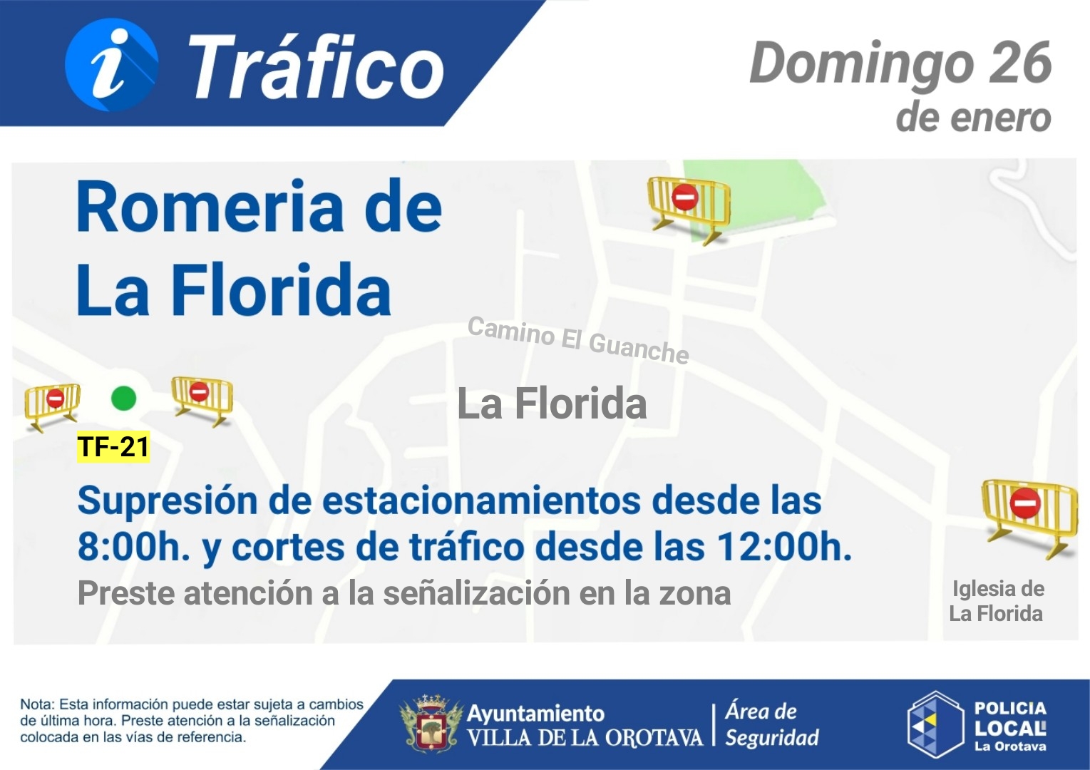 Avisos para el domingo 26 de enero por la romería de La Florida