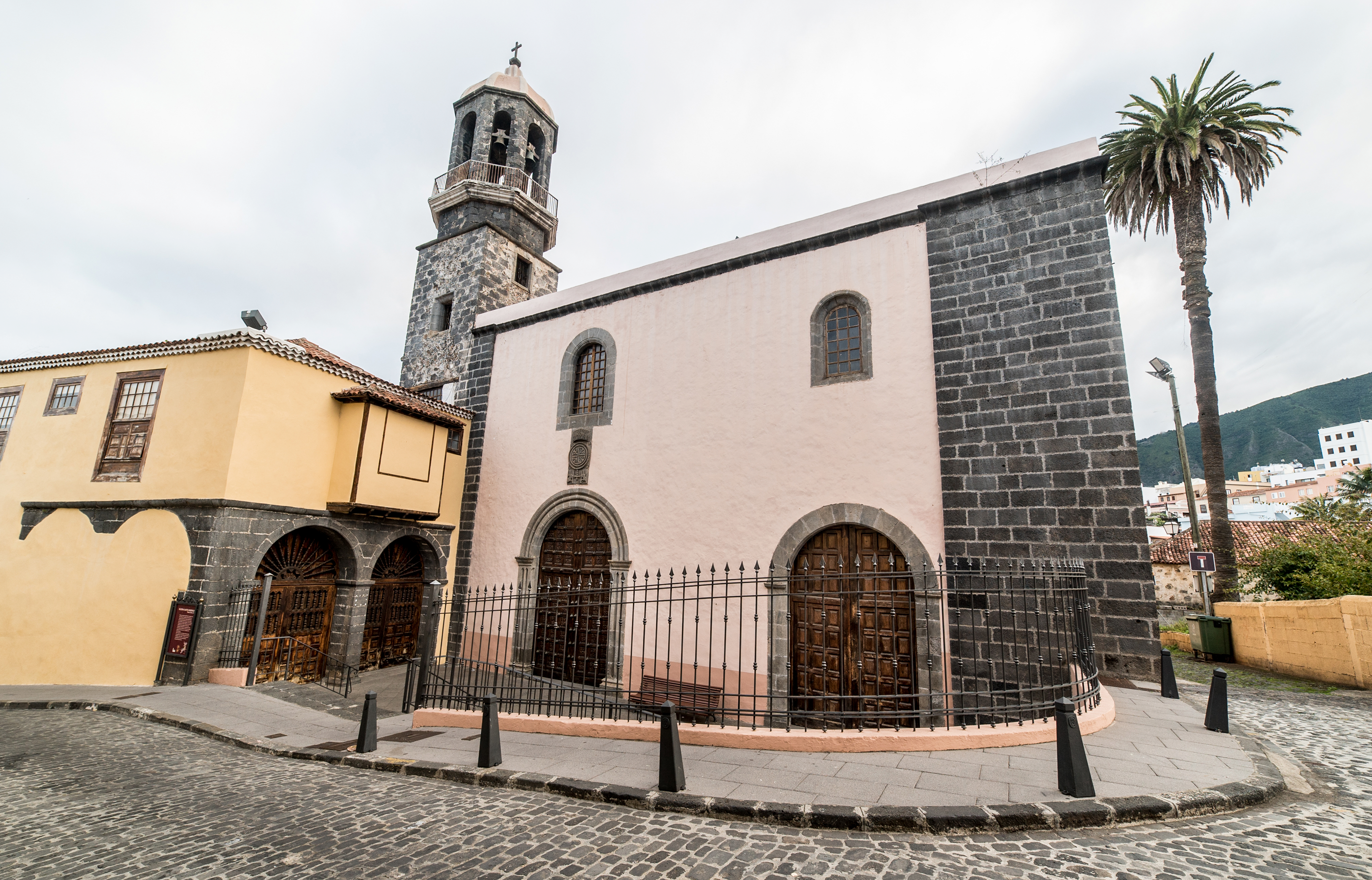 Esta pequeña iglesia, anexa al convento, destaca en el exterior por la anchura de la torre que alberga el campanario. En el interior encontramos un auténtico catálogo de techumbres mudéjares. Esto es debido a que las numerosas capillas de las familias adineradas fueron construidas de manera independiente y se fusionaron con posterioridad. La variedad de formas y dimensiones de los artesonados que cubren tanto las naves como las capillas laterales lo convierten en un espacio único en Canarias. Son a su vez de gran interés las tallas y pinturas de distintas épocas que alberga.