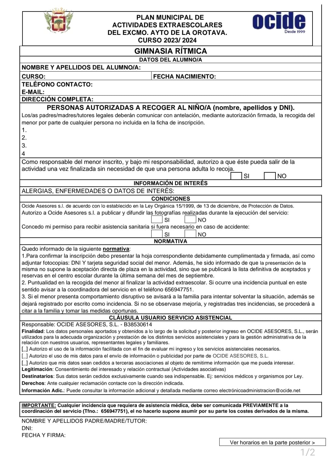 ✍🏼Las personas interesadas en inscribirse pueden descargarse la solicitud de inscripción que encontrarán en esta misma información en la web municipal como documento adjunto.