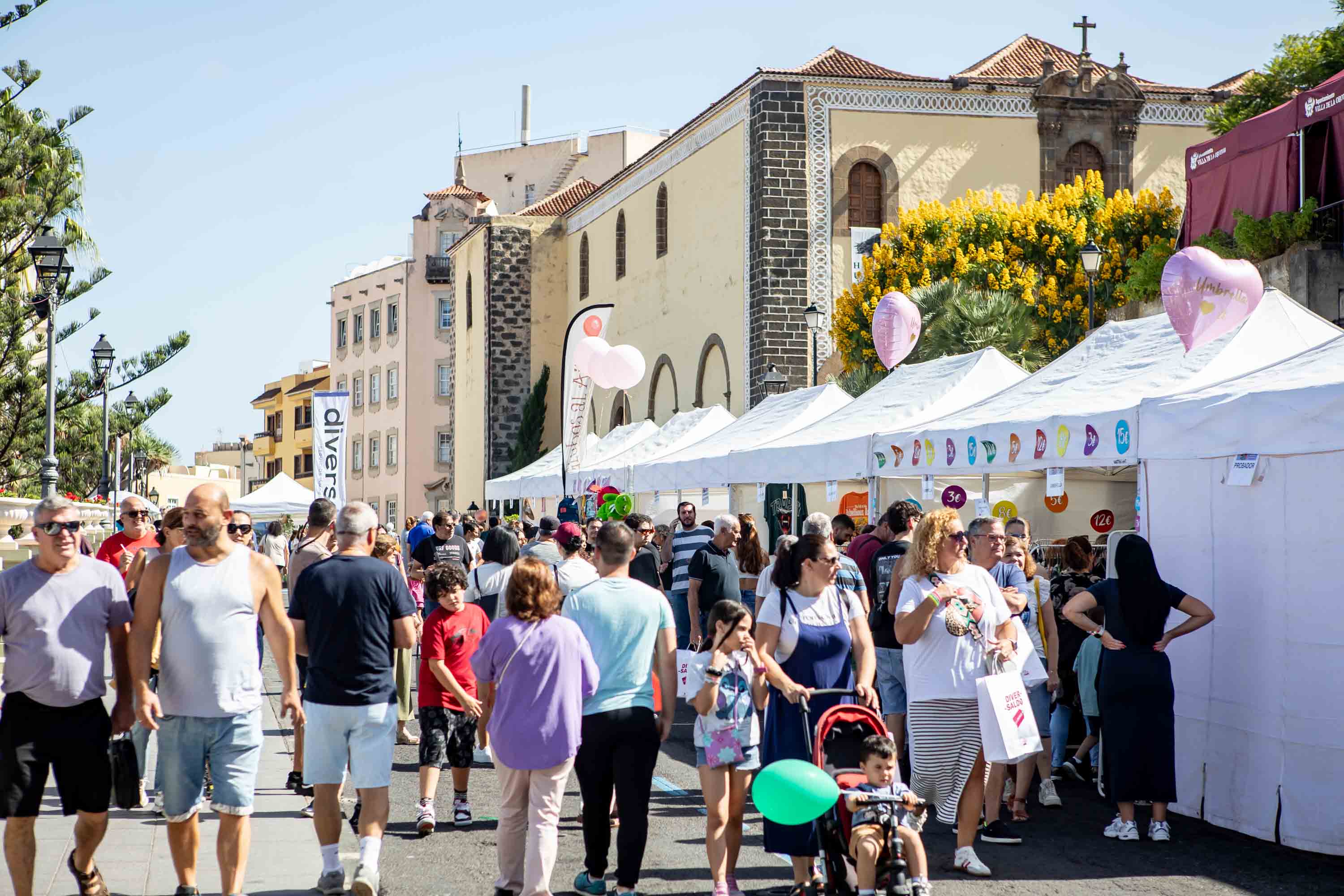 Más de 15.000 personas han podido disfrutar, este fin de semana, de dos jornadas dinamizadoras en pleno centro urbano de la Villa: la gran feria de saldos del Norte de Tenerife, DiverSaldo, y un nuevo evento gastronómico, DiverFest. Este último se llevó a cabo entre la tarde del viernes y el sábado, desde las 10.00 de la mañana hasta la media noche. Además de contarse con una veintena de empresas del municipio que ofrecieron gran variedad de platos elaborados con productos de la tierra, también se pudo degustar una variada y deliciosa repostería, cervezas artesanales y vinos de la comarca. La música fue también protagonista contándose con actuaciones en directo o la animación con dj. El concierto Ni un Pelo de Tonto cerró el evento. Y no faltaron numerosos juegos, talleres y actividades para los más pequeños de la casa, que contaron con su propio espacio en la zona.