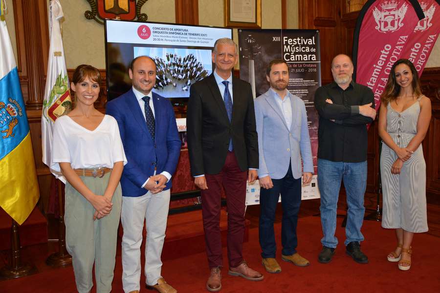 El Festival de Música de Cámara 'Ensemble Villa de La Orotava' se ha ido consolidando con el tiempo y se ha convertido en uno de los festivales, de estas características, de mayor prestigio. “Es todo un referente en Canarias, tanto por su original formato como por la excelencia de los jóvenes talentos que participan en el mismo, y por tener una calidad extraordinaria. En un evento cultural, educativo y formativo, que a la vez genera riqueza económica en el municipio y atrae a numerosos turistas”, valoró el alcalde villero durante la presentación del evento que tuvo lugar este viernes 29 de junio en el Consistorio orotavense, y que contó también con la presencia de Isaac Castellano, consejero de Turismo, Cultura y Deportes del Gobierno de Canarias, y el director del Festival, Julio Castañeda.
