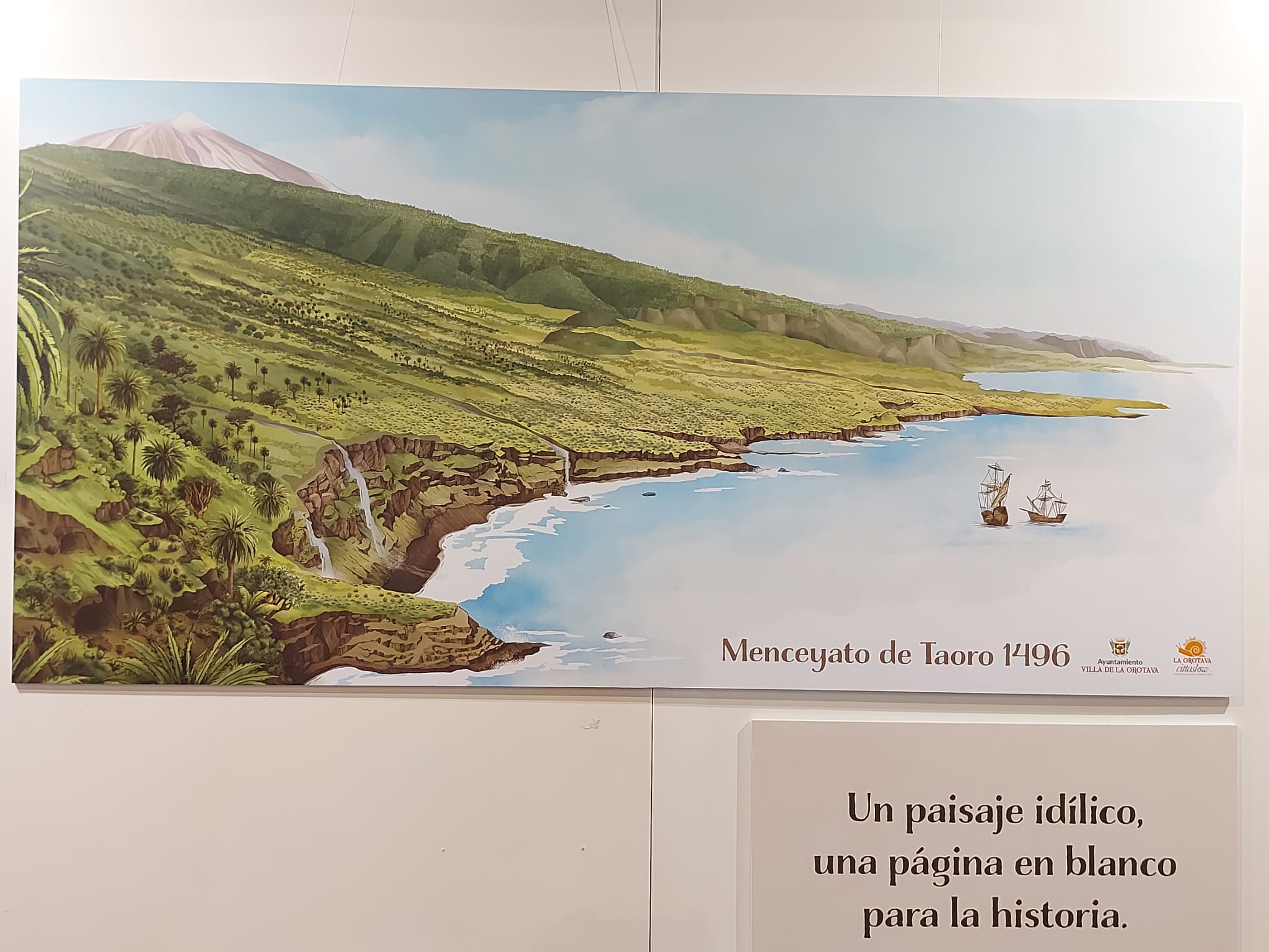 La muestra está presidida por un diseño del artista Damián Rodríguez Álvarez en el que se reproduce una imagen aproximada de cómo podría haber sido el Valle de La Orotava en la época prehispánica. Con este cuadro la Asociación Cultural Alisios Encuentro Canarias-América, que organiza las Jornadas Cervantinas, lanza un mensaje para que se fomente aún más la investigación sobre la historia prehispánica de Tenerife y del Valle de La Orotava.