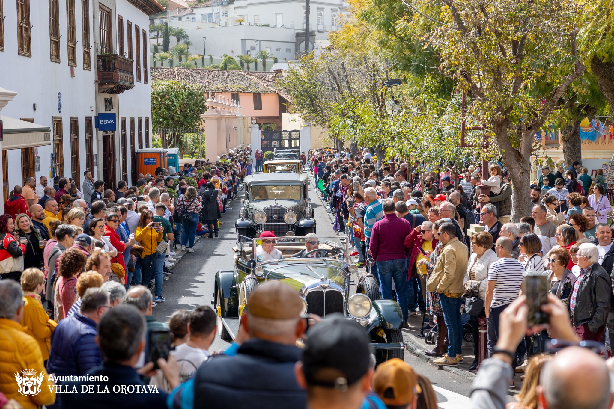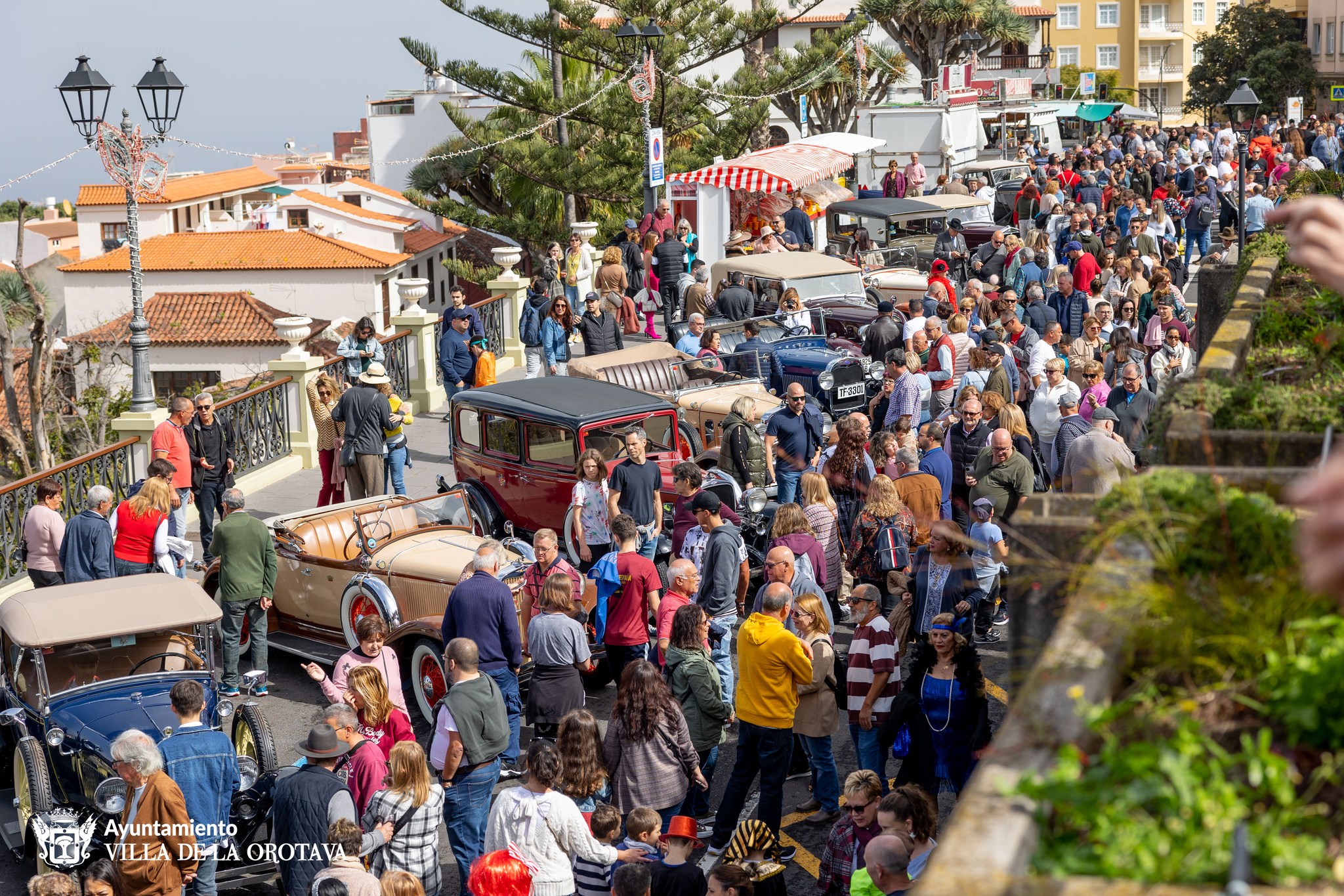 La Orotava celebra este martes, día festivo en el municipio, su día grande de las fiestas del carnaval. Por la mañana, a partir de las 10.00 horas, acoge en el entorno de la Plaza de la Constitución la LI muestra de coches antiguos e inicio del posterior paseo por el Valle. Y un año más se contará con la participación de la Fanfarria Peña El Casco para amenizar el ambiente. En este acto, al que asiste numeroso público, se contará con la presencia de la Reina del Carnaval portuense, y su corte de damas de honor, junto a la corte de La Orotava y autoridades de ambos municipios.