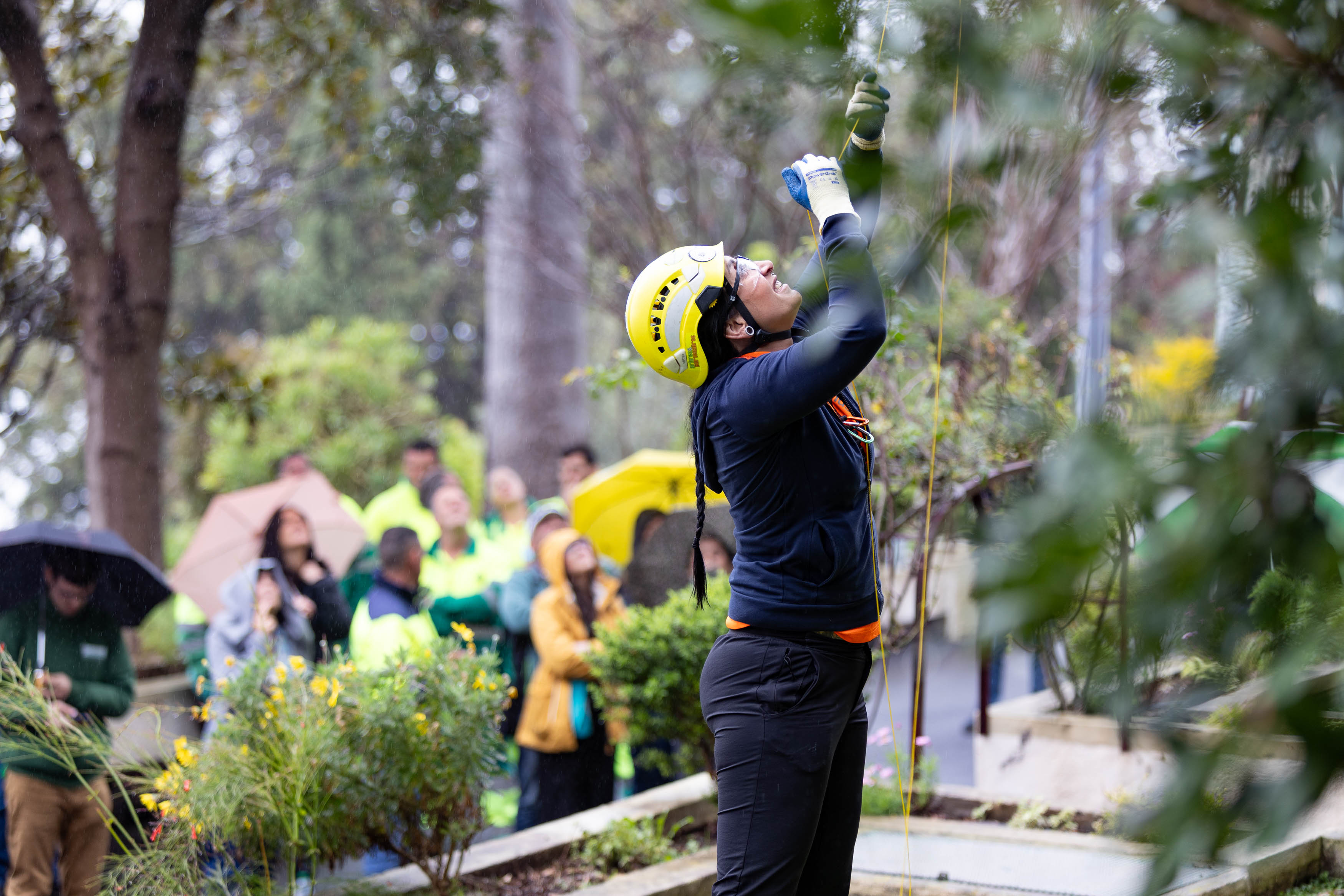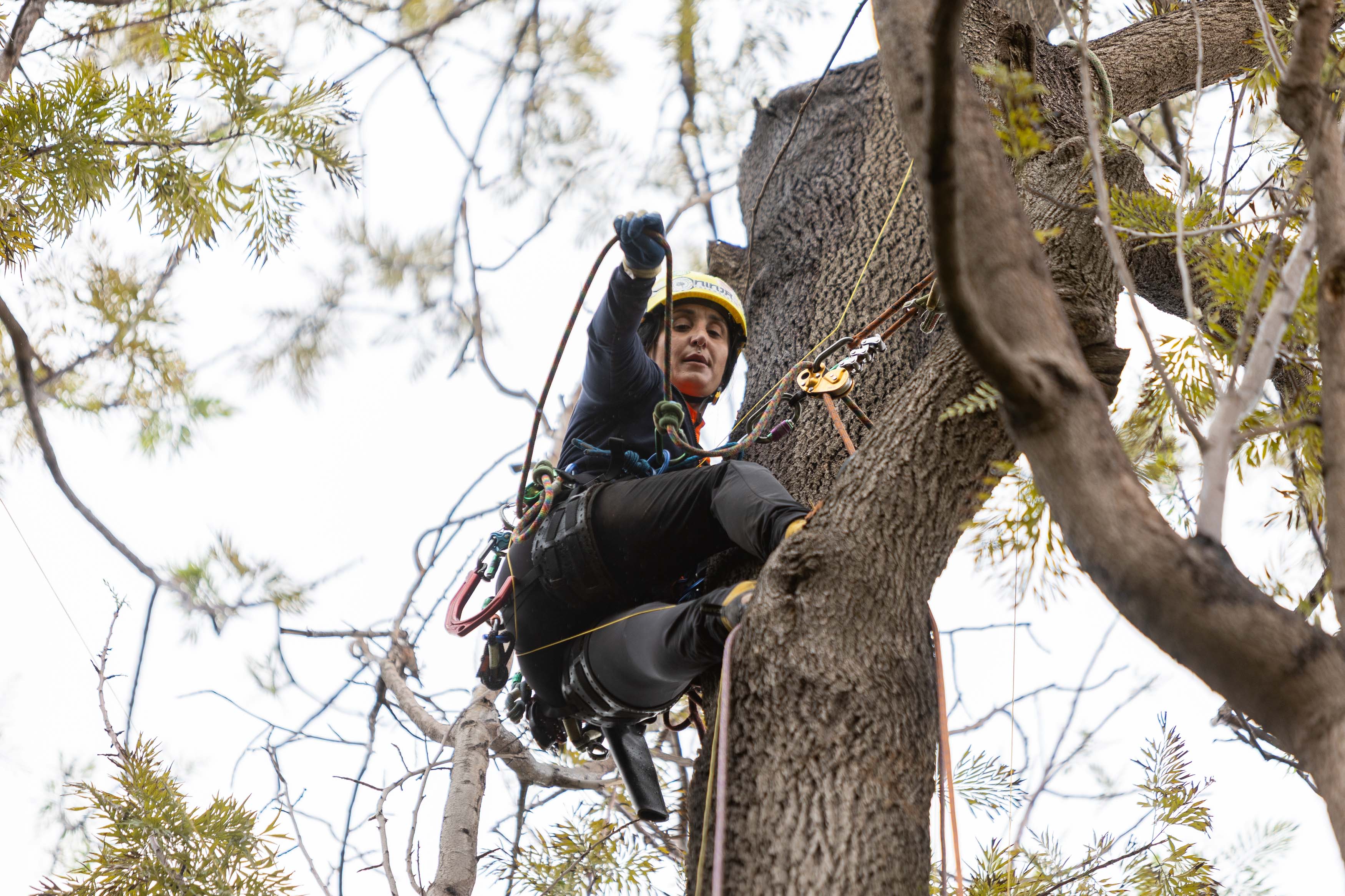 La campeona de España en la modalidad de trepa y representante de España en el Campeonato Europeo de Trepa de Árboles ofreció una demostración de trepa y poda en uno de los ejemplares arbóreos del Parque Cultural Doña Chana