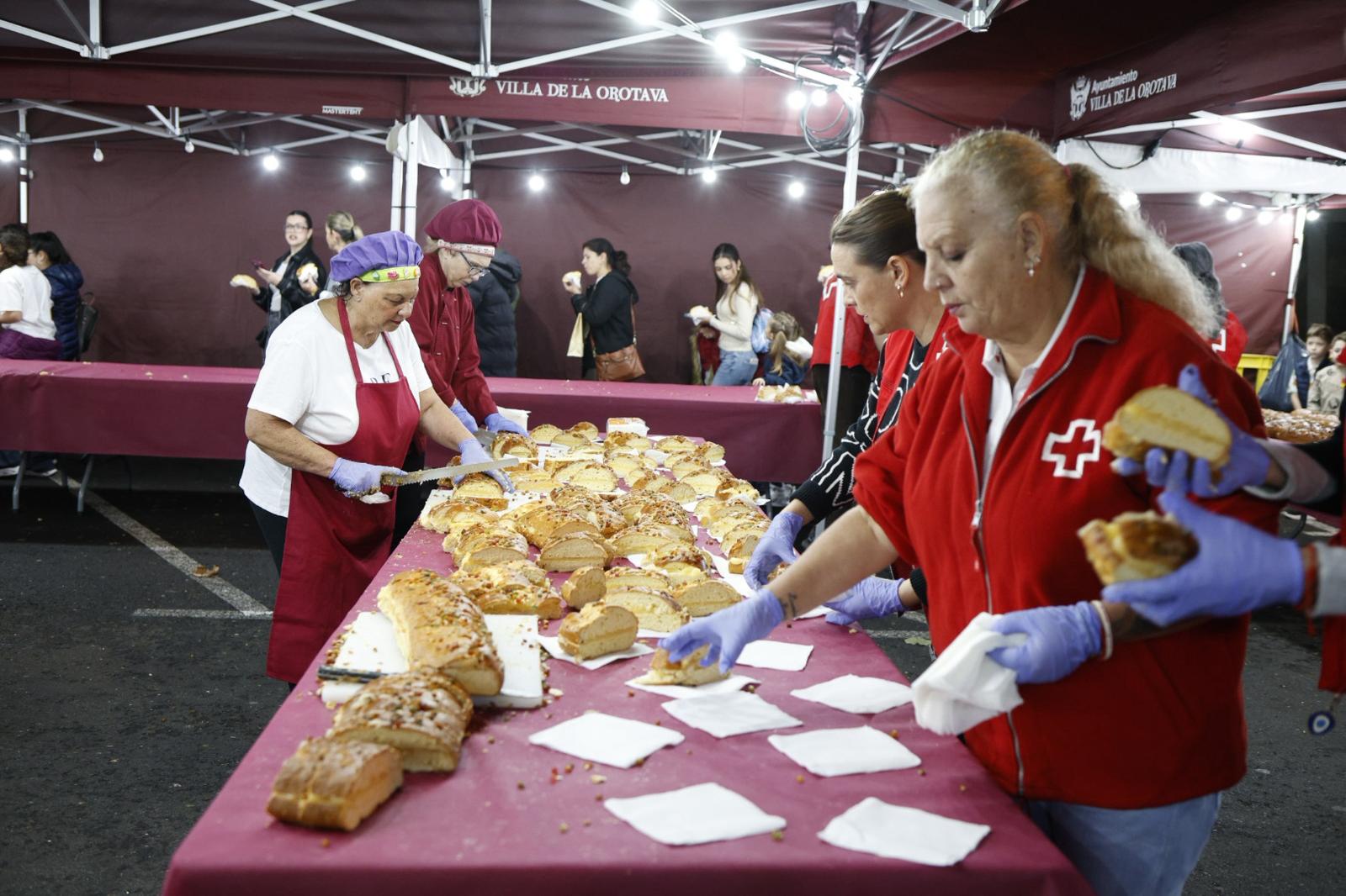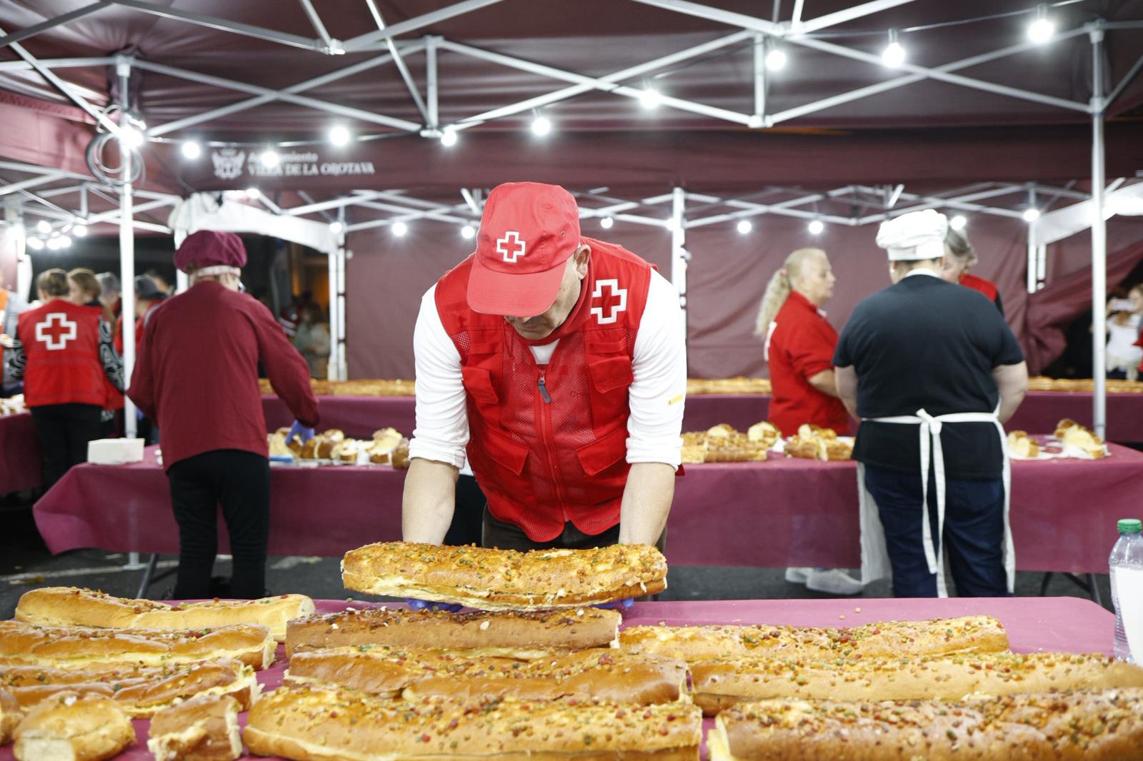 Un año más ha sido todo un éxito uno de los eventos más golosos y esperados del amplio programa de actos de la Navidad en La Orotava, como es el gran roscón de reyes, uno de los más grande de Tenerife y de Canarias. En esta décimo cuarta edición se repartieron más de 5.000 porciones del dulce gigante, elaborado por dos empresas locales: panadería Jovita y dulcería la Manobuena. El reparto comenzó a las 17.00 horas y culminó sobre las nueve de la noche.
