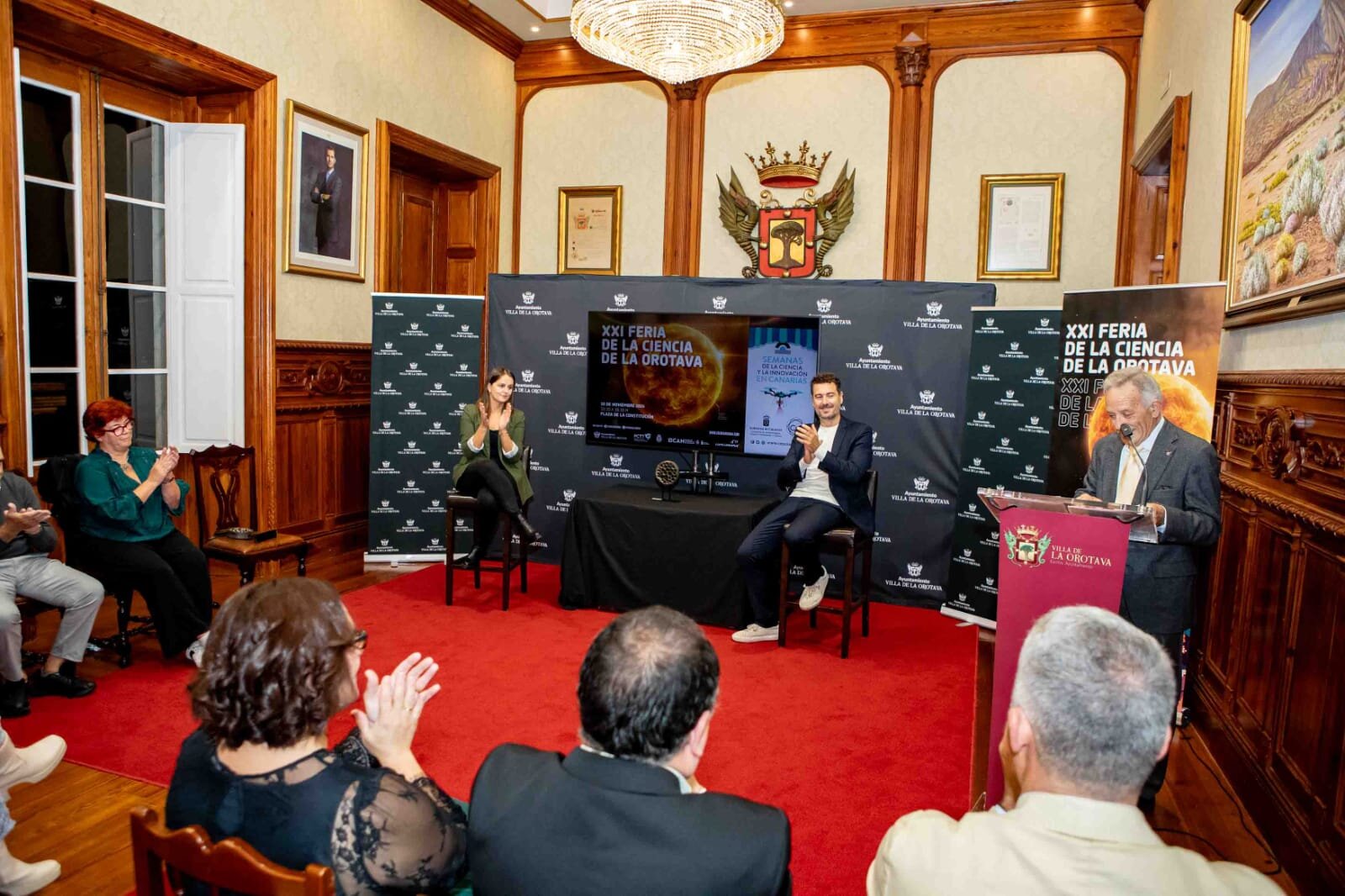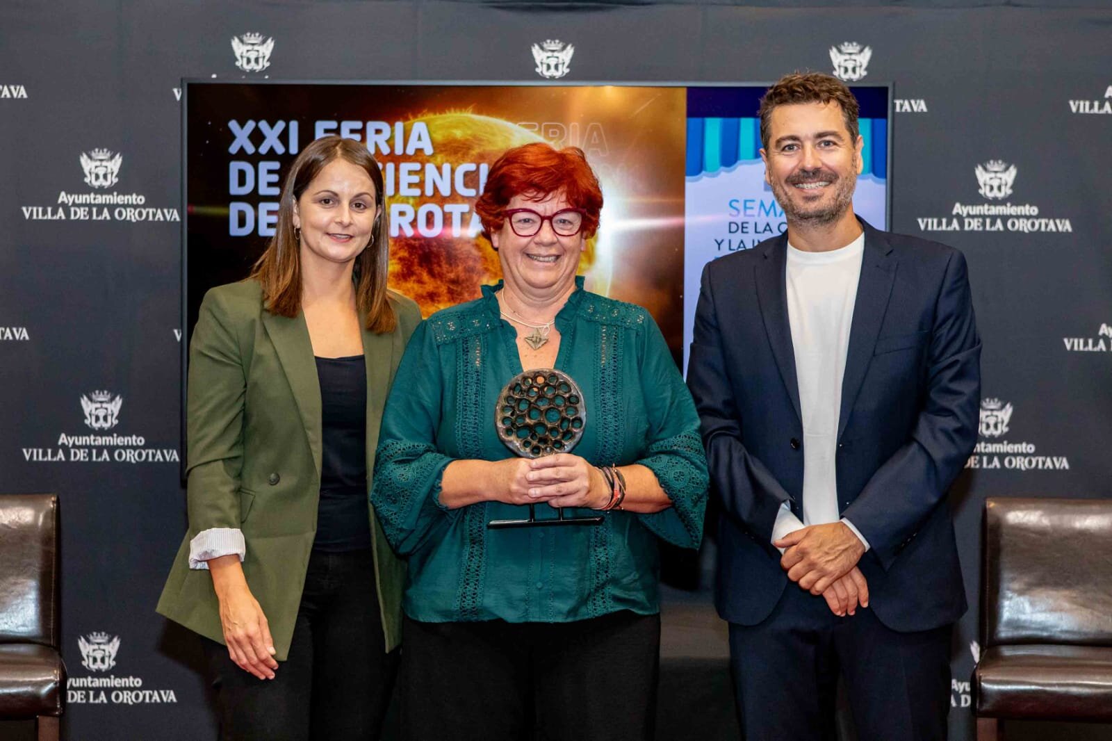 El director del evento, Juanjo Martín, apuntó que ya el pasado año se creó el ‘Premio Feria de la Ciencia de La Orotava’ con el fin de tener un gesto de agradecimiento con todas las personas e instituciones que trabajan cada día para acercar la ciencia a la ciudadanía y para poner a las islas en el foco de la ciencia internacional, ya que no hay distinción de estas características en Canarias. Este año se celebró la segunda edición, otorgándose tres categorías. En Investigación a Emilio Cuevas, exdirector del Observatorio Atmosférico de Izaña; en Divulgación a Edith Padrón, profesora de Matemáticas en la ULL, y en Enseñanza de las Ciencias a Luis Balbuena, también profesor de Matemáticas. El Salón Noble del Ayuntamiento de La Orotava acogió este jueves 7 el acto de entrega de premios.