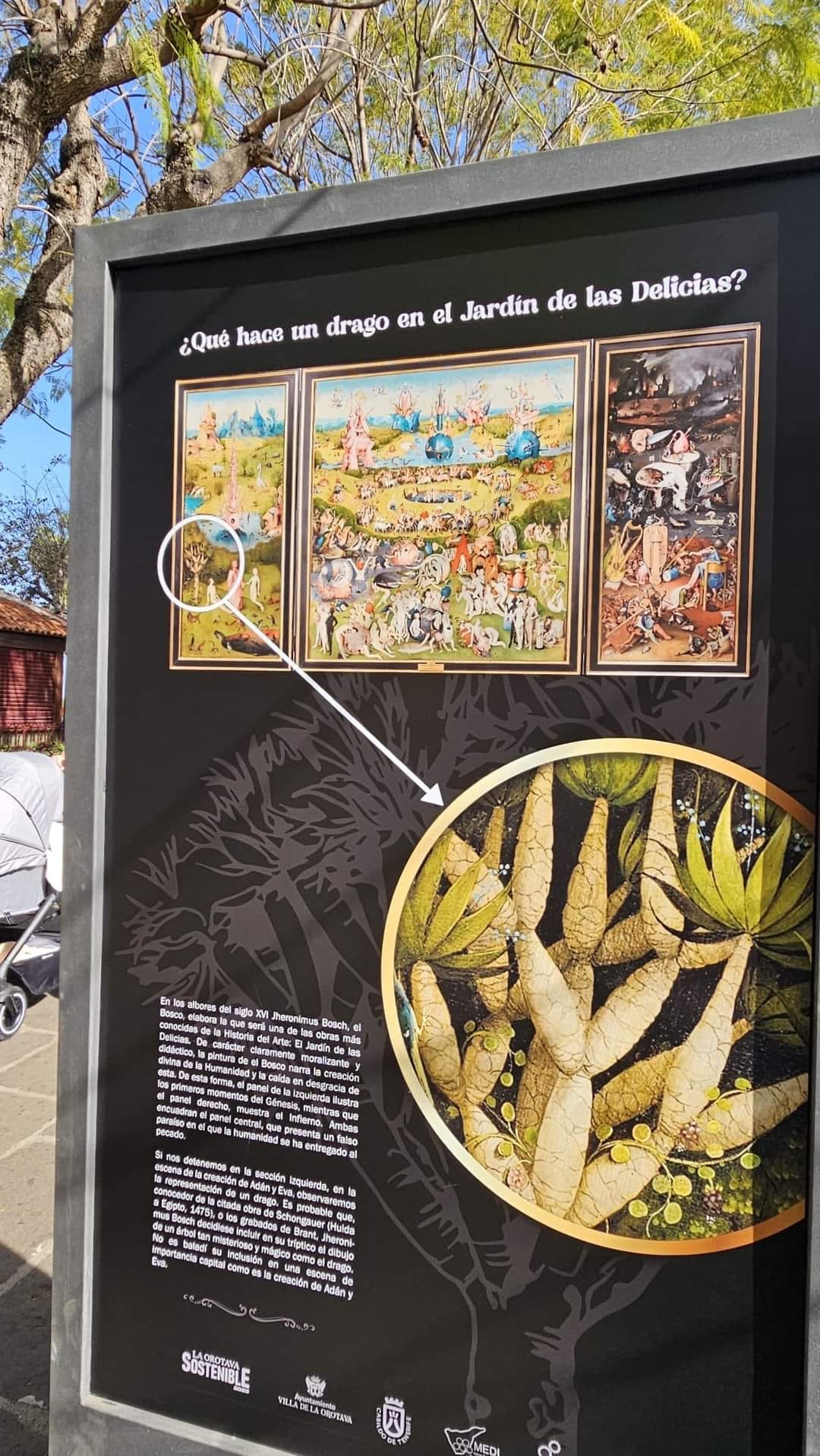 La plaza de la Constitución, conocida también como plaza del Quiosco, acoge desde este martes 20 de febrero y hasta el próximo 3 de marzo, la exposición denominada ‘Los hijos de ladón’, un paseo histórico por la representación artística e iconográfica de los dragos. También propone un recorrido histórico desde el siglo XV por la impronta que han ido dejando los dragos en la historia del arte canario y universal. El título de la muestra, que cuenta con diez paneles, se debe a la mitología que recoge que hace mucho tiempo existió un dragón milenario llamado Ladón que cuidaba el Jardín de las Hespérides y que sigue vivo en sus hijos: los árboles llamados dragos. Según la leyenda, su sangre cayó sobre las islas Canarias y de cada gota creció un drago. La muestra se ha realizado por el equipo del programa La Orotava Sostenible en coordinación entre el ayuntamiento villero y el Cabildo de Tenerife.