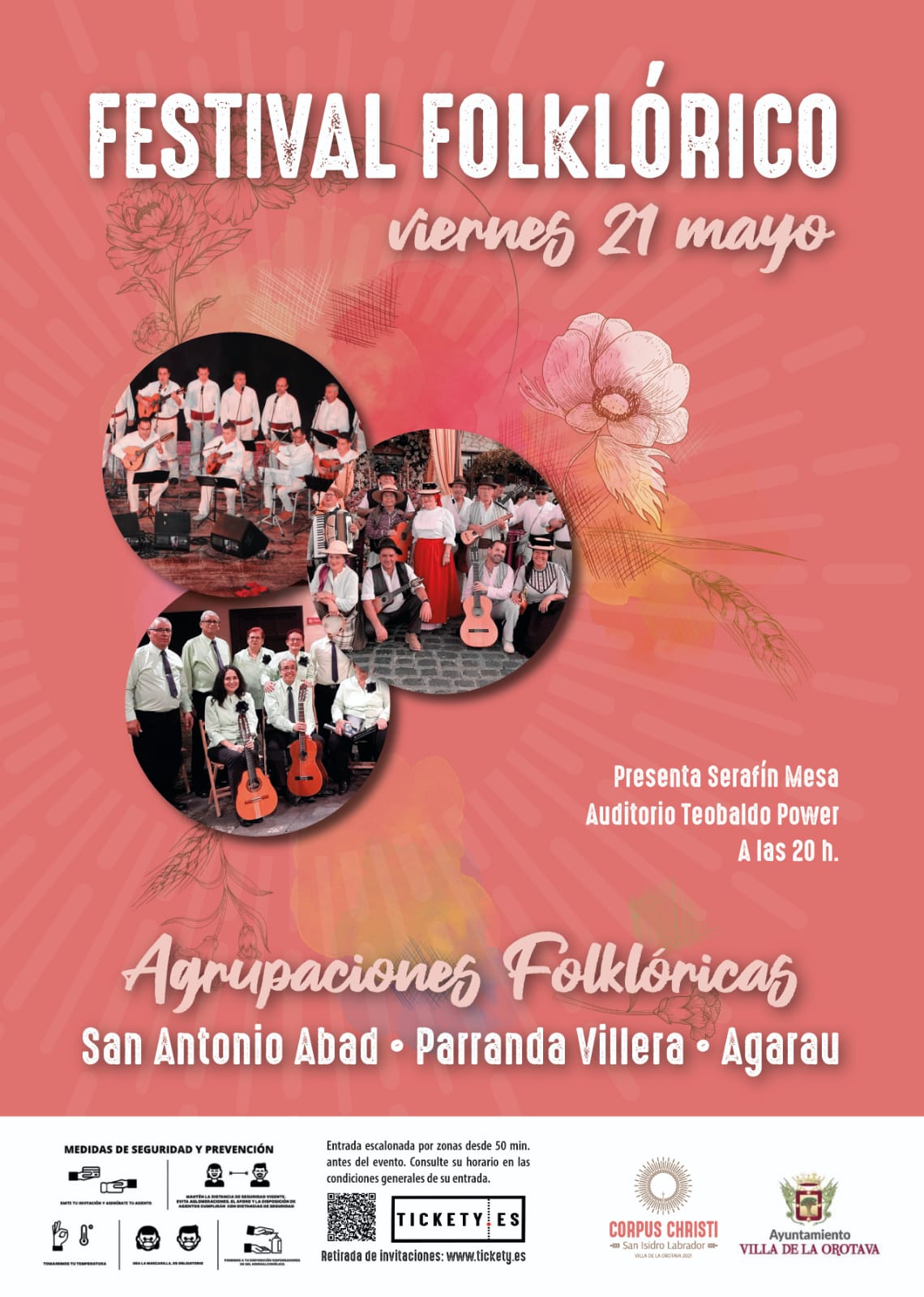 Dentro del programa de las Fiestas Patronales de La Orotava 2021, se incluye la celebración de varios espectáculos a cargo de los grupos locales. Además de los tradicionales festivales organizados por los colectivos Oroval, Magec y Tambara, se contará con dos festivales folclóricos más en los que participarán el resto de grupos villeros.