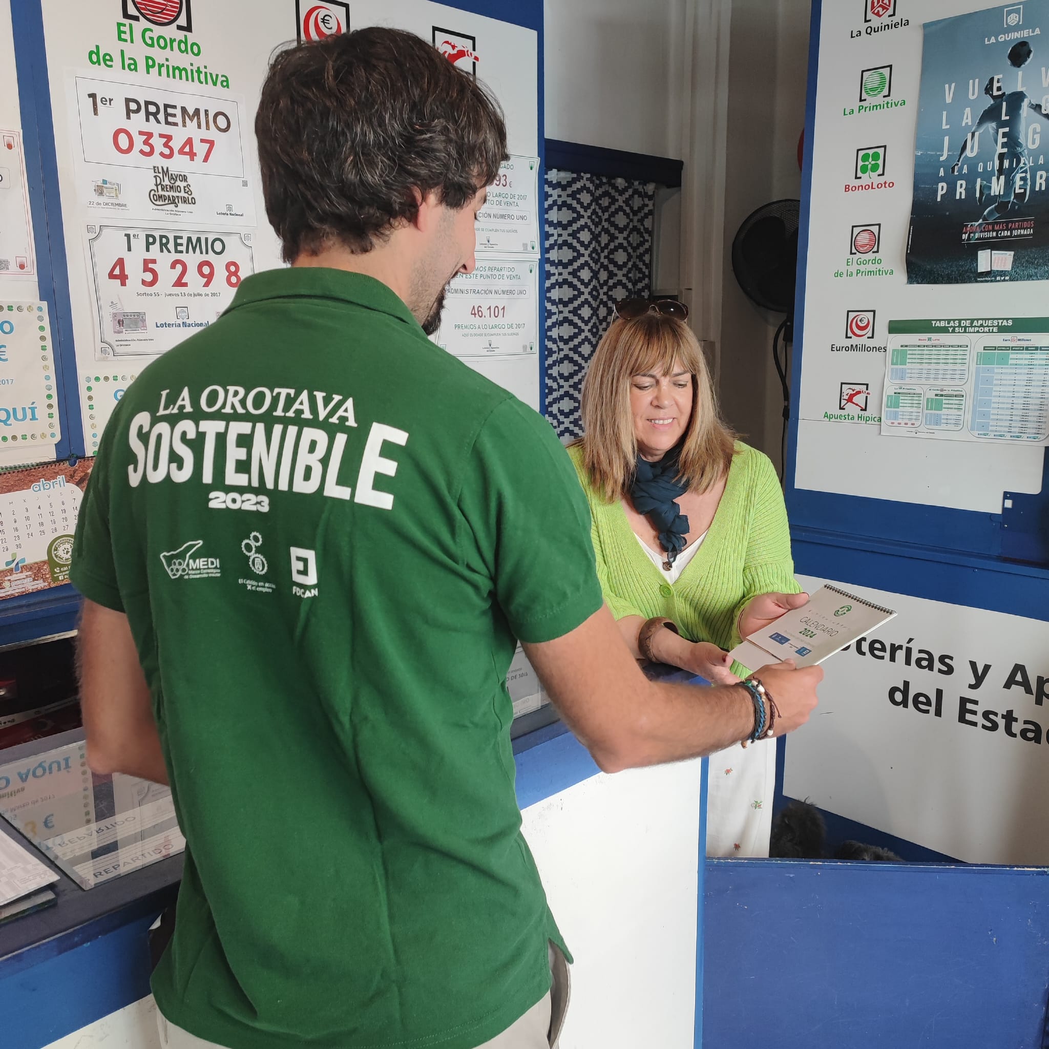 El Ayuntamiento de La Orotava es firmante en el Pacto de las Alcaldías por el Clima y la Energía Sostenible (PACES), un compromiso que pretende reducir en un 40% los gases de efecto invernadero de aquí a 2030. El consistorio está centrado en cumplir con los Objetivos de Desarrollo Sostenible como disminuir las emisiones de gases de efecto invernadero a la atmósfera, pues son los principales contribuyentes del cambio climático. Y con este manual se busca la protección ambiental, así como promover la adopción de medidas conjuntas para la atenuación del cambio climático. Por ello se aboga por una energía asequible y no contaminante, un municipio sostenible y un consumo responsable. Y en esta última iniciativa de distribuir calendario con consejos y enlace al manual de buenas prácticas por los comercios del municipio, participan las áreas de Medio Ambiente, Sostenibilidad y Lucha Contra el Cambio Climático y de Comercio, dirigidas respectivamente por Luis Perera y Deisy Ramos.