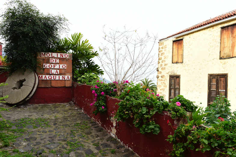 Try to imagine the great flow of water that emerged from the Aguamansa springs to irrigate these fertile lands of the Valley. This volume of water, taking advantage of the great unevenness of the land, favoured the appearance of thirteen mills, comprised of a stonework container for the water that would push a pair of horizontal hydraulic gearwheels engaged to the millstones. The water flowed in wooden canals that were later replaced by mortar ones. These wooden canals, with many elevated sections, lost a great amount of water and this was the reason why an irrigation ditch was placed between the street cobblestones. The convents and the neighbouring houses took water directly from the ditch. The San Francisco Street public washing place is another area related to the water supply for public use in the town centre. Its origin goes back to the sixteenth century when it was created from the irrigation ditch that led the water to the primitive neighbour settlement, and it was in close connection with the flour mills. In this public washing place, two very different structures can be seen, connected to two different historical moments. On the one hand, we can find the primitive one, built around the irrigation ditch, provided with stone slabs for washing clothes. On the other hand, it is possible to appreciate the cement public washing facilities introduced by Tomás Machado and Méndez Fernández de Lugo in 1945. The reason for the appearance of the water mills is the lack of wind that characterises the weather of the valley, which made it impossible to use windmills. At present, of the ten mills which are still preserved, two continue to operate, but with electric energy, producing the quintessential Canarian food called “gofio”, flour obtained by grinding the previously roasted grain of a cereal (corn, wheat, barley or even a mixture of two of them).