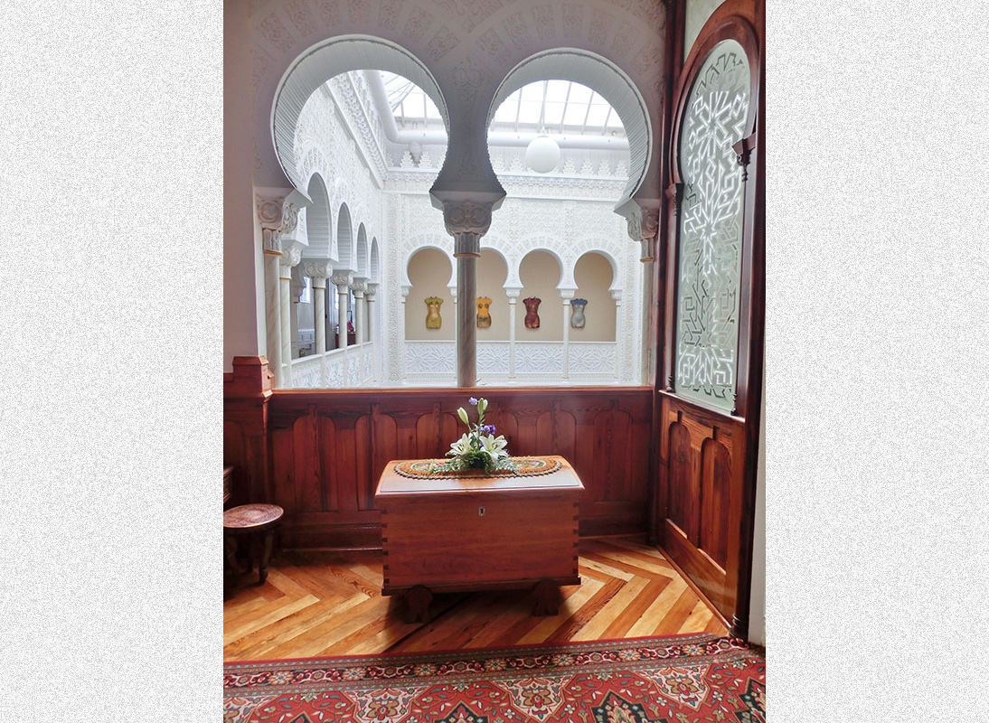 La apariencia actual de estilo ecléctico del edificio del Hotel Alhambra se debe a las dos reformas sucesivas proyectadas por Mariano Estanga para la familia Ascanio, que culminaron en 1925. En la fachada optó por elementos de estirpe clasicista como los frontones curvos o las balaustradas de los balcones. En el interior planteó la recreación de un patio nazarí, por medio de arcos de herradura, zócalos alicatados y ornamentación realizada en yesería. El Hotel Alhambra en su interior es confortable y cautivador, con un servicio personalizado, ofreciendo una alternativa al que huye de la masificación y del bullicio. Dispone de distintos tipos de espacios comunes: salas de estar, de lectura y de exposición con pinturas y frescos del Maestro Antonio Otazzo, entre otros. Dispone también de una zona acotada de estacionamiento en el exterior.