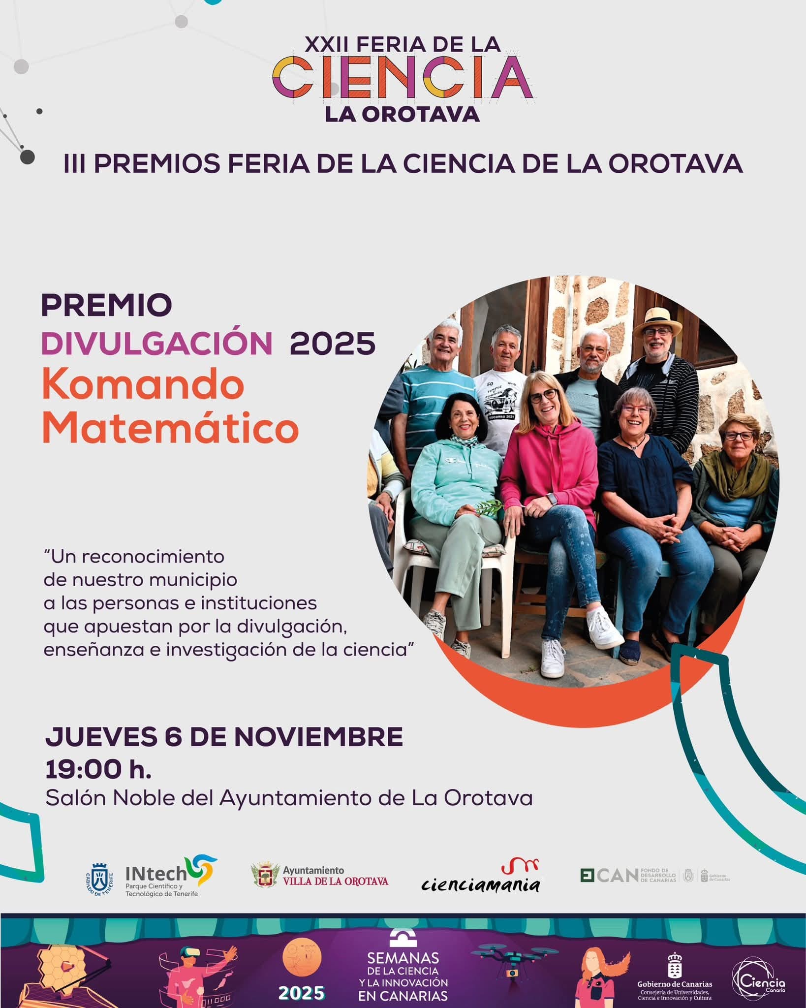 🏛️ El Alcalde-Presidente del Excmo. Ayuntamiento de la Villa de La Orotava, Francisco Linares García tiene el honor de invitarle al acto de entrega de los 🔬 III Premios Feria de la Ciencia La Orotava 2025 a: