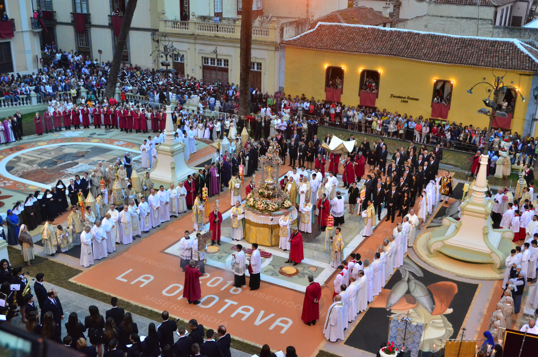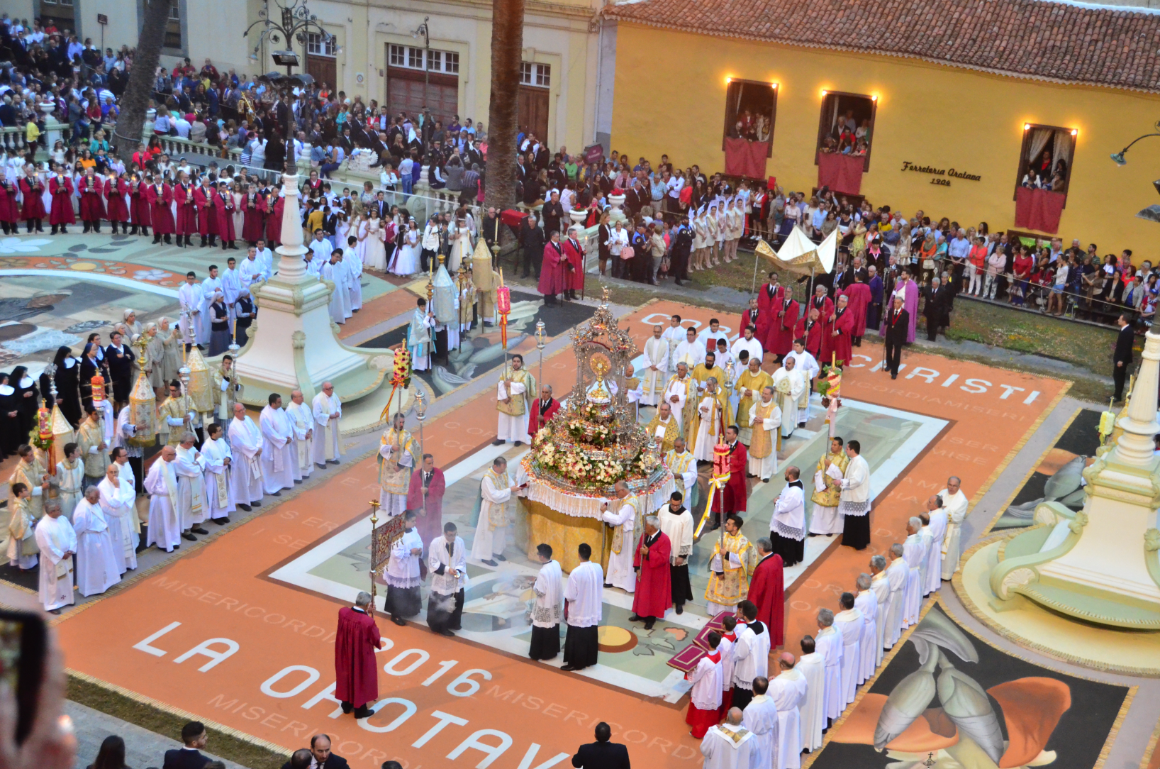 Las Fiestas Patronales de la Villa de La Orotava se celebran por espacio de cuatro días, un largo fin de semana que comienza en jueves y termina en domingo, pero no un jueves cualquiera, ya que la tradición tiene establecido un criterio cronológico. Problemas competenciales de índole religiosa hicieron que el obispo Vicuña firmara un documento salomónico: a partir del año 1700 dicha festividad se celebraría a los ocho días del Corpus Nacional, debiendo salir la procesión de la iglesia que regentaban las monjas del convento de San Nicolás (en la actualidad el edificio de Correos).
