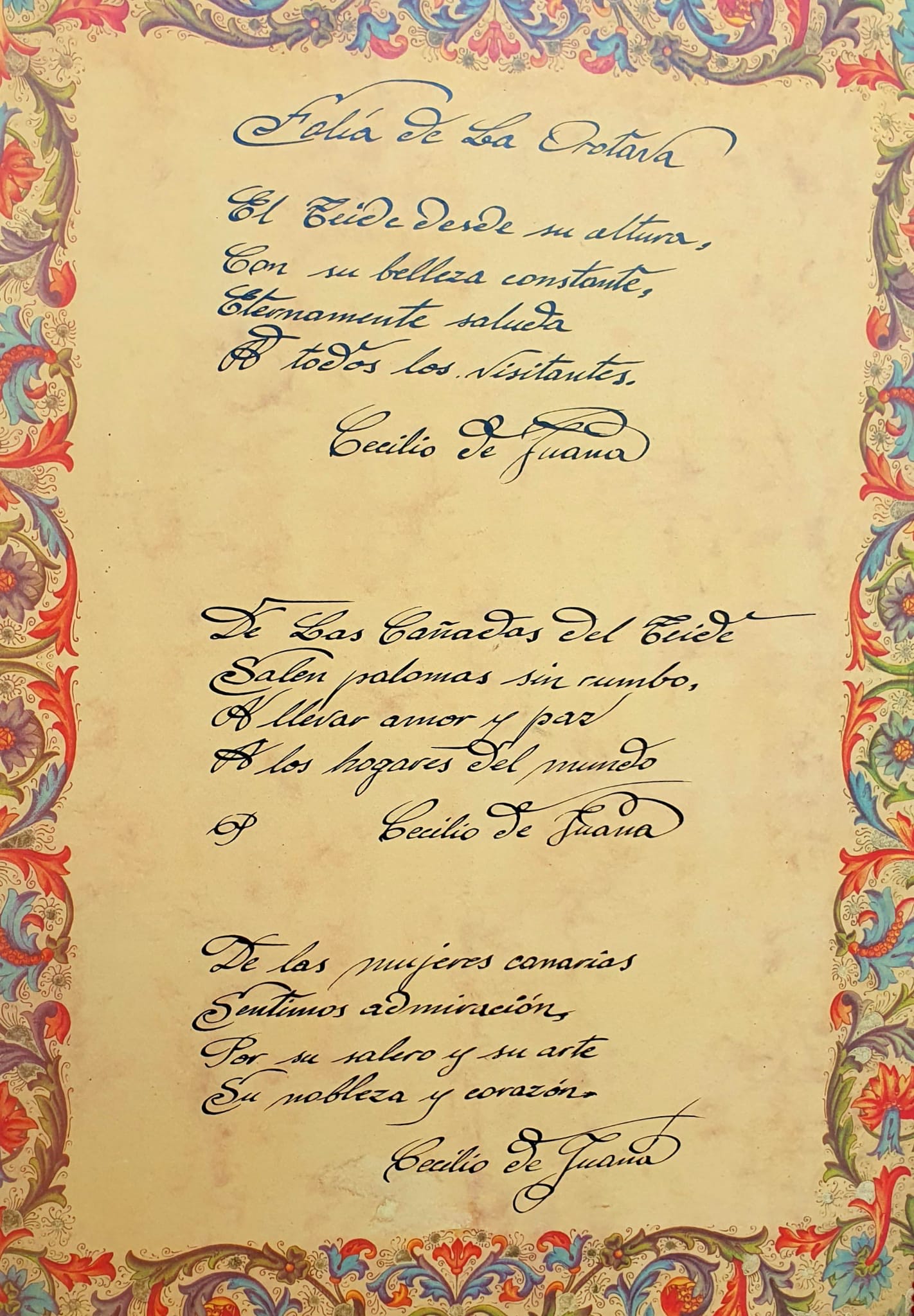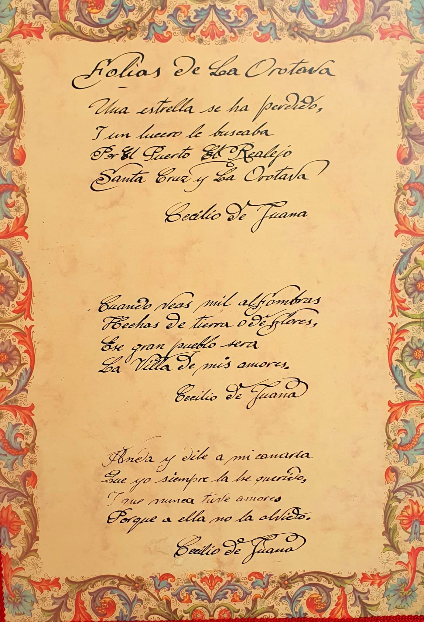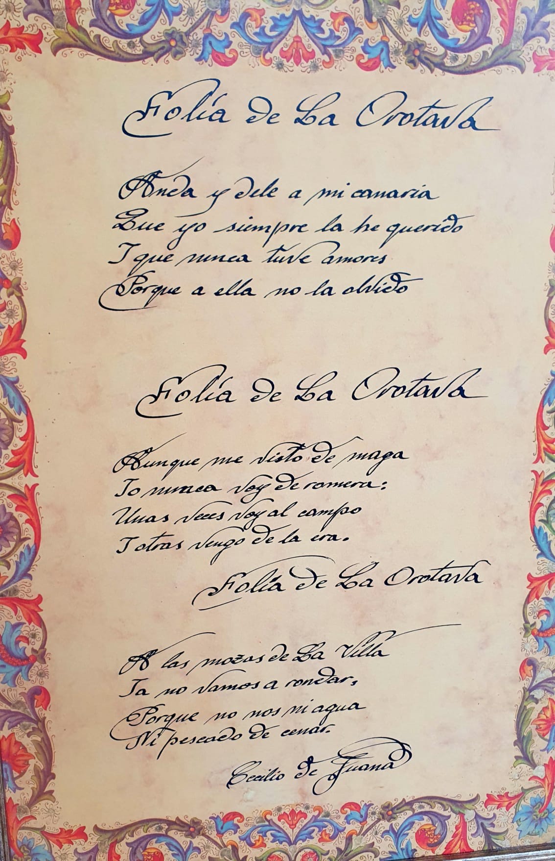 Una colección de instrumentos en madera y pergaminos manuscritos con isas, coplas y folías en los que el autor plasma con su característica letra, su sello personal y su amor por esta Villa.