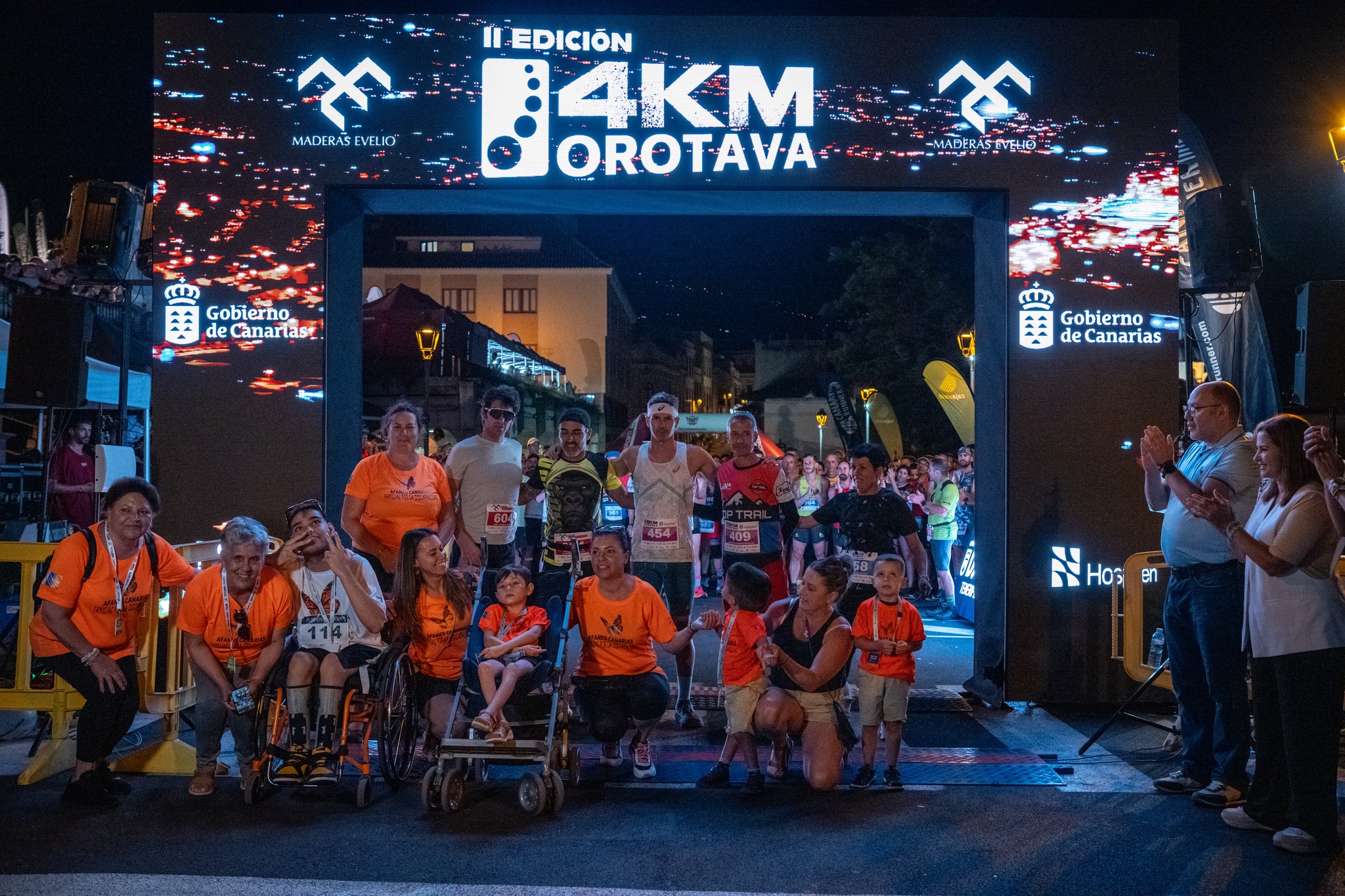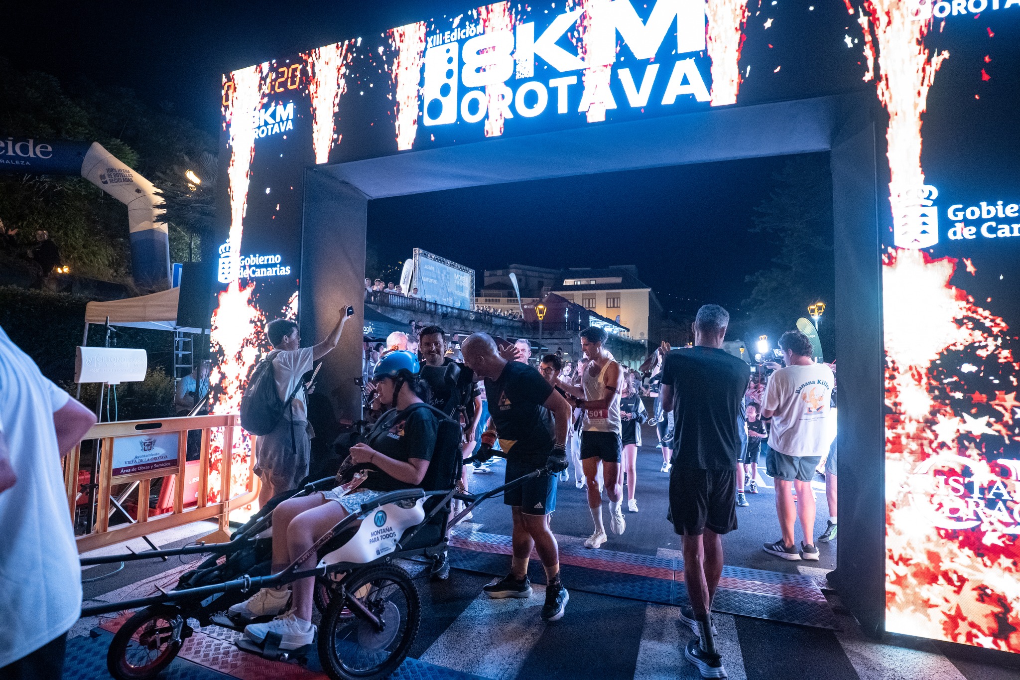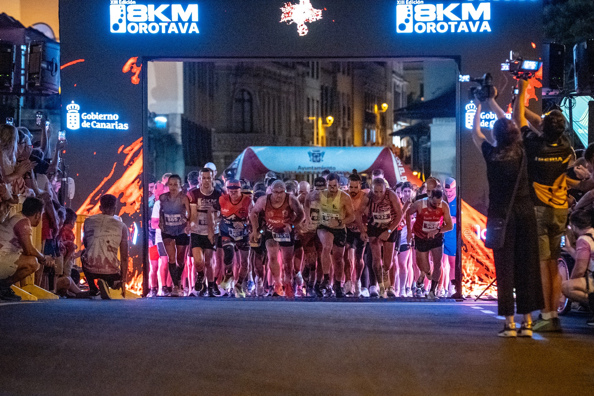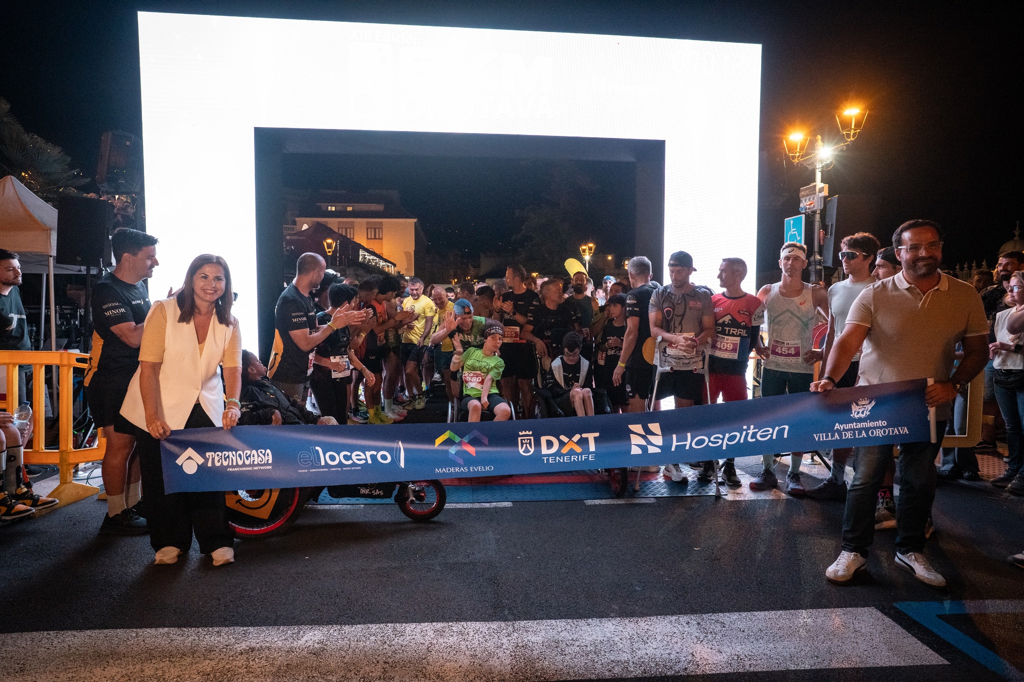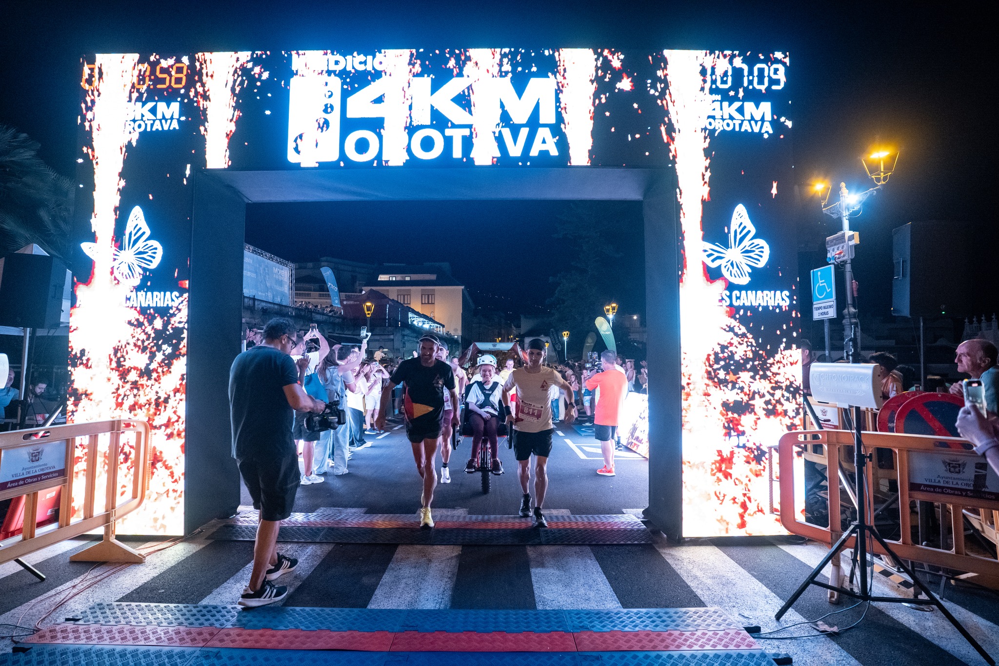 Hay que vivirla, sentirla y disfrutarla. En la noche de este sábado se celebró la XIII Hospiten 8KM Orotava, una cita atlética que trasciende el concepto de carrera popular nocturna. En los prolegómenos de la prueba principal, se disputaron la Carrera Infantil Hospiten Mini 8KM Orotava y la I Carrera de los abuelos Tecnocasa. Tras estas citas familiares, cayó la noche y llegó el turno para el millar de corredores que agotaron los dorsales disponibles en las distancias de 8 y 4 kilómetros. En la distancia reina, Diego Méntrida (27’15’’) y Ana Alicia Yanes (34’42’’) inscribieron su nombre con letras doradas, tal como ocurriera 24 horas antes en la Vertical Nocturna El Locero-Maderas Evelio. No obstante, los momentos más emotivos fueron aquellos en los que un atleta adaptado conquistó el arco de meta.