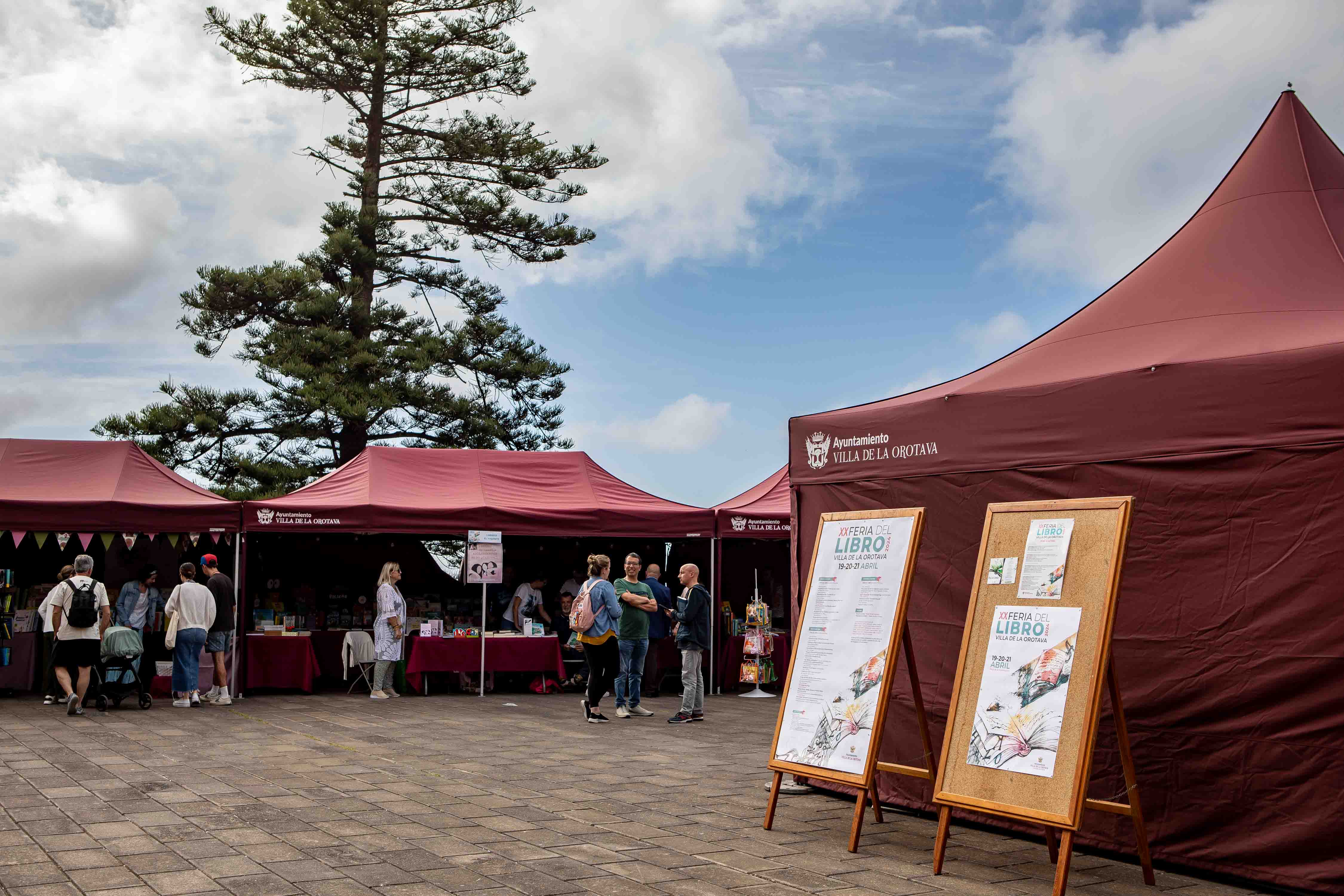 La Plaza de la Constitución acoge este fin de semana la XX Feria del Libro con una veintena de stand en la que se encuentran librerías, editoriales y colectivos culturales como El Viajante; La Educación; Agapea; Librería Cuentos en la Cabeza y librería Evangélica; la Fundación Canaria Orotava de Historia de la Ciencia; editorial Zech; Asociación Cultural Pinolere; Diego Pun Ediciones; Librería Ofra; Asterisco Escritores; editorial Ida y Vuelta, y la radio local “La voz joven”. Las librerías ofrecen estos días descuentos en los libros. En los stands de las entidades participantes también se podrá disfrutar de deportes mentales con Cerebritos, exposición de cómic, taller de marcapáginas y firmas de autores.