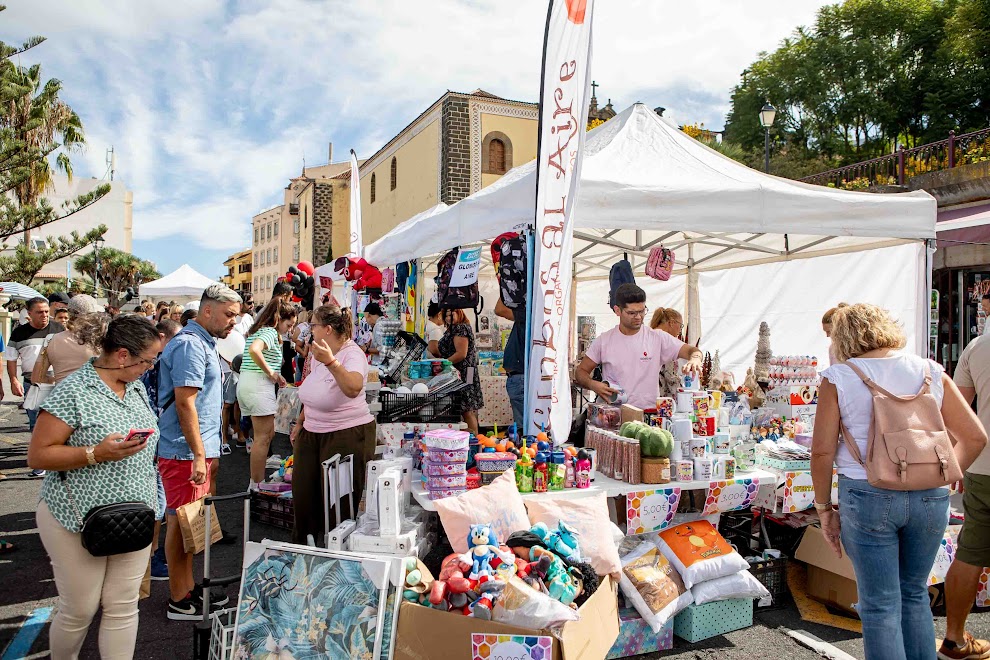La zona del Puente de la calle Carrera Escultor Estévez, parte de la calle Calvario y la Avenida de Canarias, junto a la Plaza de la Constitución, acogieron los variopintos puestos de los comerciantes villeros y al gran púbico que no paró de discurrir en todo el día; disfrutando de este amplio espacio comercial abierto así como de los múltiples encantos que ofrece la zona centro de La Orotava y de la gastronomía local. También se sumaron los establecimientos del entorno abriendo sus puertas, por lo que es una actividad que genera beneficios, dinamiza e impulsa la economía local.