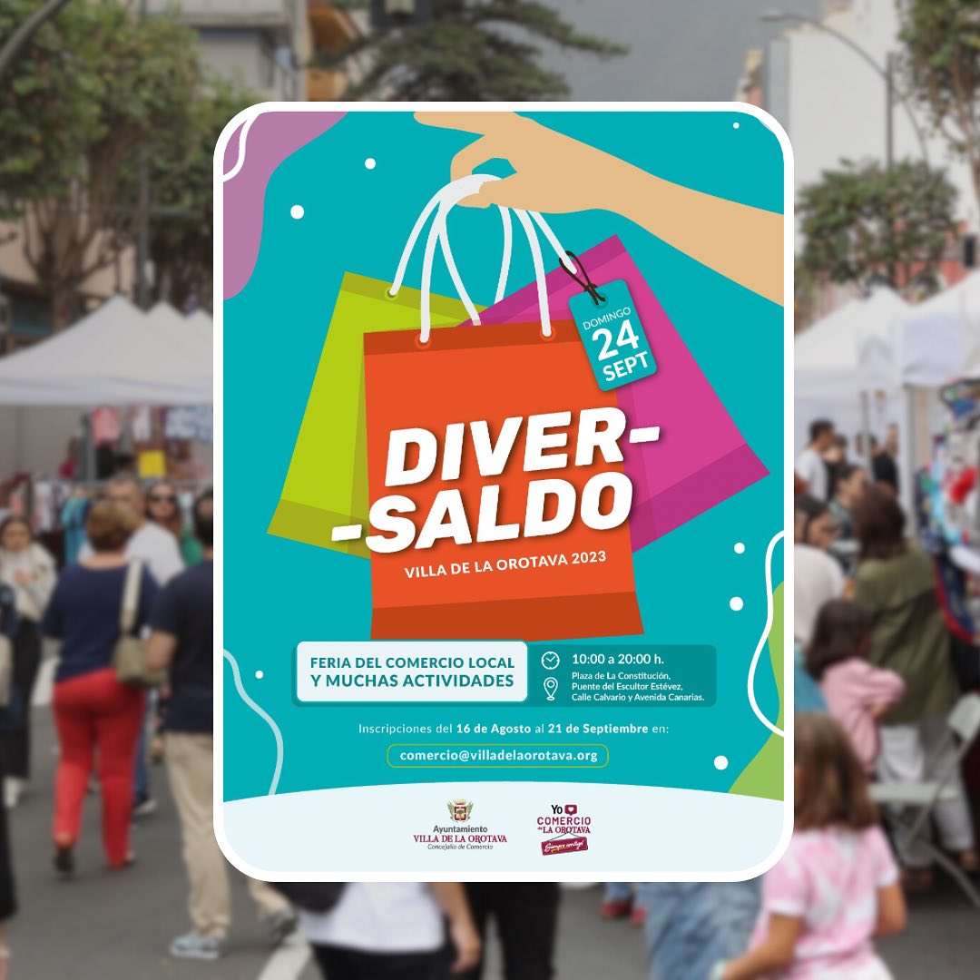 La Orotava vuelve a convertirse en punto de encuentro el próximo domingo 24 de septiembre. Las principales calles del centro urbano—Calvario, Avenida de Canarias y Puente del Escultor Estévez—y la Plaza de la Constitución, acogen un año más, entre las 10.00 y 20.00 horas, la gran fiesta de saldos del Norte de Tenerife, DiverSaldo.