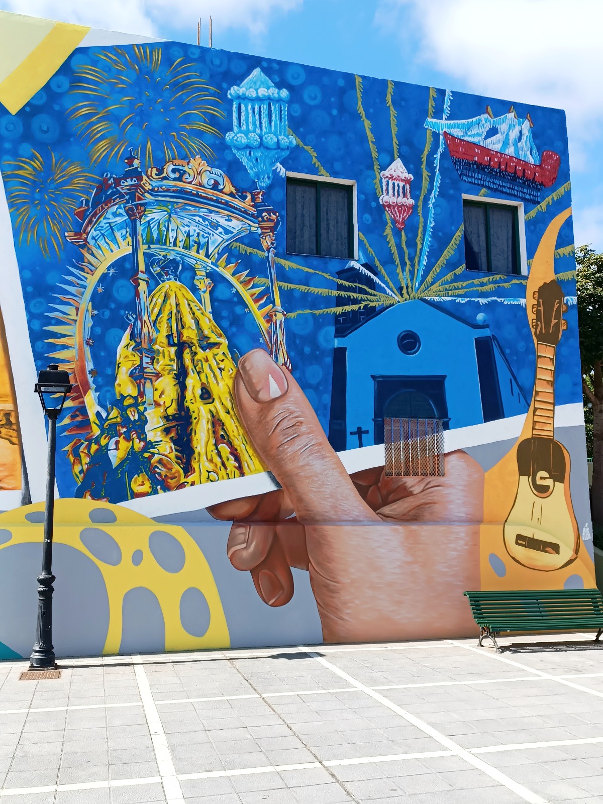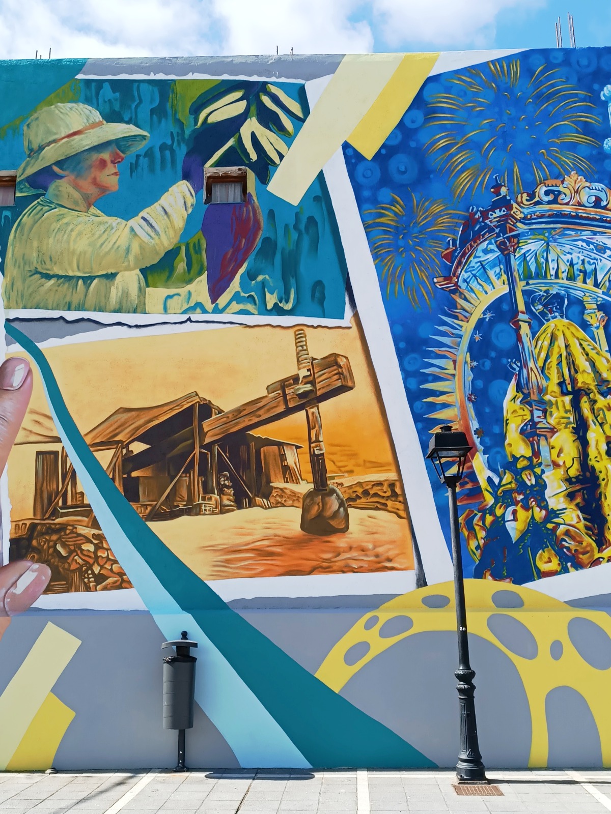 El mural, bajo el título ‘Memorias, recuerdos y tradición’, representa principalmente la idiosincrasia y las fiestas con los elementos propios de las mismas, del barrio de La Luz.