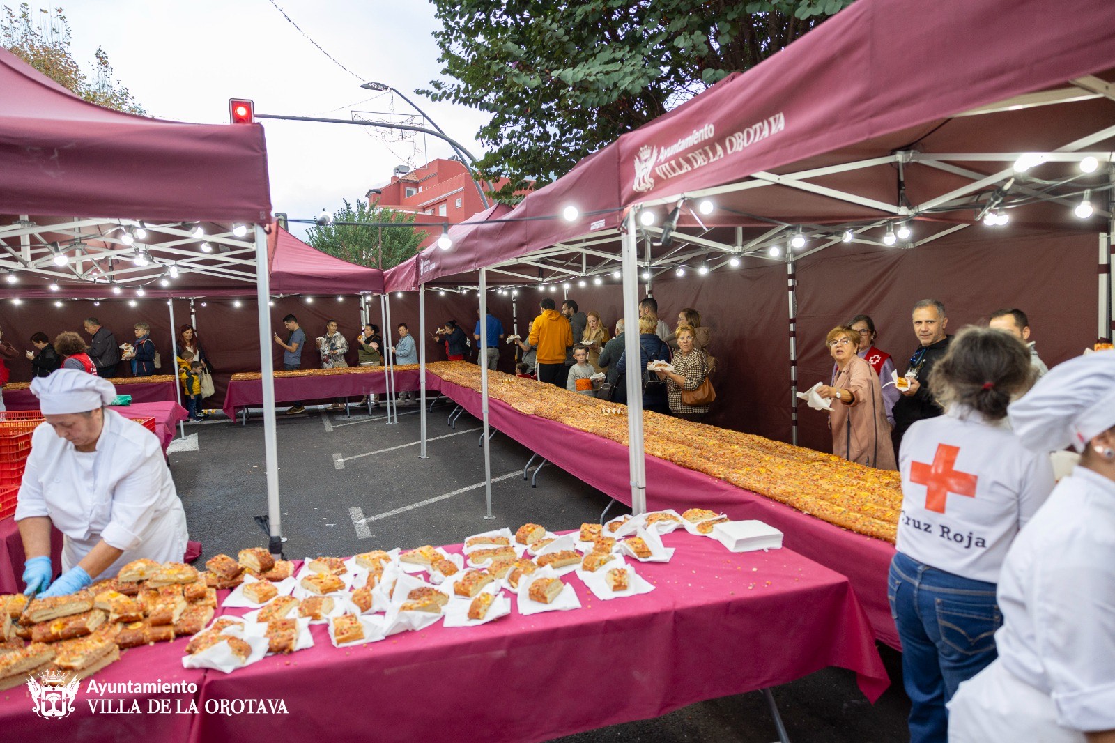El dulce y el chocolate se irán distribuyendo a lo largo de la tarde, hasta fin de existencias, a cambio de un donativo, ya que el evento es también solidario y lo que se recaude se destinará a la obra social de Cruz Roja y a Cáritas para ayudar a las familias más necesitadas del municipio. Se estima que se repartirán unas 4.000 porciones.