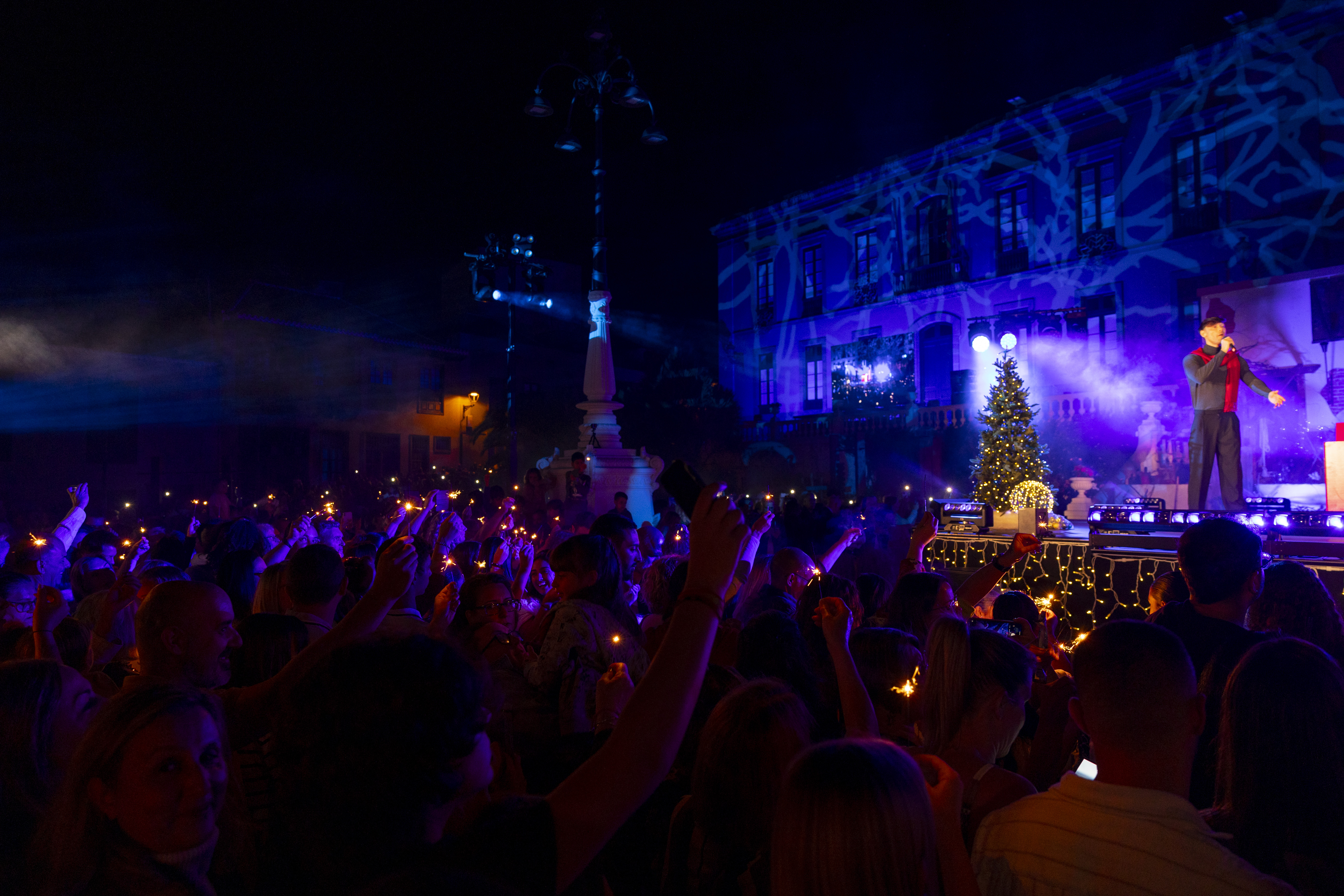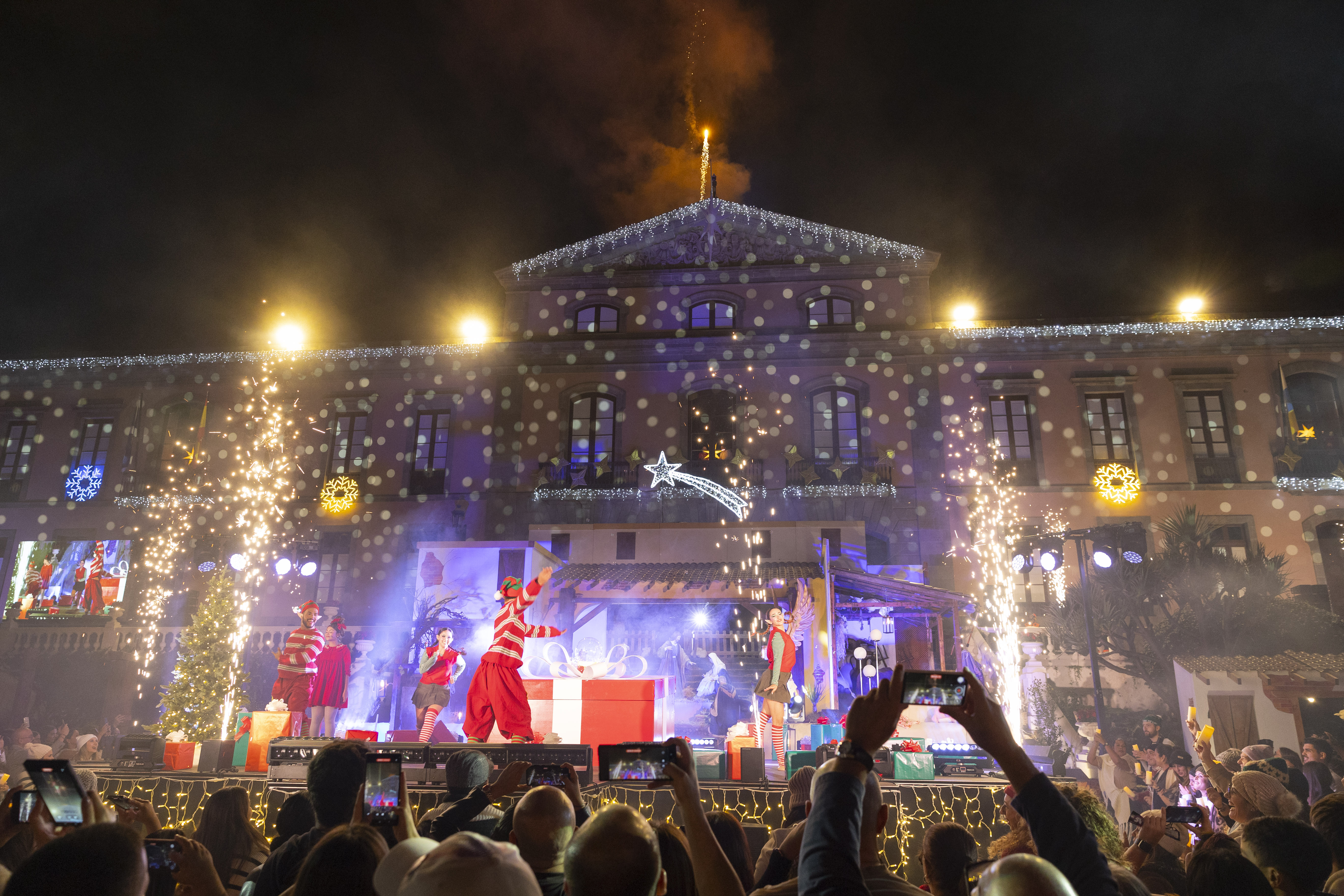 En la plaza se desarrolló un magnífico espectáculo bajo el título “El regalo de la Navidad” haciendo reflexionar a todos sobre la importancia de recibir regalos en estas fechas, pero sin perder valores tan esenciales como el de compartir y ser solidarios, así como el valor de vivirla con las personas que se quieren y recordar a todos lo que ya no están pero son parte importante de nuestras vidas. La ilusión es la magia de la Navidad. Tras esta puesta en escena, el alcalde Francisco Linares pulsó el botón con el que se encendió la espectacular iluminación ornamental del centro urbano de La Orotava. Miles de personas disfrutaron por las calles del casco del gran ambiente y la decoración navideña, así como del acto que se llevó posteriormente en la zona del Puente, ‘De tapas con castañas’, con motivo de la festividad de San Andrés. Se estima la asistencia de más de 20.000 personas