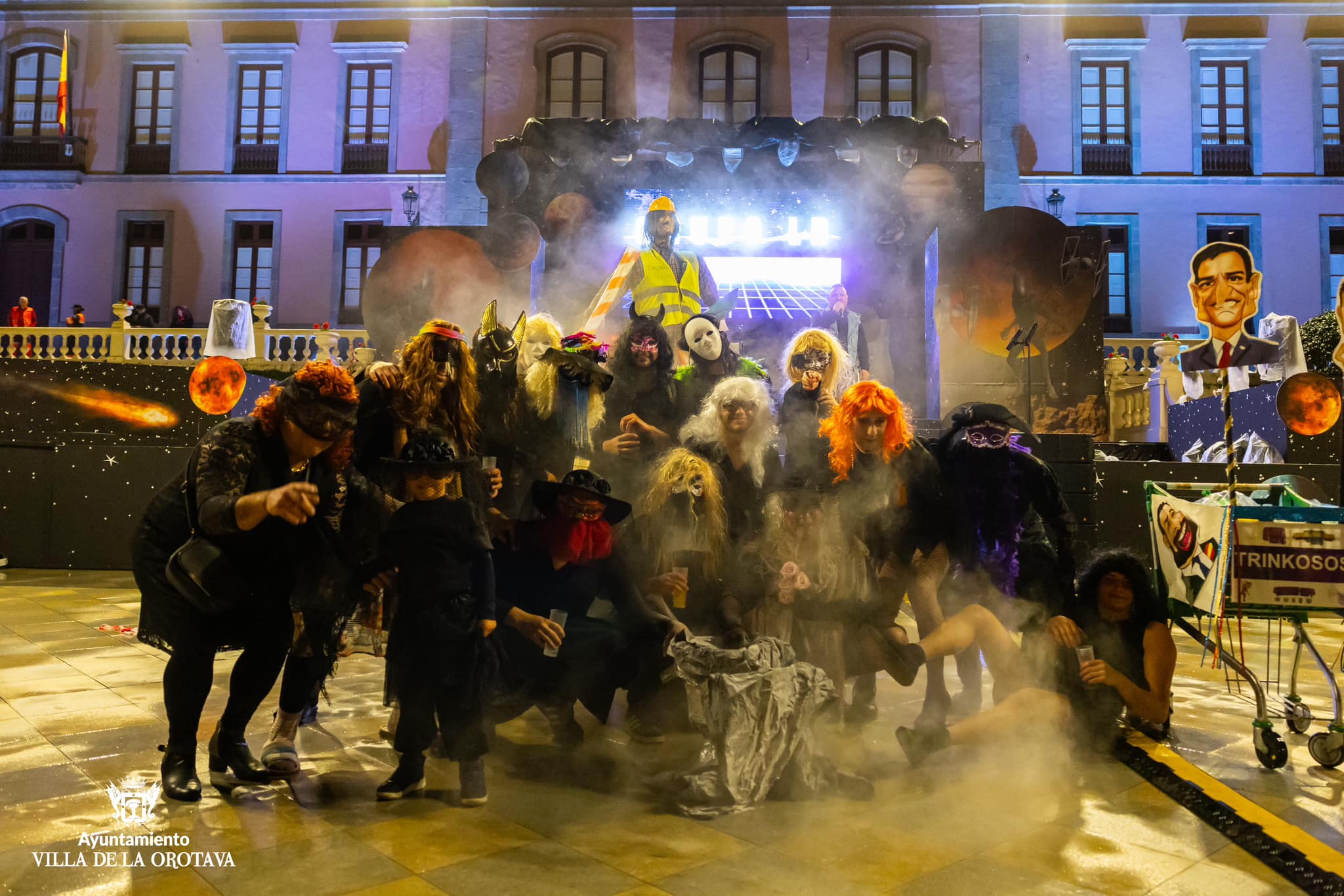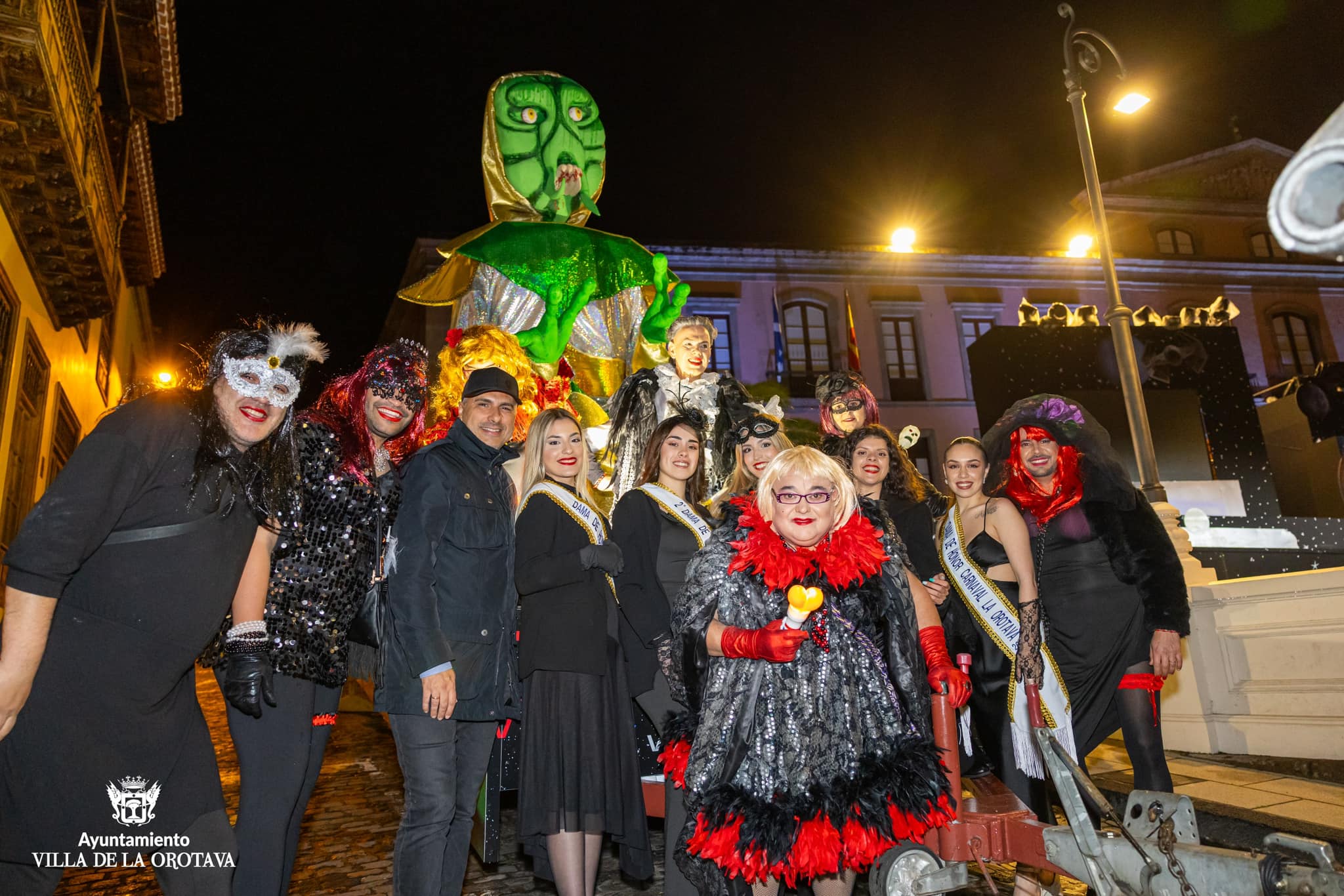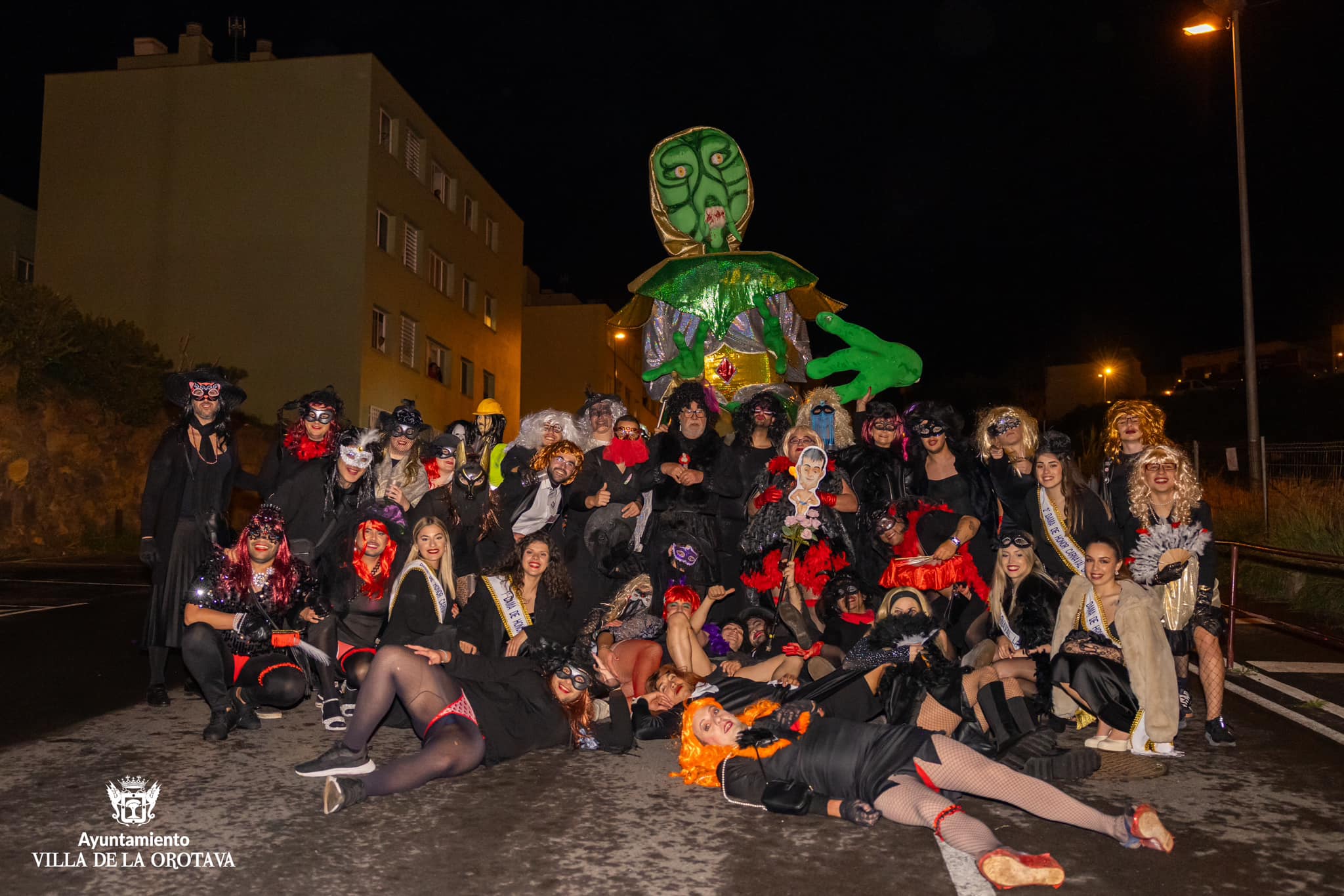 La Orotava se vistió anoche de luto para acompañar al cortejo fúnebre de Crispín. El frío ni la lluvia intermitente impidieron que la comitiva disfrutara de este tradicional evento. El duelo comenzó en la Plaza del Ayuntamiento donde se contó con la actuación del grupo LD, y luego se trasladó por las calles del centro urbano hasta la Plaza del Quinto Centenario donde tuvo lugar la quema del muñeco que lució una fantasía galáctica en referencia a la temática del carnaval villero. El grupo Coyote Rojo amenizó la velada en el citado espacio donde tuvo lugar la quema del muñeco sobre las 22.00 horas. Se contó con la participación de los grupos del carnaval villero, la reina y su corte, desconsoladas viudas y espontáneos, el edil de Fiestas, Alexis Pacheco y otros miembros de la corporación municipal.