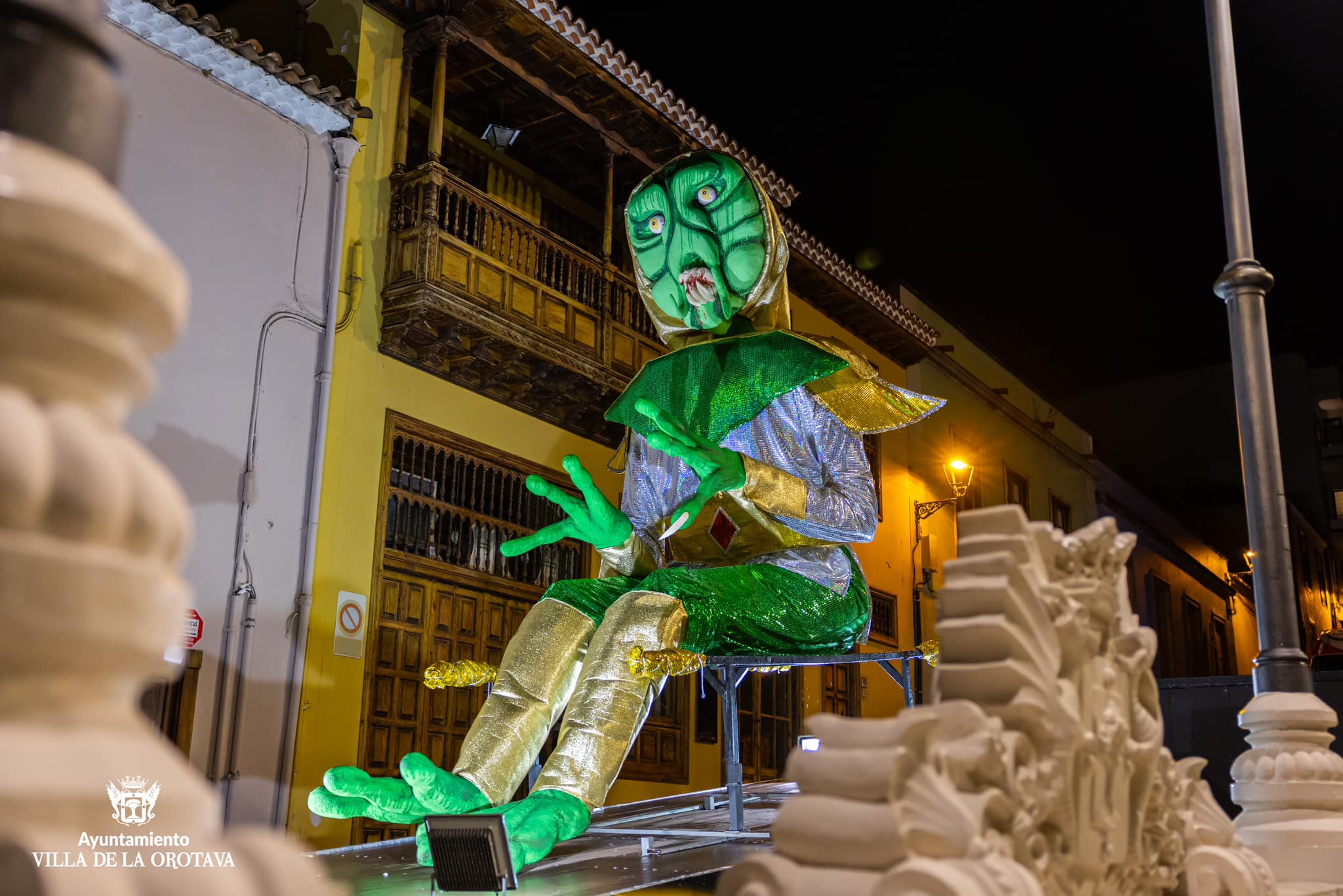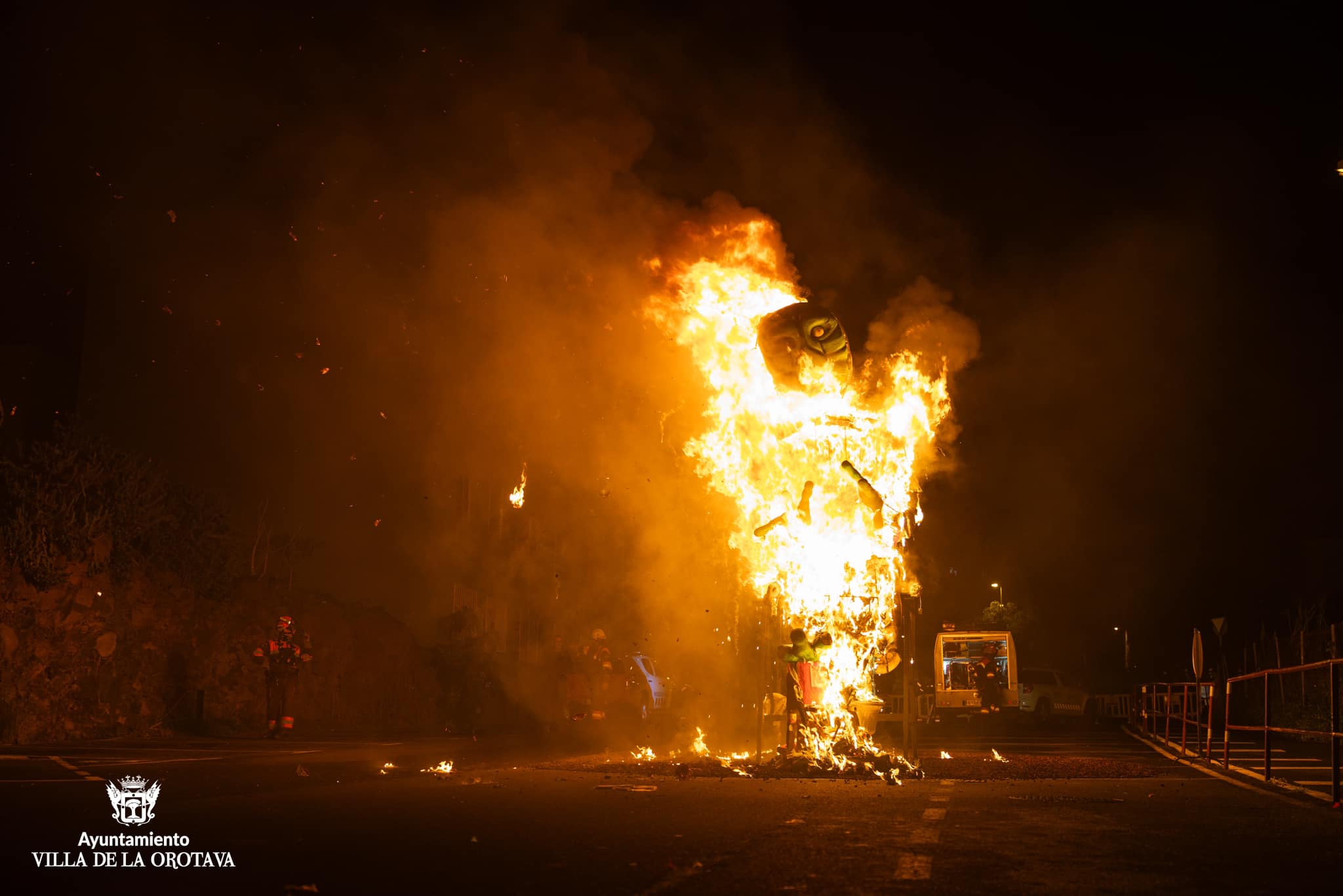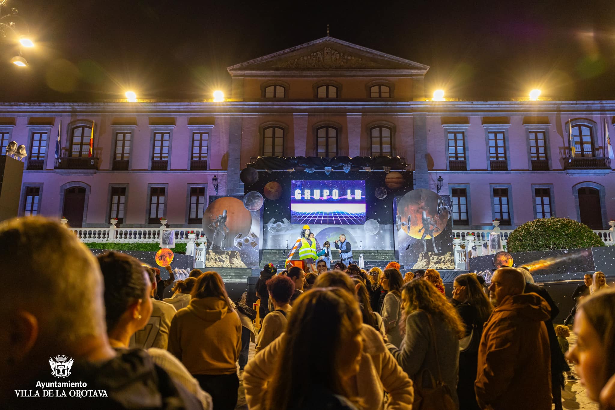 La Orotava se vistió anoche de luto para acompañar al cortejo fúnebre de Crispín. El frío ni la lluvia intermitente impidieron que la comitiva disfrutara de este tradicional evento. El duelo comenzó en la Plaza del Ayuntamiento donde se contó con la actuación del grupo LD, y luego se trasladó por las calles del centro urbano hasta la Plaza del Quinto Centenario donde tuvo lugar la quema del muñeco que lució una fantasía galáctica en referencia a la temática del carnaval villero. El grupo Coyote Rojo amenizó la velada en el citado espacio donde tuvo lugar la quema del muñeco sobre las 22.00 horas. Se contó con la participación de los grupos del carnaval villero, la reina y su corte, desconsoladas viudas y espontáneos, el edil de Fiestas, Alexis Pacheco y otros miembros de la corporación municipal.