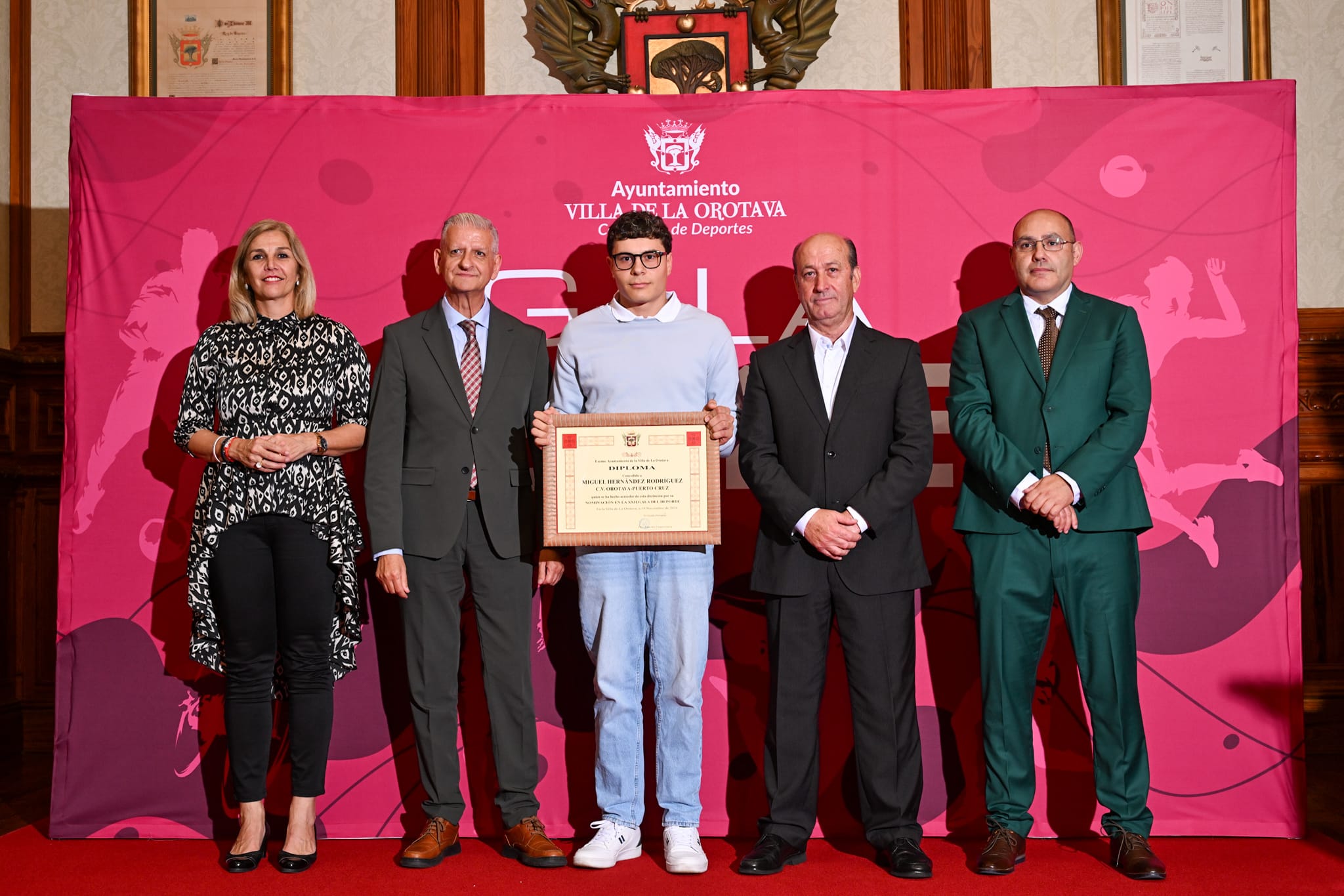El Salón de Plenos del Ayuntamiento de La Orotava acogió en la tarde noche de este martes [19 de noviembre] la vigésimo segunda edición de la Gala del Deporte. El evento fue presidido por el alcalde Francisco Linares; el director general de Deportes, José Francisco Pérez; la consejera de Deportes del Cabildo de Tenerife, Yolanda Moliné, y el edil de deportes, Carlos Díaz. Además, se contó con otros miembros de la corporación municipal, representantes de los clubes y deportistas del municipio, amigos, familiares y público en general.