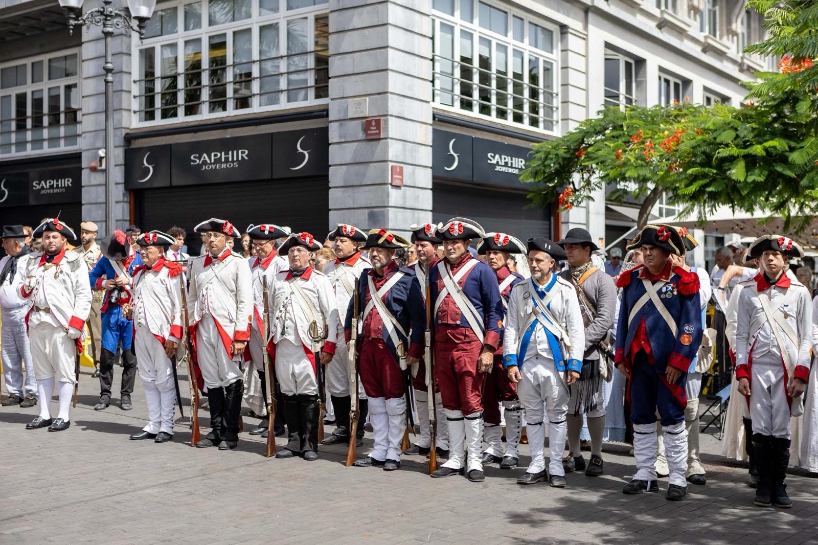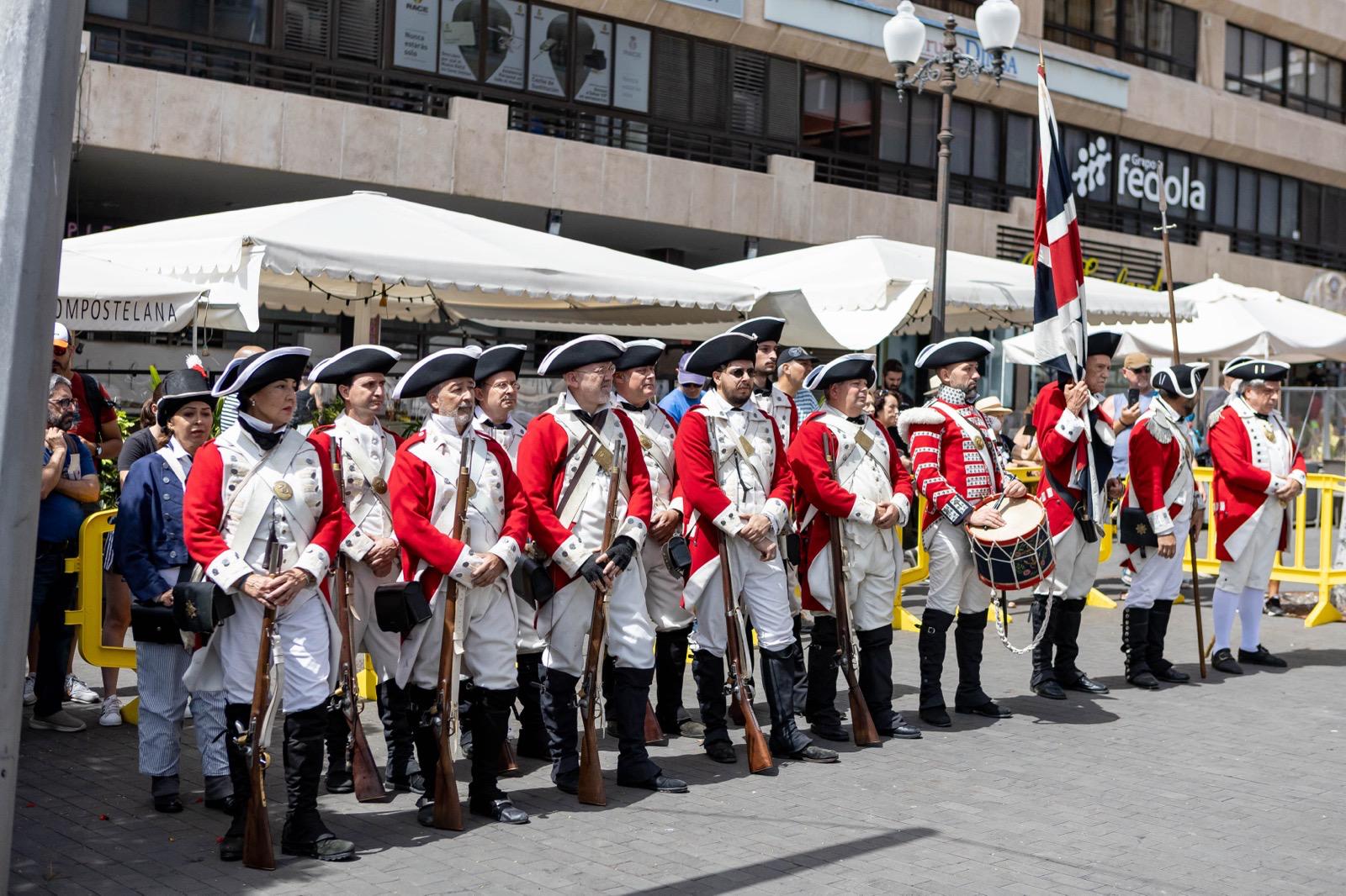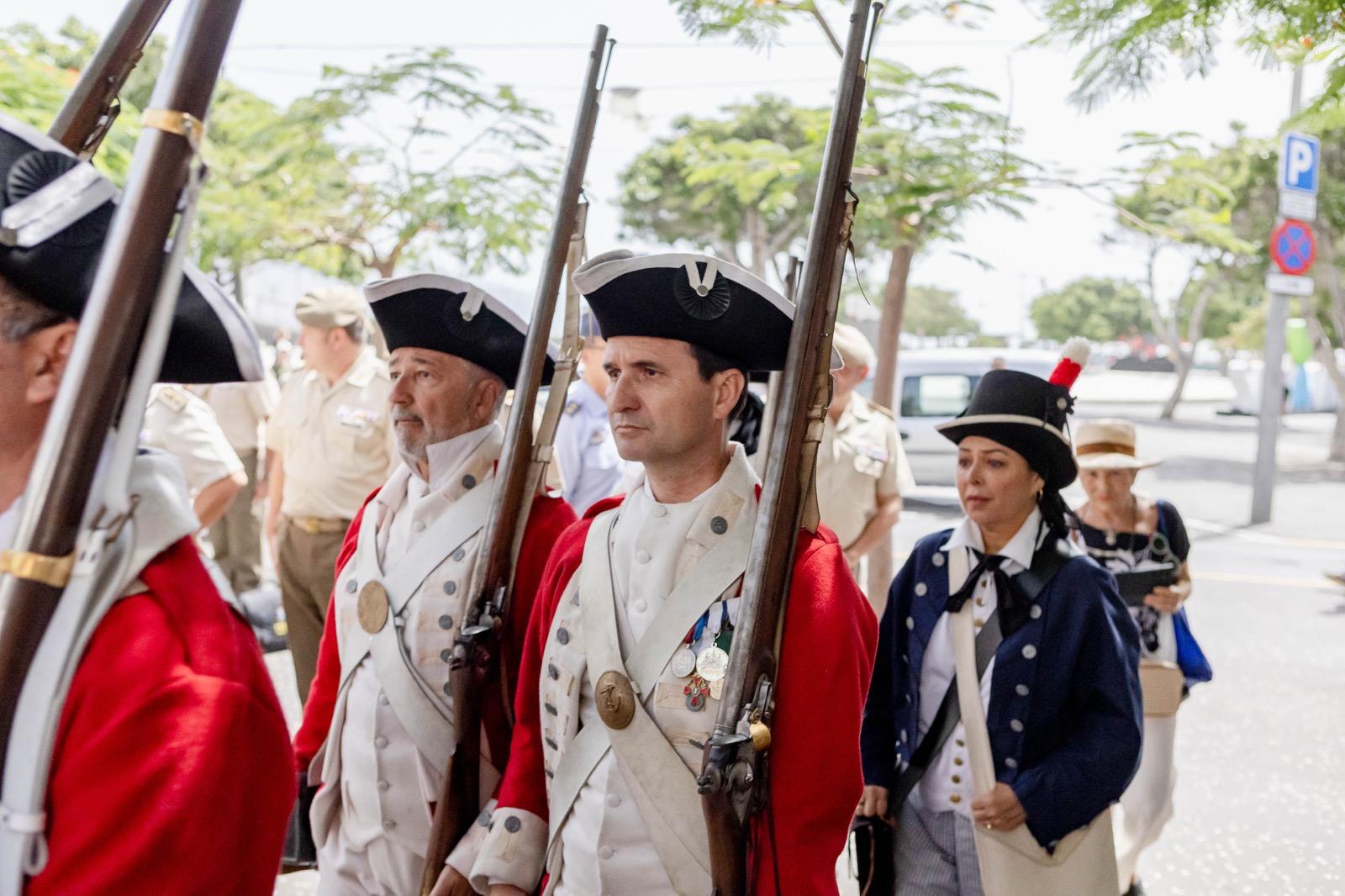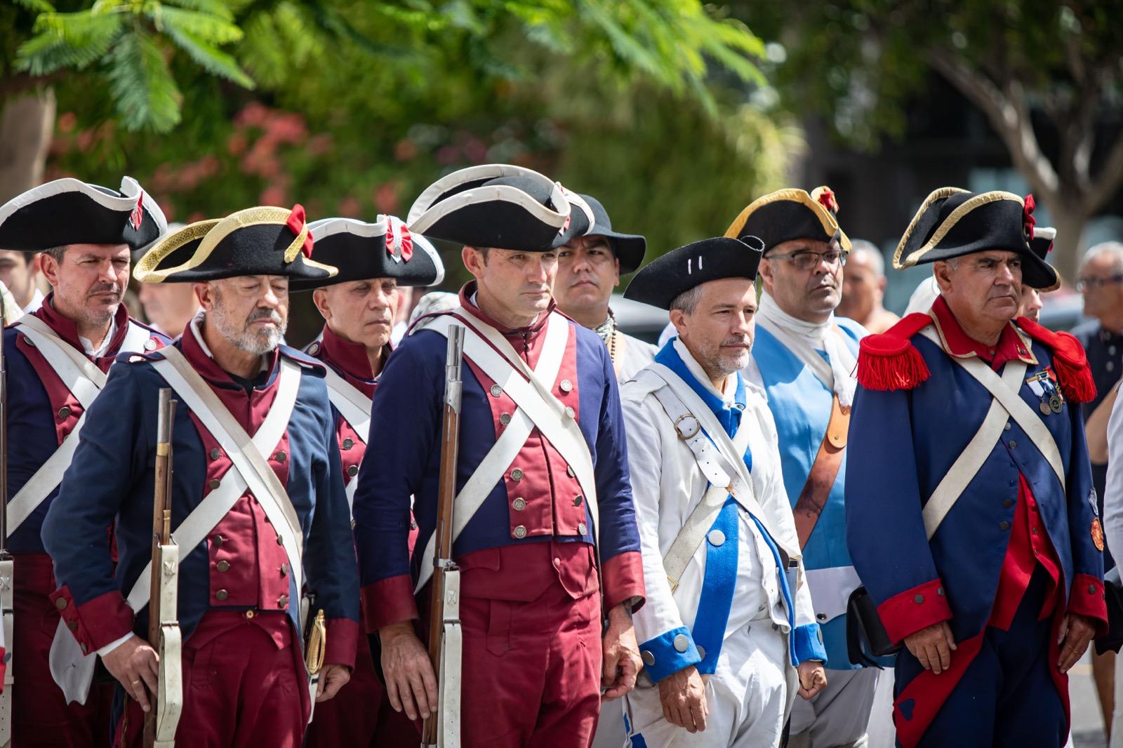 Santa Cruz de Tenerife conmemora en estos días la Gesta del 25 de julio de 1797. La defensa de la isla frente al ataque británico liderado por Nelson contó con la participación de soldados de La Orotava, tanto milicianos como pertenecientes al batallón de infantería. Estos soldados se unieron a las fuerzas defensoras de la ciudad, contribuyendo a la victoria canaria. Entre los actos que organiza la Asociación Histórico-Cultural Gesta del 25 de Julio de 1797, la Plaza de La Candelaria de la capital tinerfeña acogió este domingo [27 de julio] la conmemoración del ‘Acto de Firma de las Capitulaciones’, con una narración histórica y una representación teatralizada del momento de la firma, así como la entrega de Medallas de la Gesta. El alcalde de la Villa, Francisco Linares, ha recogido la distinción que se le otorga al municipio de La Orotava reconociendo la importancia de la colaboración y el valor de los diferentes cuerpos militares y civiles en la defensa de la ciudad. La jornada culminó con un homenaje a los caídos, interpretación musical de la Banda Municipal de Música de Santa Cruz de Tenerife con himnos de España, Francia e Inglaterra, una ofrenda floral en el monolito del monumento de La Candelaria y una descarga final de salvas.