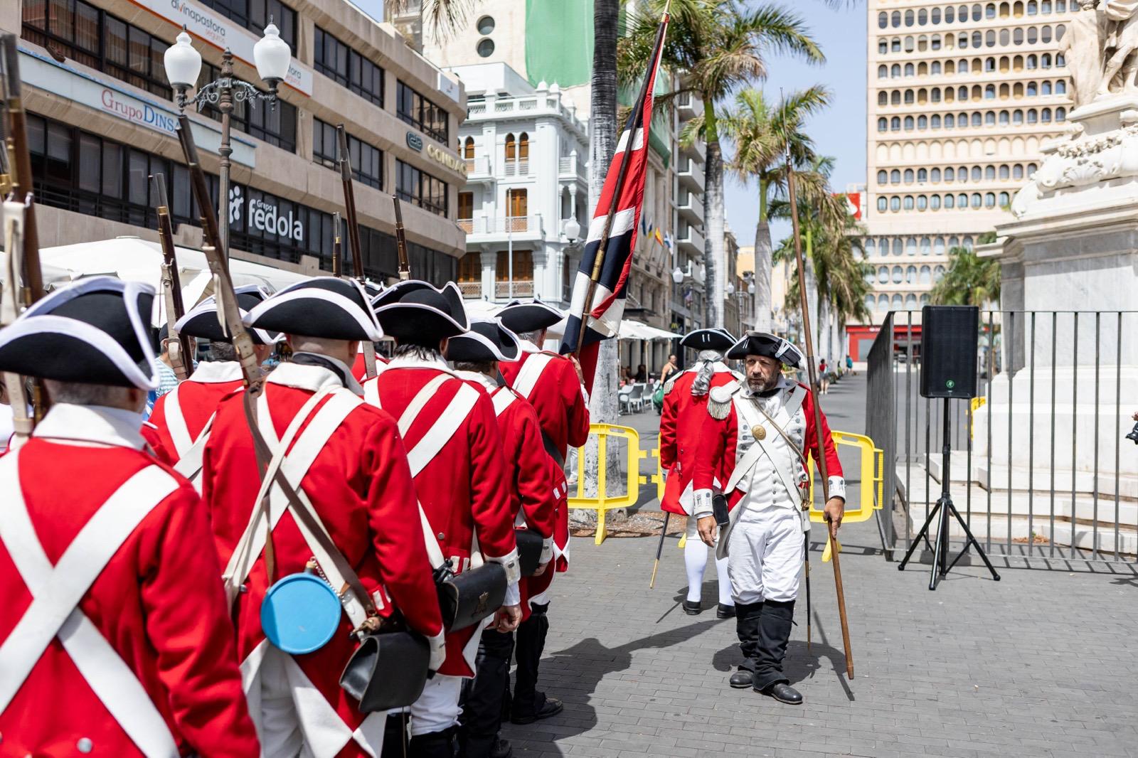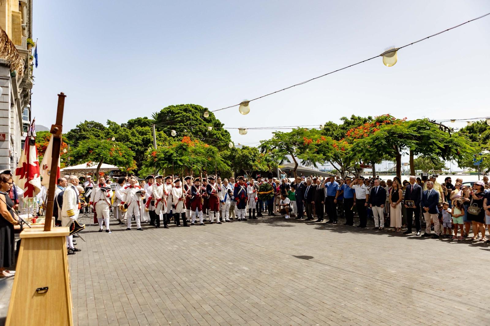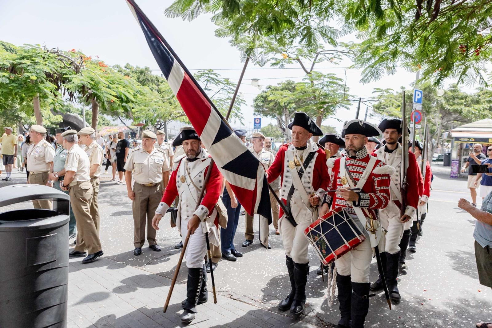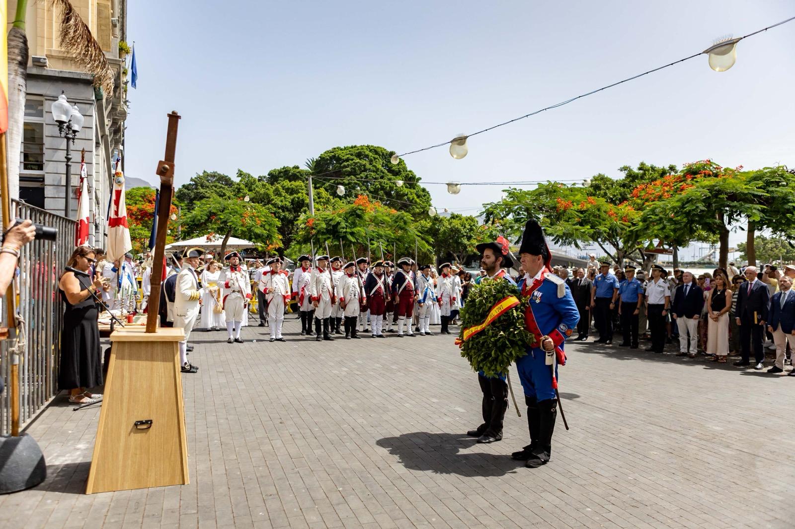 Santa Cruz de Tenerife conmemora en estos días la Gesta del 25 de julio de 1797. La defensa de la isla frente al ataque británico liderado por Nelson contó con la participación de soldados de La Orotava, tanto milicianos como pertenecientes al batallón de infantería. Estos soldados se unieron a las fuerzas defensoras de la ciudad, contribuyendo a la victoria canaria. Entre los actos que organiza la Asociación Histórico-Cultural Gesta del 25 de Julio de 1797, la Plaza de La Candelaria de la capital tinerfeña acogió este domingo [27 de julio] la conmemoración del ‘Acto de Firma de las Capitulaciones’, con una narración histórica y una representación teatralizada del momento de la firma, así como la entrega de Medallas de la Gesta. El alcalde de la Villa, Francisco Linares, ha recogido la distinción que se le otorga al municipio de La Orotava reconociendo la importancia de la colaboración y el valor de los diferentes cuerpos militares y civiles en la defensa de la ciudad. La jornada culminó con un homenaje a los caídos, interpretación musical de la Banda Municipal de Música de Santa Cruz de Tenerife con himnos de España, Francia e Inglaterra, una ofrenda floral en el monolito del monumento de La Candelaria y una descarga final de salvas.
