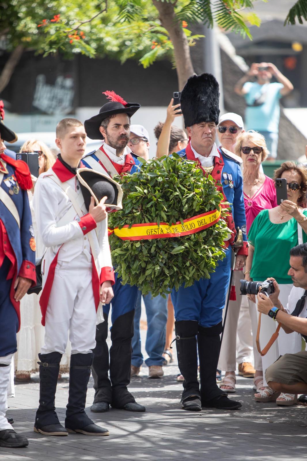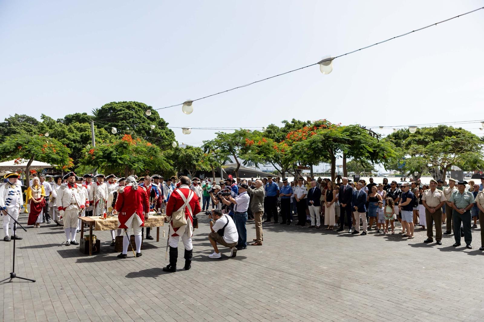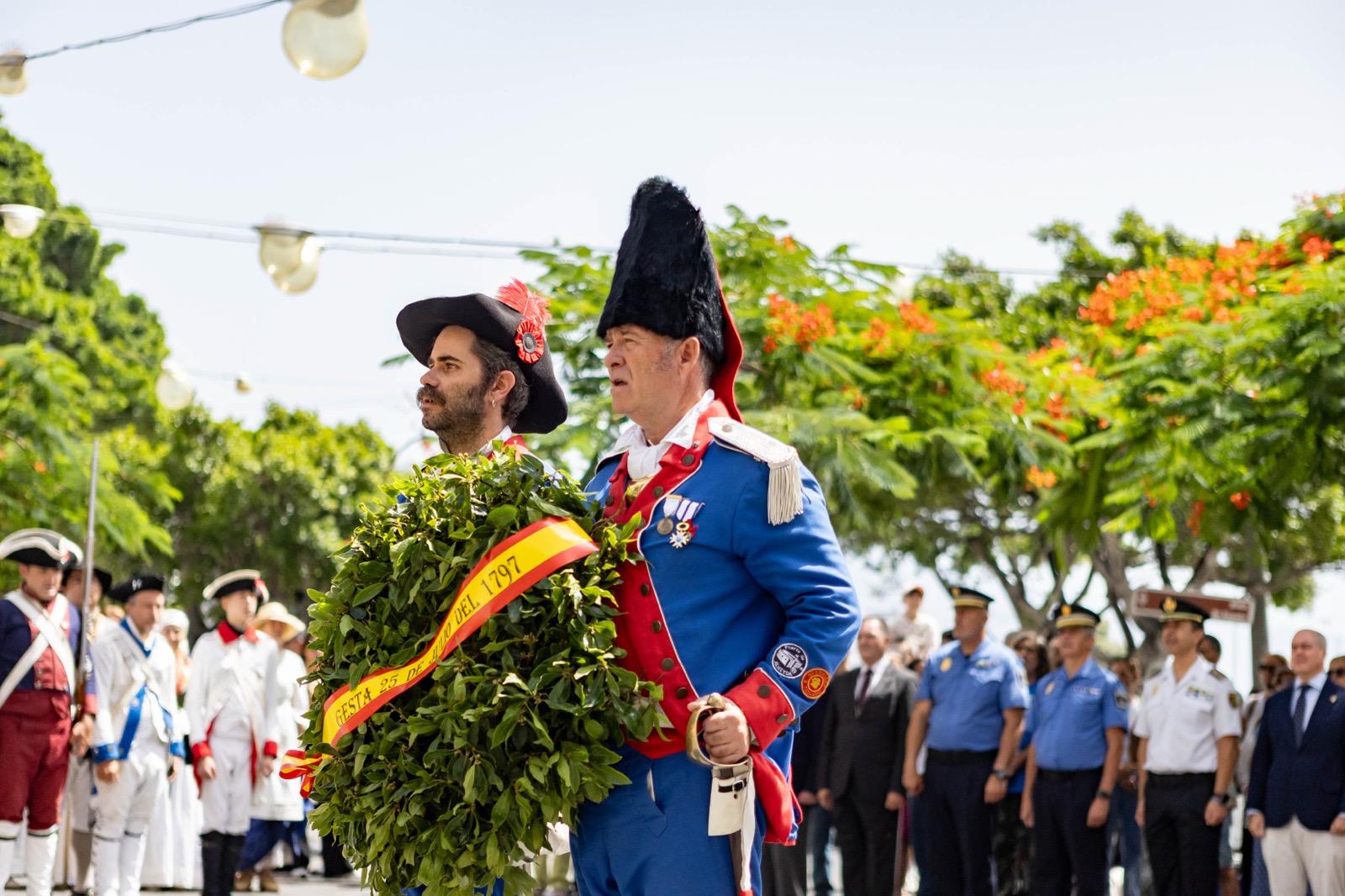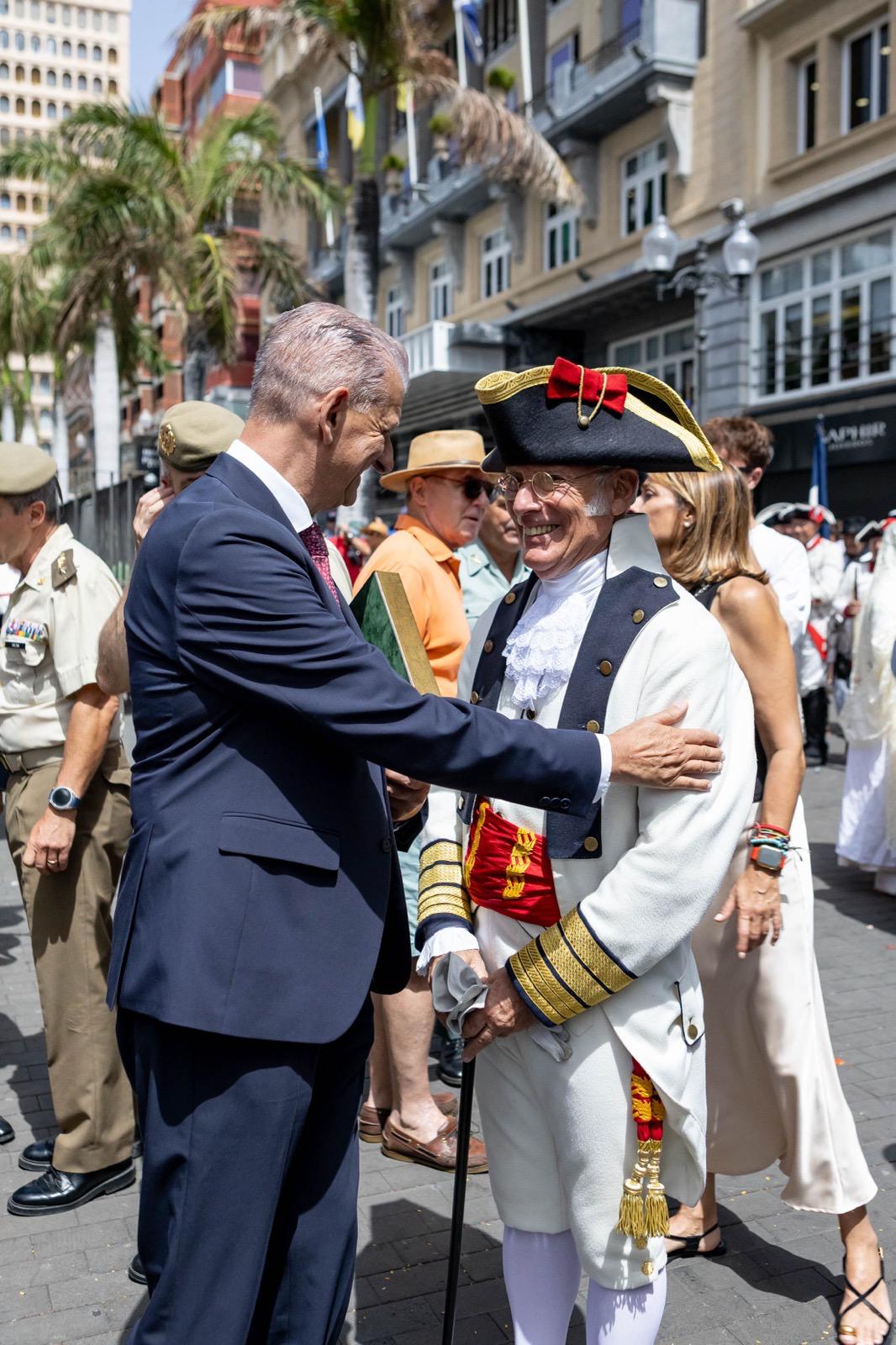 Santa Cruz de Tenerife conmemora en estos días la Gesta del 25 de julio de 1797. La defensa de la isla frente al ataque británico liderado por Nelson contó con la participación de soldados de La Orotava, tanto milicianos como pertenecientes al batallón de infantería. Estos soldados se unieron a las fuerzas defensoras de la ciudad, contribuyendo a la victoria canaria. Entre los actos que organiza la Asociación Histórico-Cultural Gesta del 25 de Julio de 1797, la Plaza de La Candelaria de la capital tinerfeña acogió este domingo [27 de julio] la conmemoración del ‘Acto de Firma de las Capitulaciones’, con una narración histórica y una representación teatralizada del momento de la firma, así como la entrega de Medallas de la Gesta. El alcalde de la Villa, Francisco Linares, ha recogido la distinción que se le otorga al municipio de La Orotava reconociendo la importancia de la colaboración y el valor de los diferentes cuerpos militares y civiles en la defensa de la ciudad. La jornada culminó con un homenaje a los caídos, interpretación musical de la Banda Municipal de Música de Santa Cruz de Tenerife con himnos de España, Francia e Inglaterra, una ofrenda floral en el monolito del monumento de La Candelaria y una descarga final de salvas.