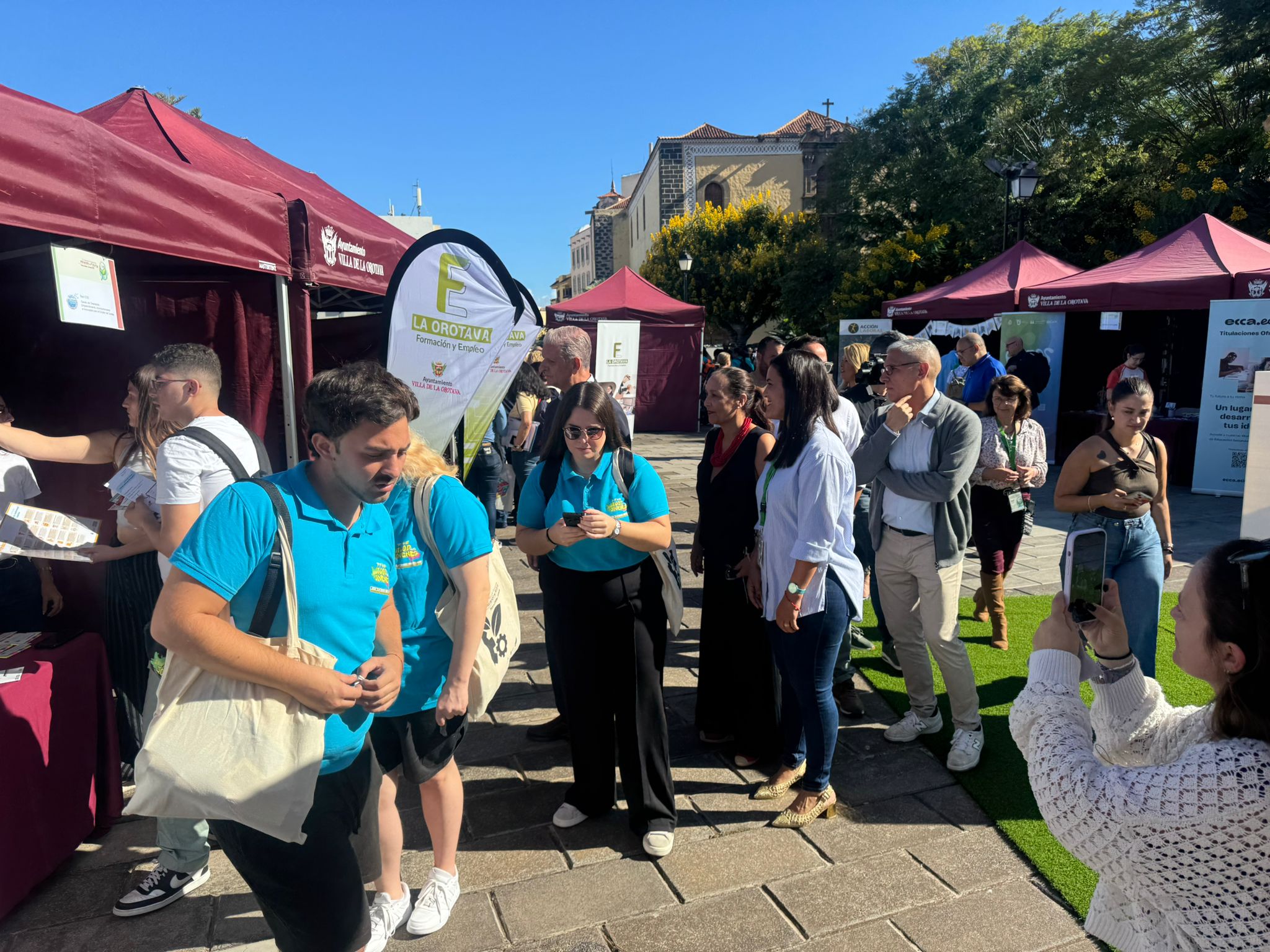 La tercera edición de la Feria de Formación y Empleo “Creando presente… Mirando al futuro”, celebrada este jueves [30 de octubre] en la Plaza de la Constitución de La Orotava, ha supuesto un nuevo impulso en la generación de oportunidades laborales y formativas en el municipio. En esta ocasión se contó con la participación de 32 entidades, públicas y privadas, que ofrecieron asesoramiento en materia de empleo, formación, emprendimiento e intermediación laboral. Entre las actuaciones realizadas, se incluyeron entrevistas “exprés”, creación de bolsas de empleo, orientación a emprendedores, y talleres de mejora de empleabilidad.